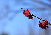 꽃 : 백색 또는 담홍색으로 4월에 잎보다 먼저 피고 전년도 잎겨드랑이에 1-3개씩 달리며 화경이 거의 없다.