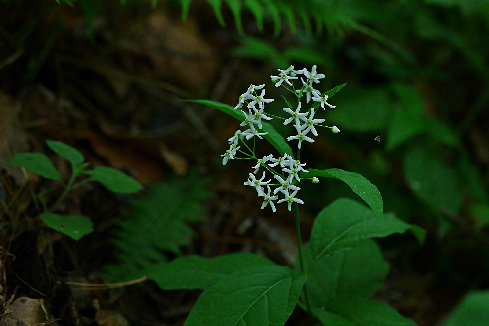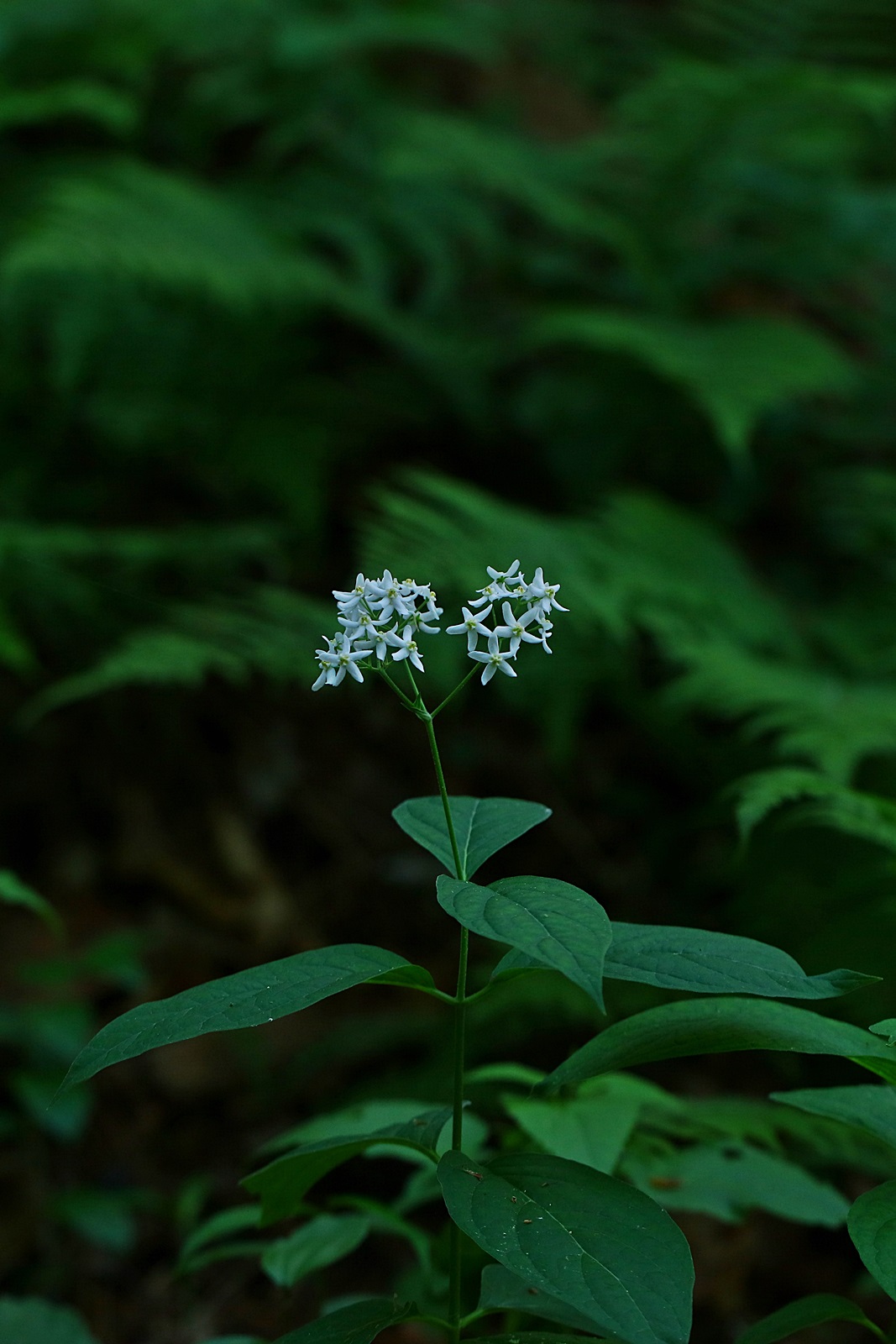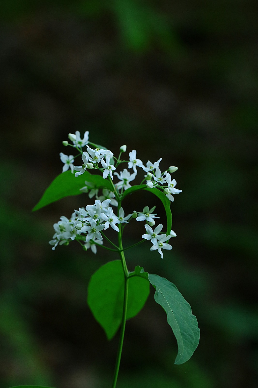 꽃은 줄기 끝과 위쪽 잎겨드랑이에 산형으로 달려 전체적으로 취산꽃차례를 이루며, 흰색, 지름 1.5~1.8cm쯤이다.
