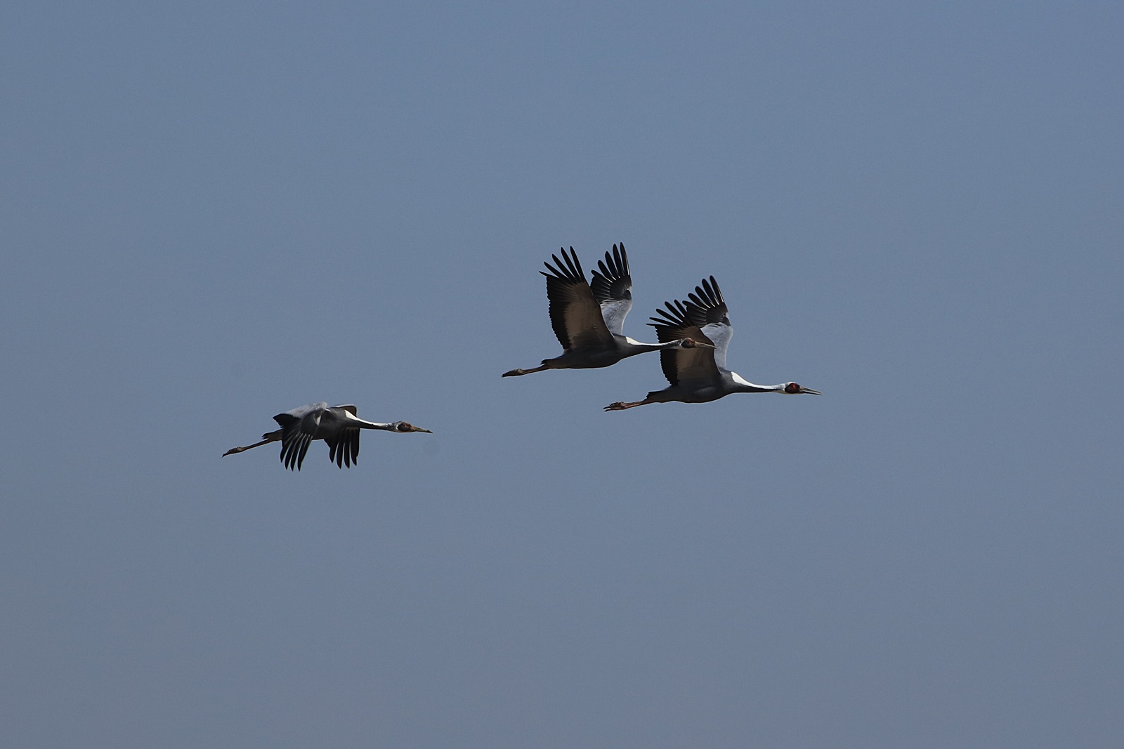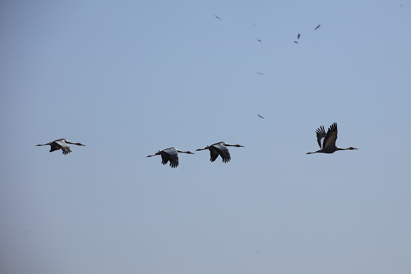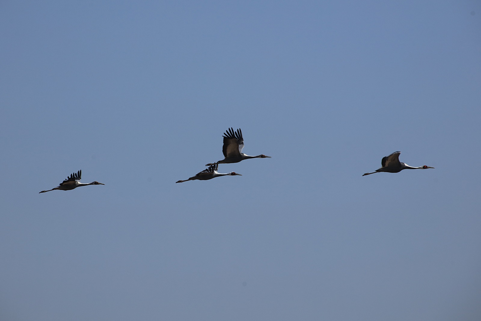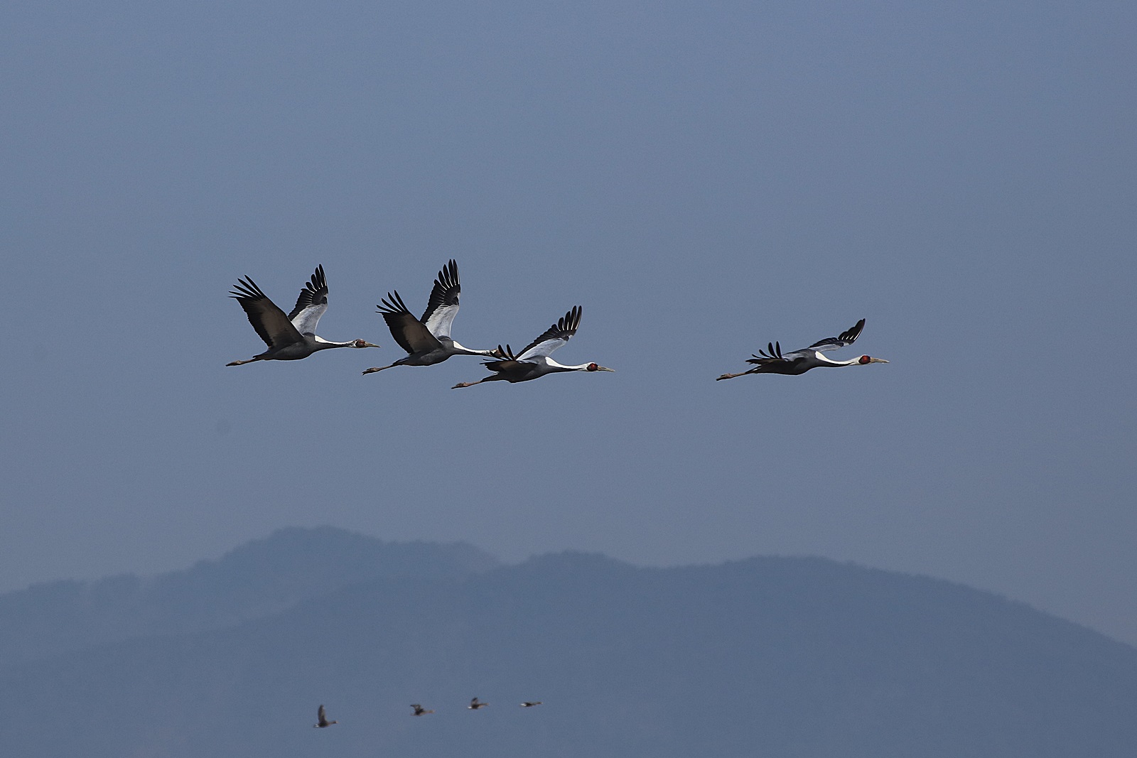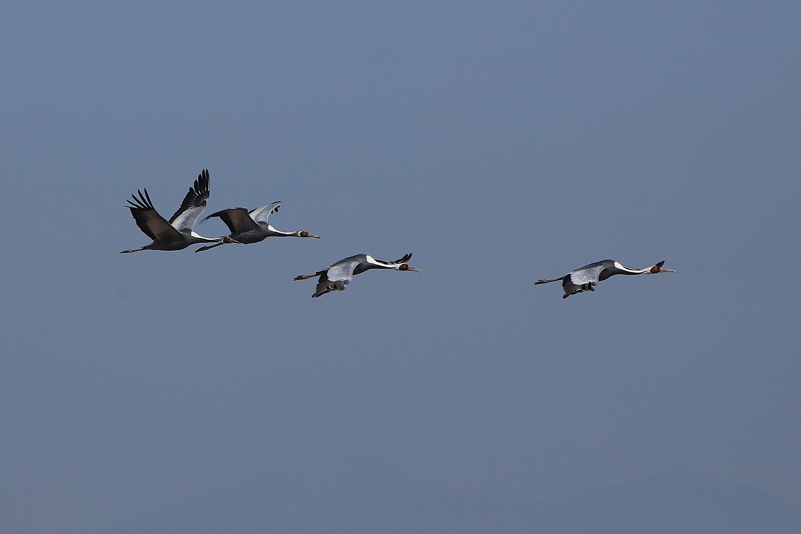 영상의 기온으로 오른 뒤에 주남지에 가니 재두루미들이 주남들의 하늘을 날고 있었습니다.