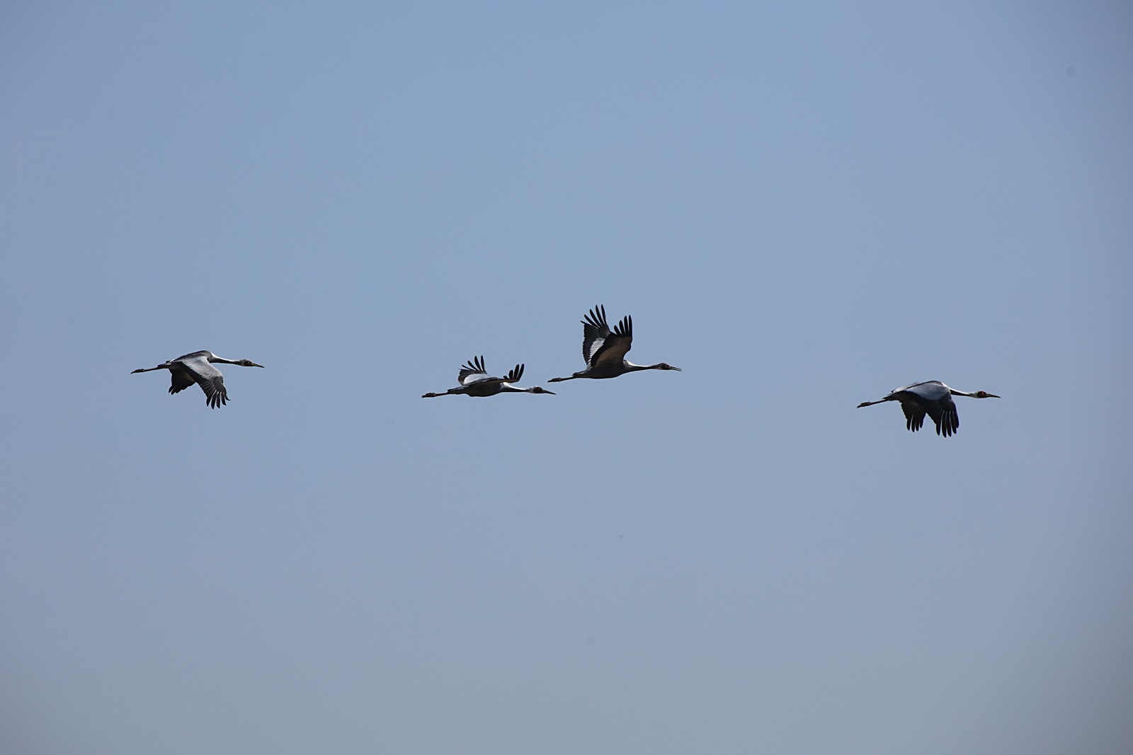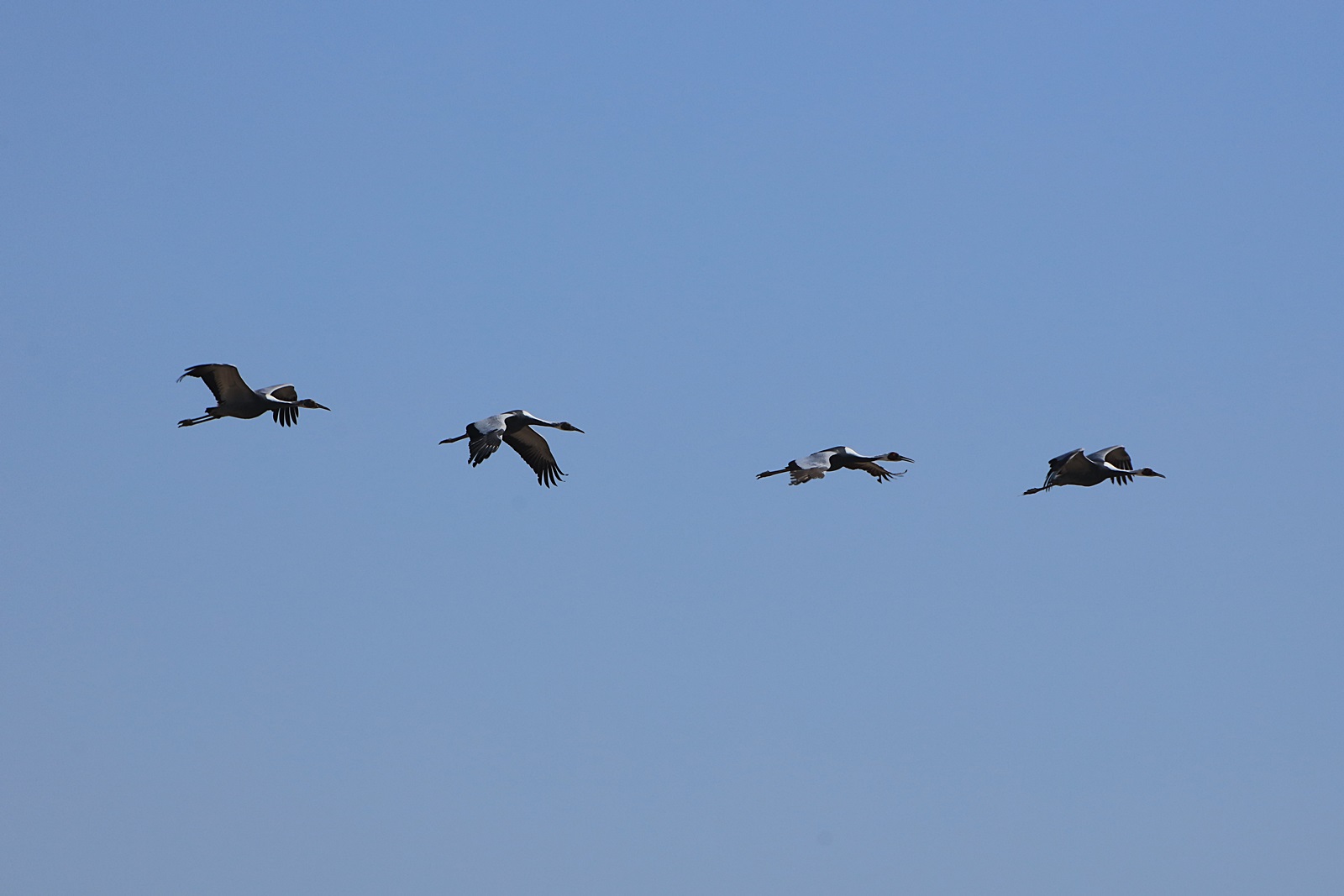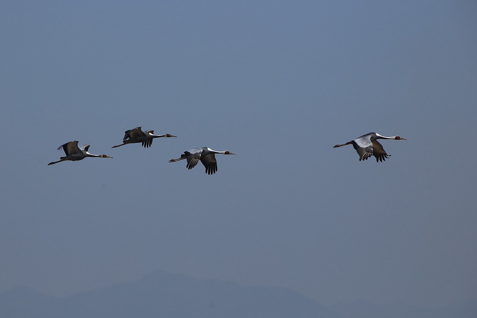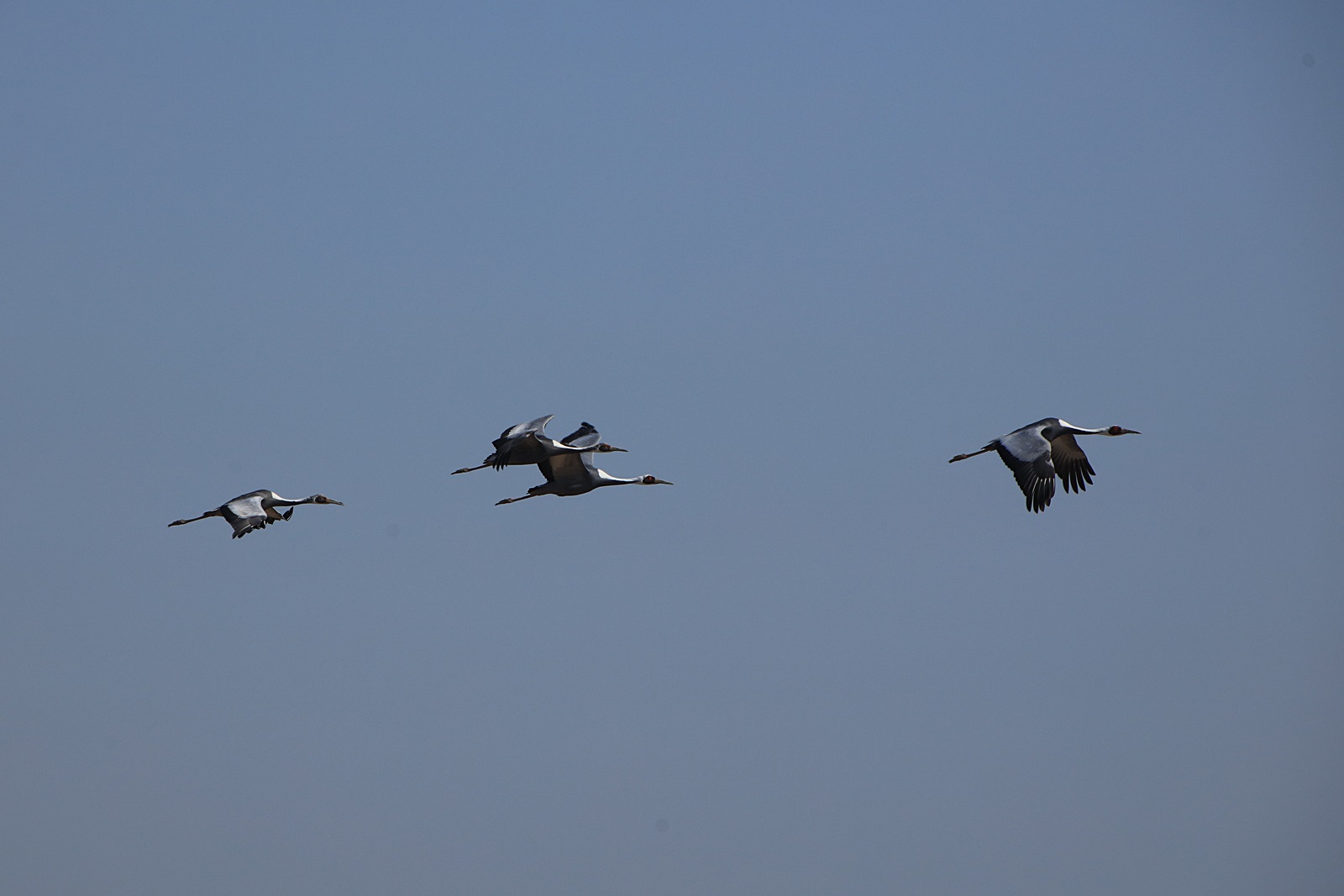 영상의 기온으로 오른 뒤에 주남지에 가니 재두루미들이 주남들의 하늘을 날고 있었습니다.