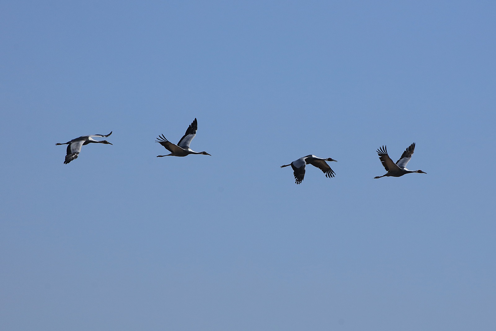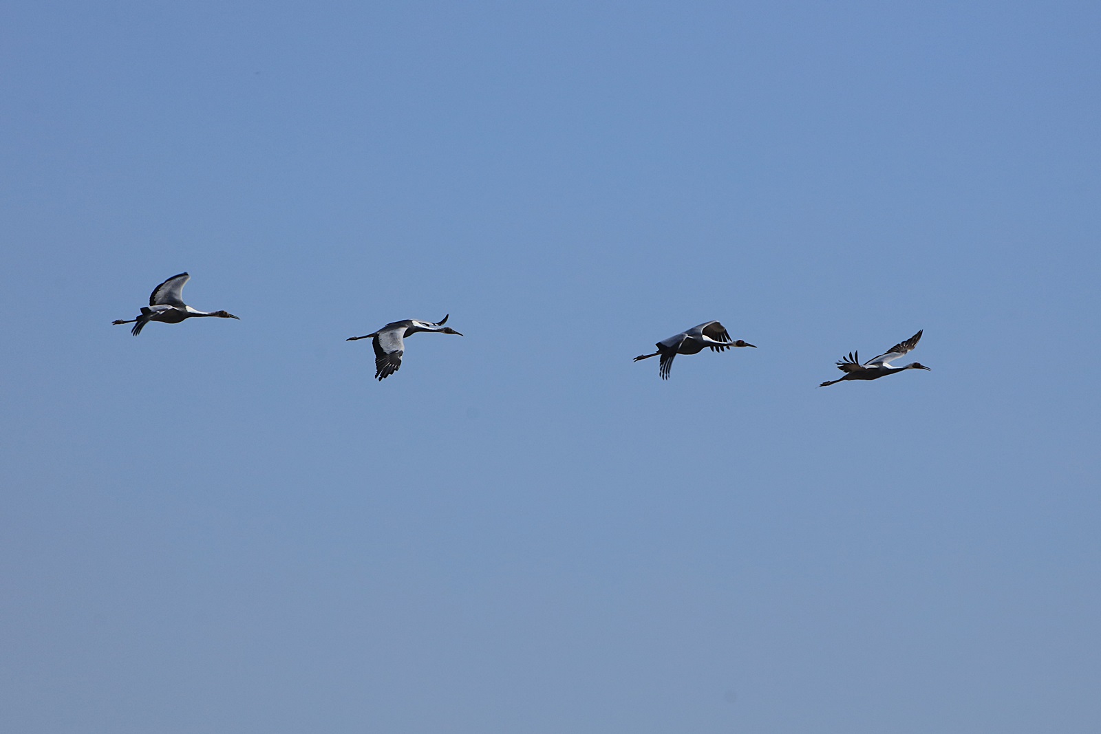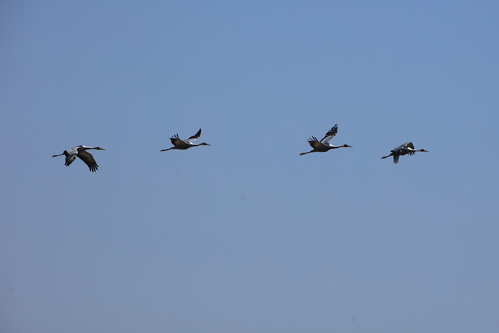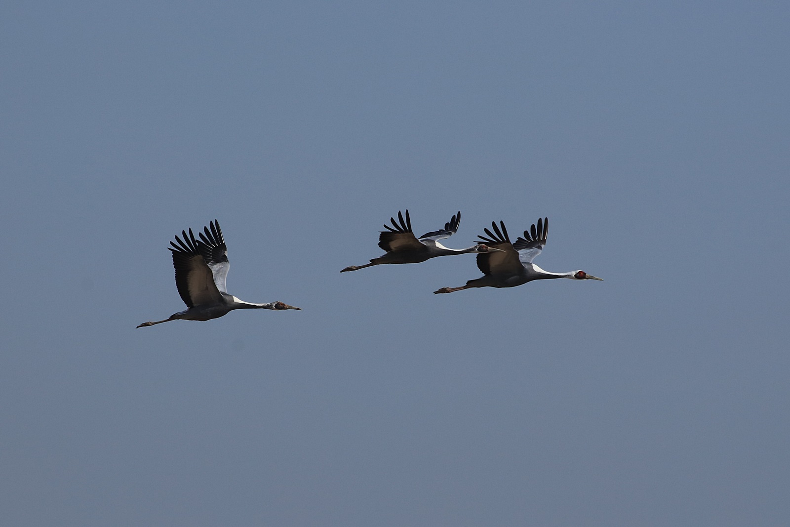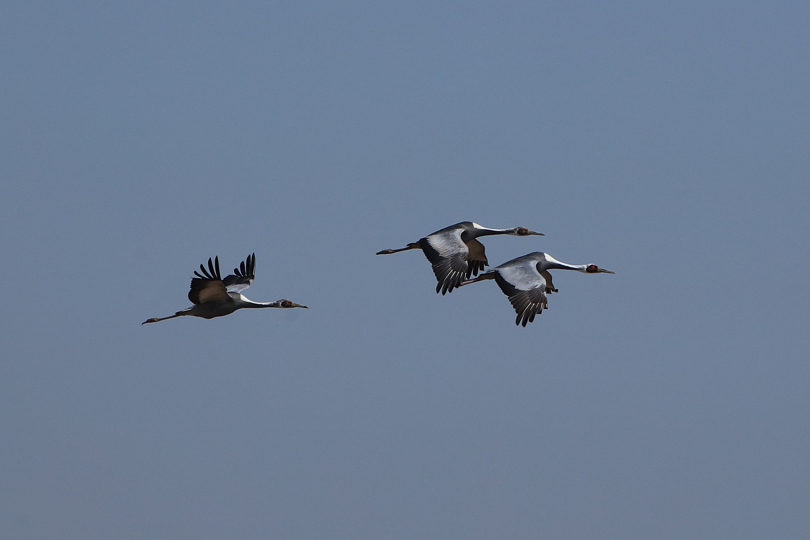 영상의 기온으로 오른 뒤에 주남지에 가니 재두루미들이 주남들의 하늘을 날고 있었습니다.