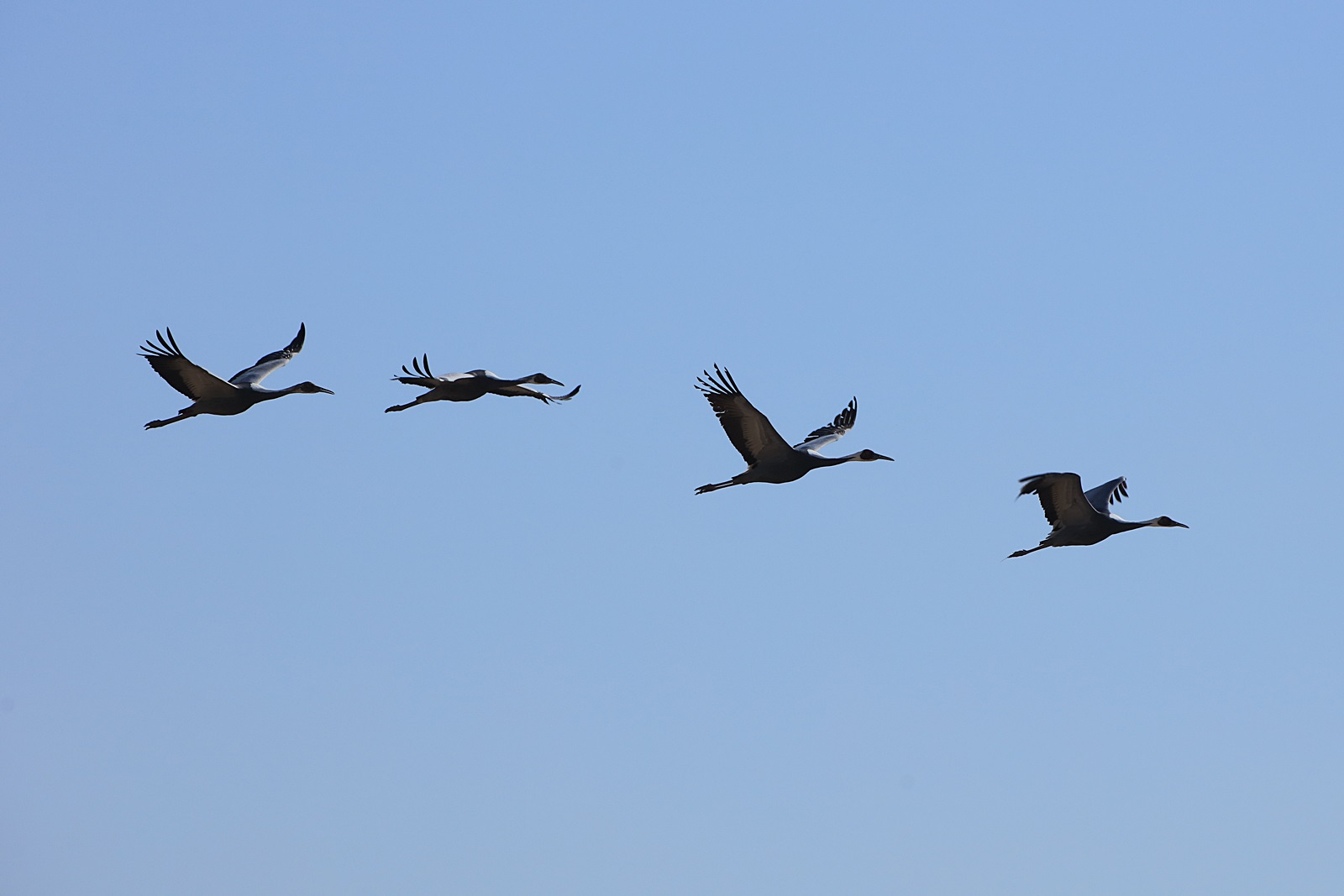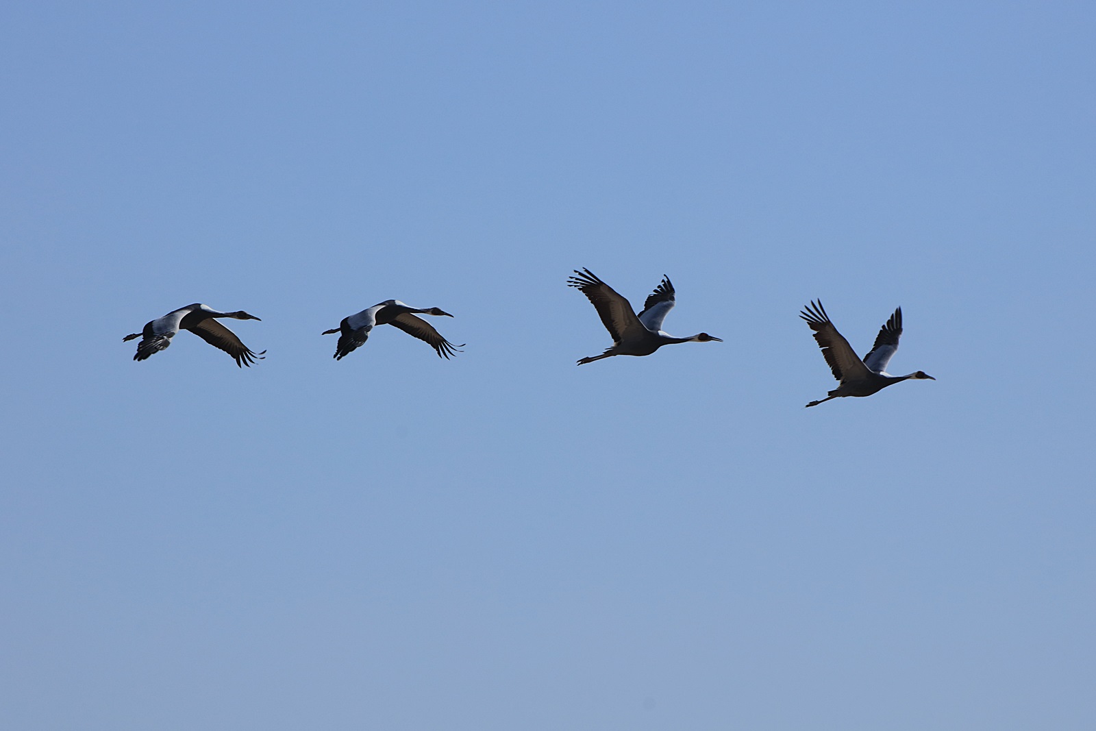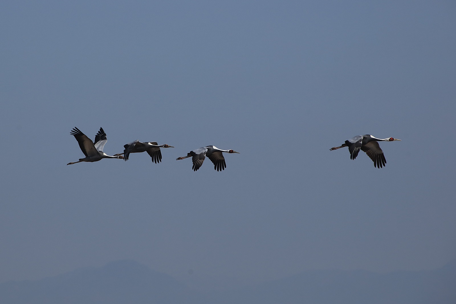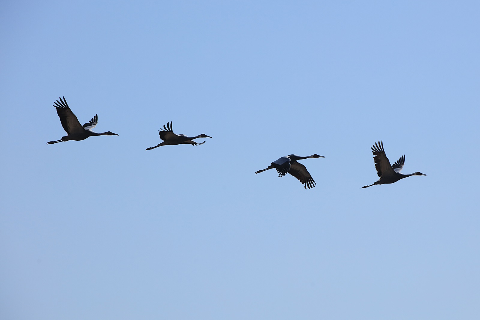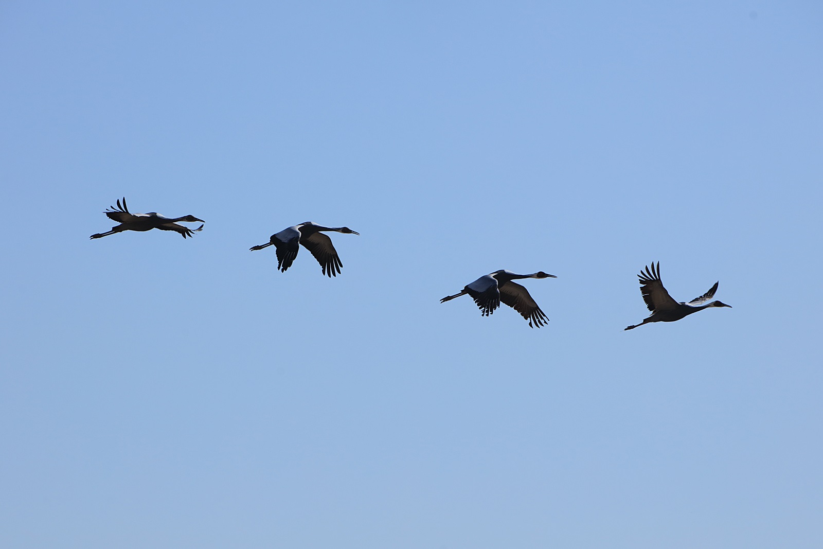 영상의 기온으로 오른 뒤에 주남지에 가니 재두루미들이 주남들의 하늘을 날고 있었습니다.