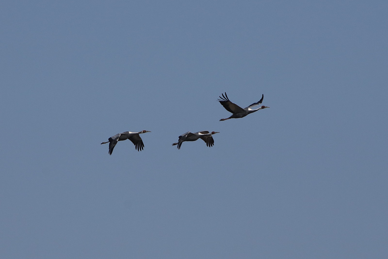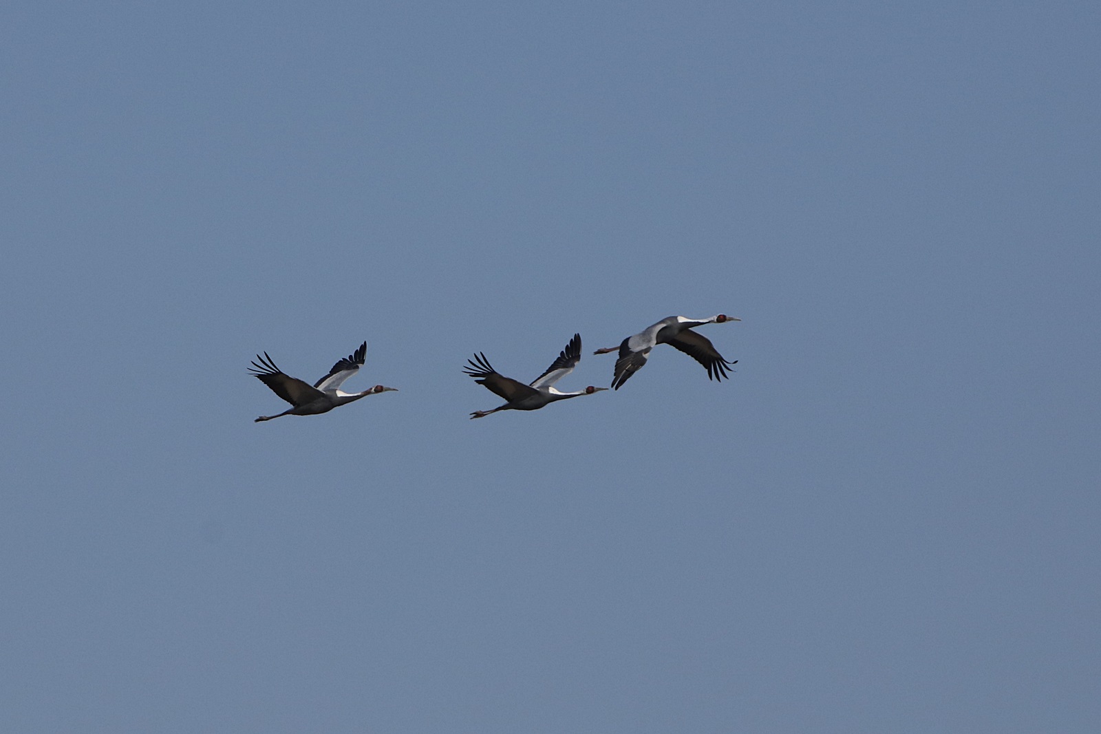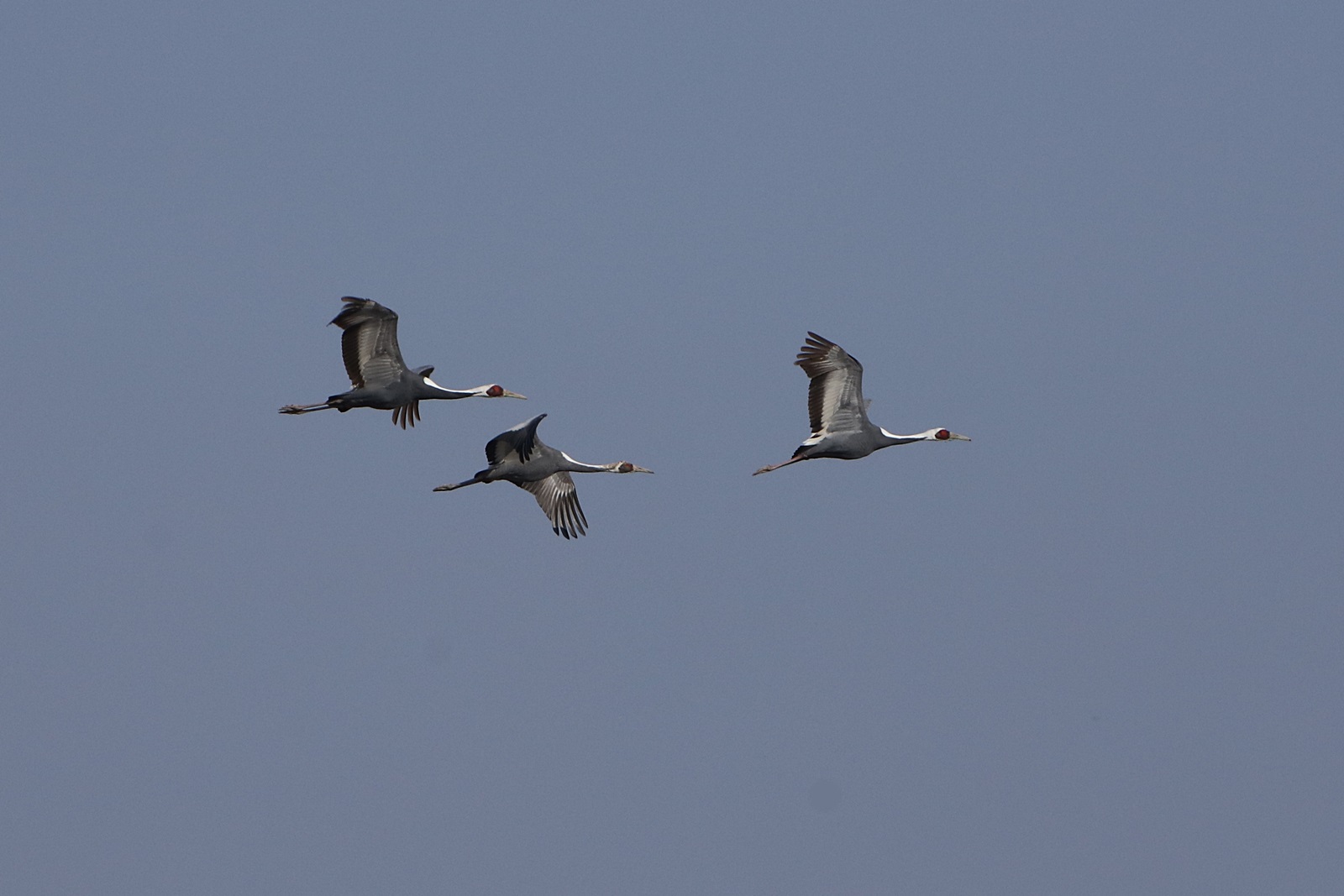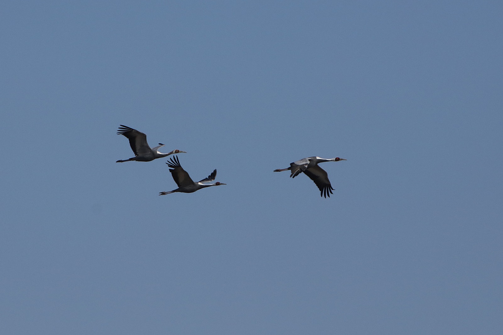 재두루미 3마리가 정답게 주남들판의 하늘을 날고 있었습니다.