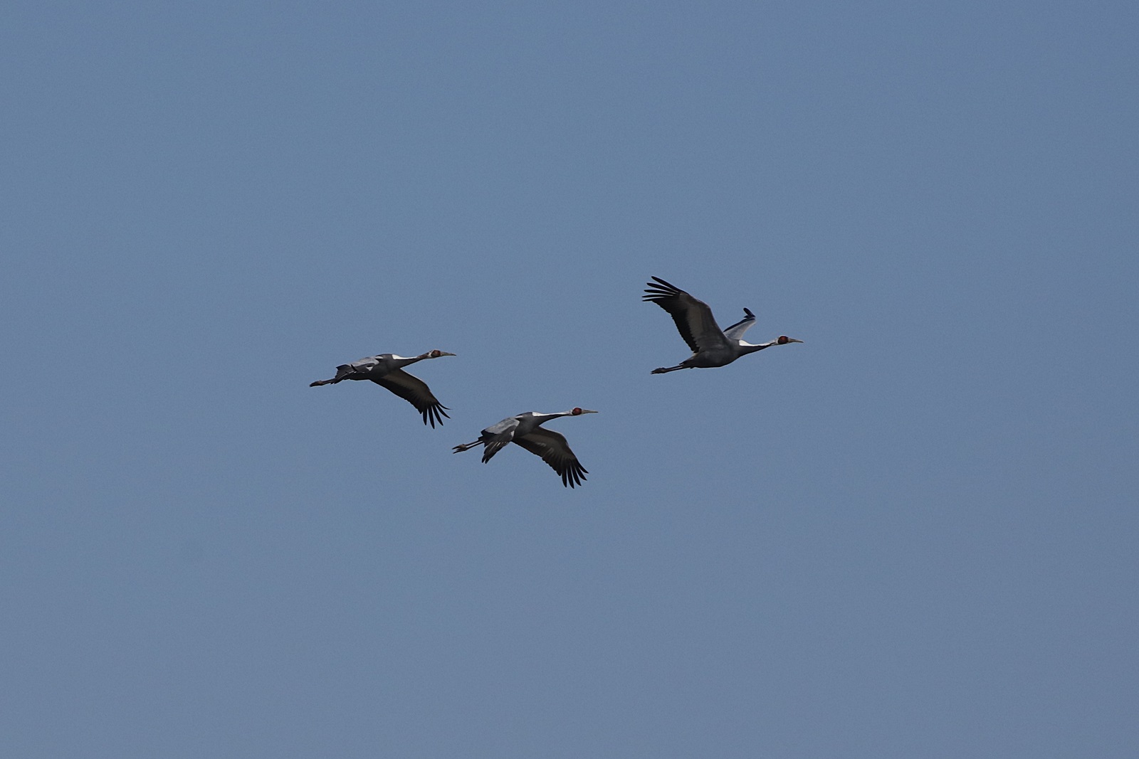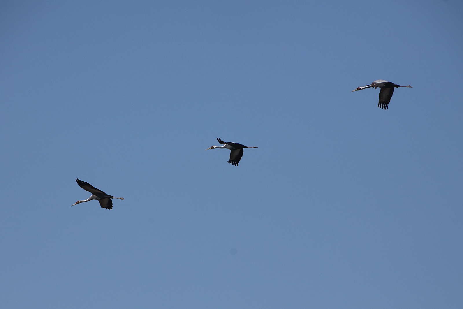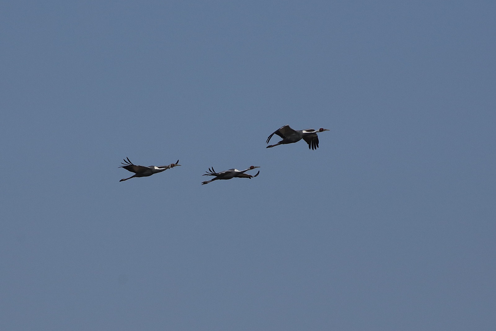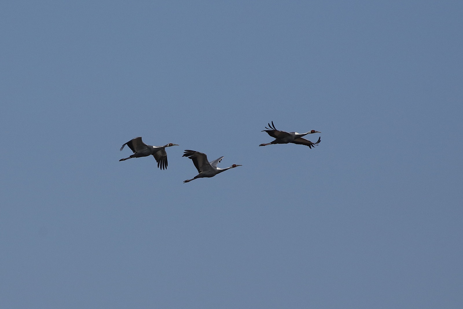 재두루미 3마리가 정답게 주남들판의 하늘을 날고 있었습니다.
