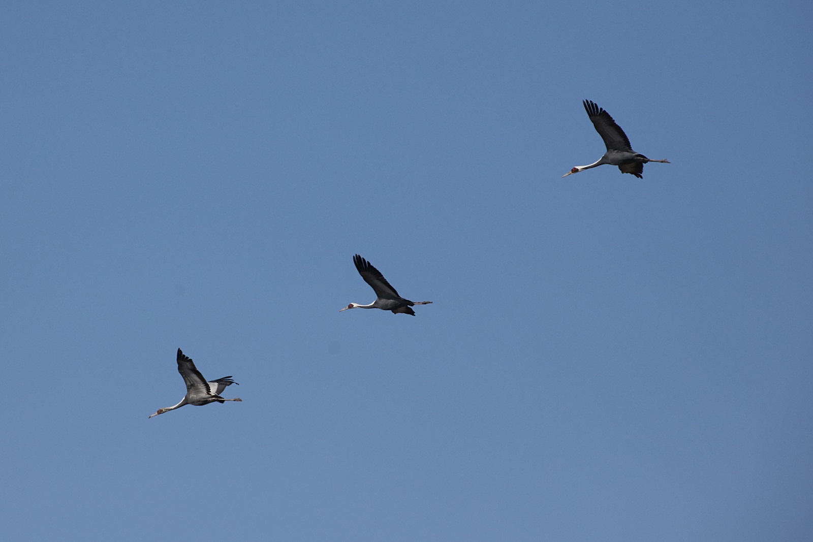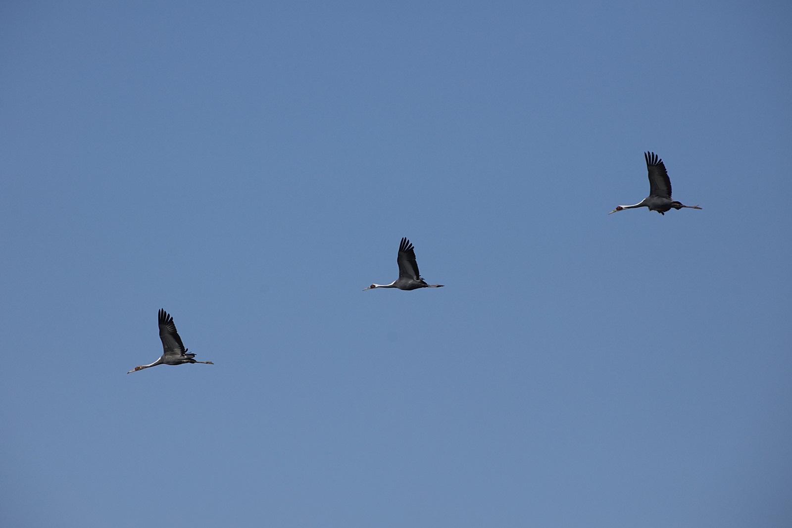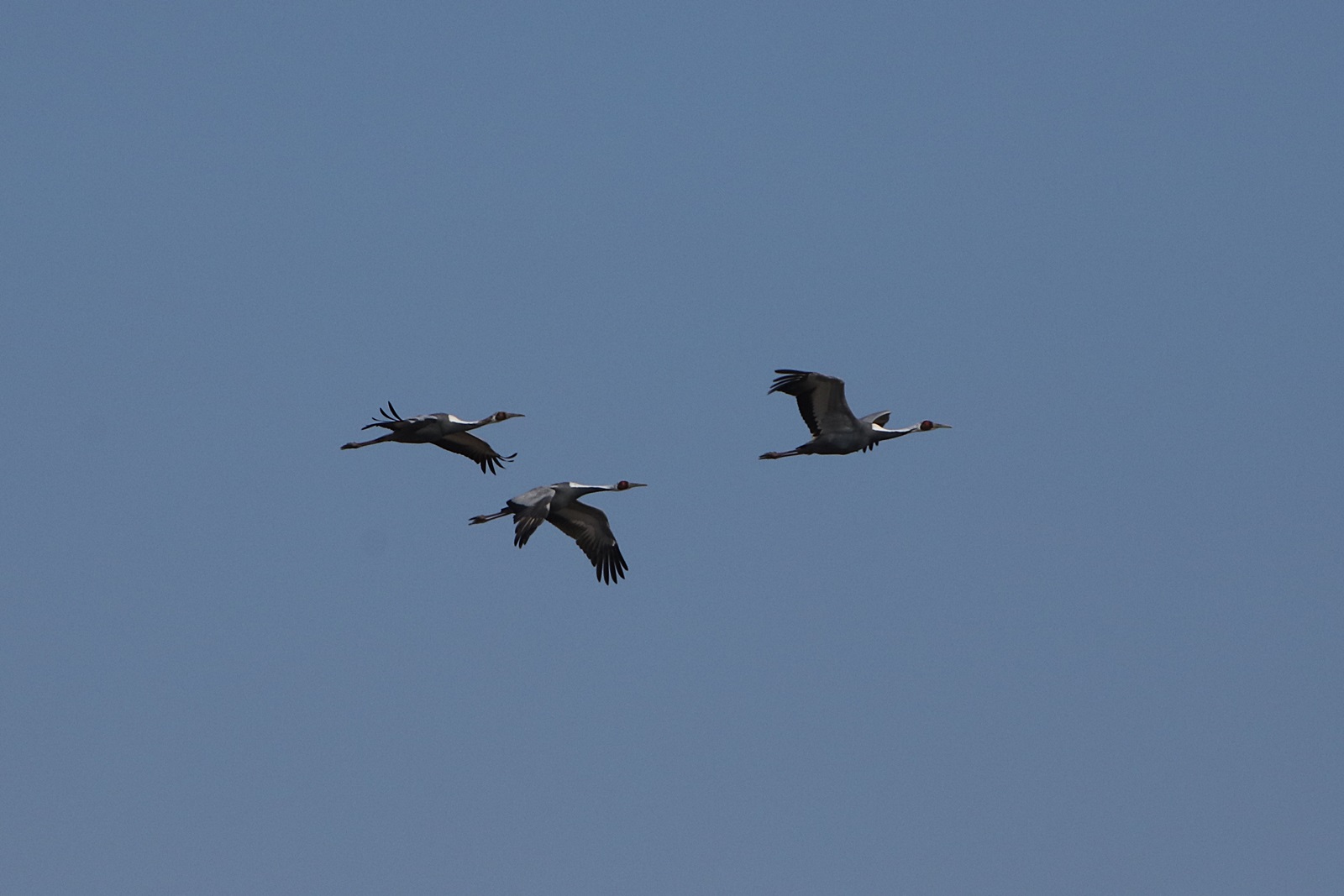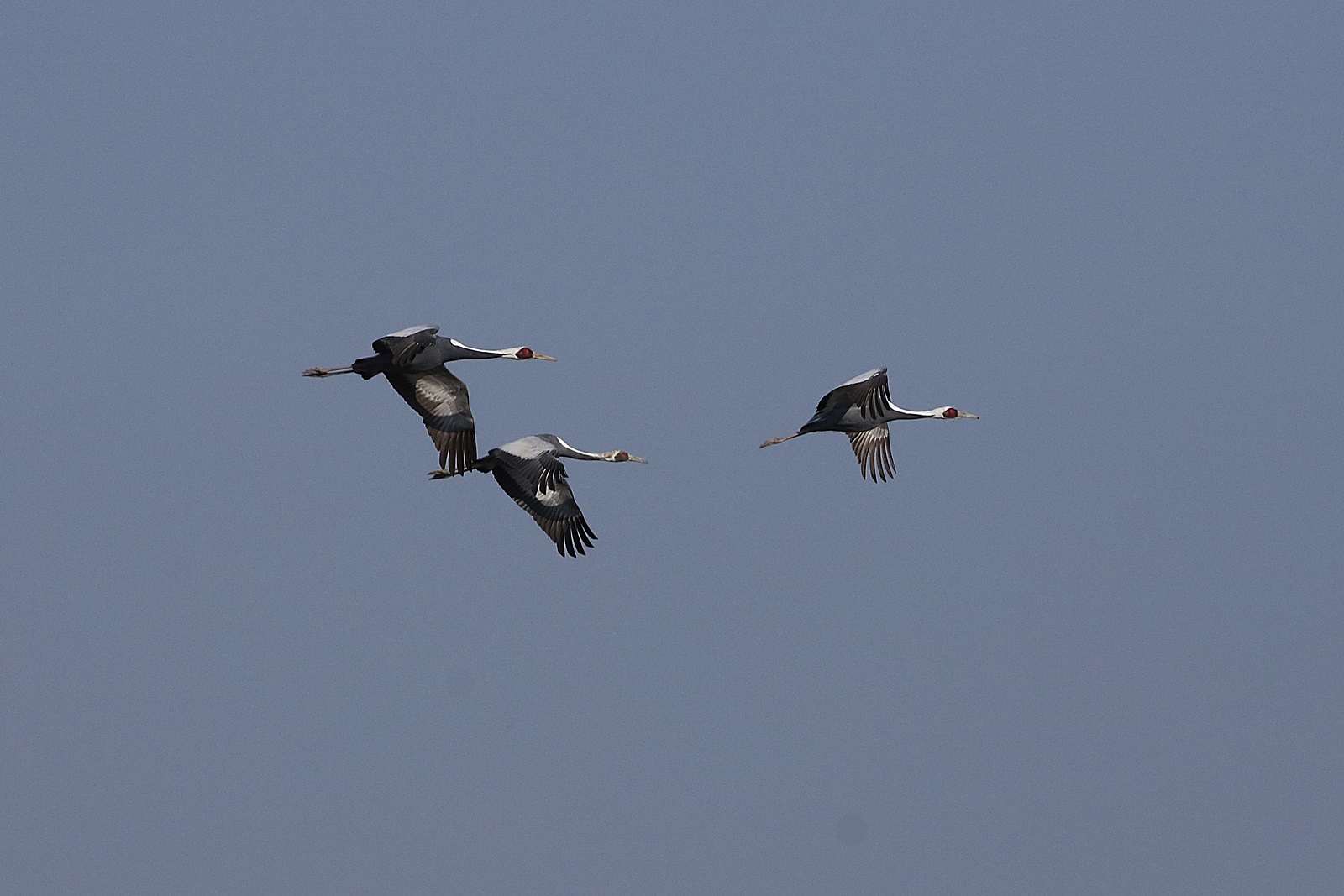 재두루미 3마리가 정답게 주남들판의 하늘을 날고 있었습니다.