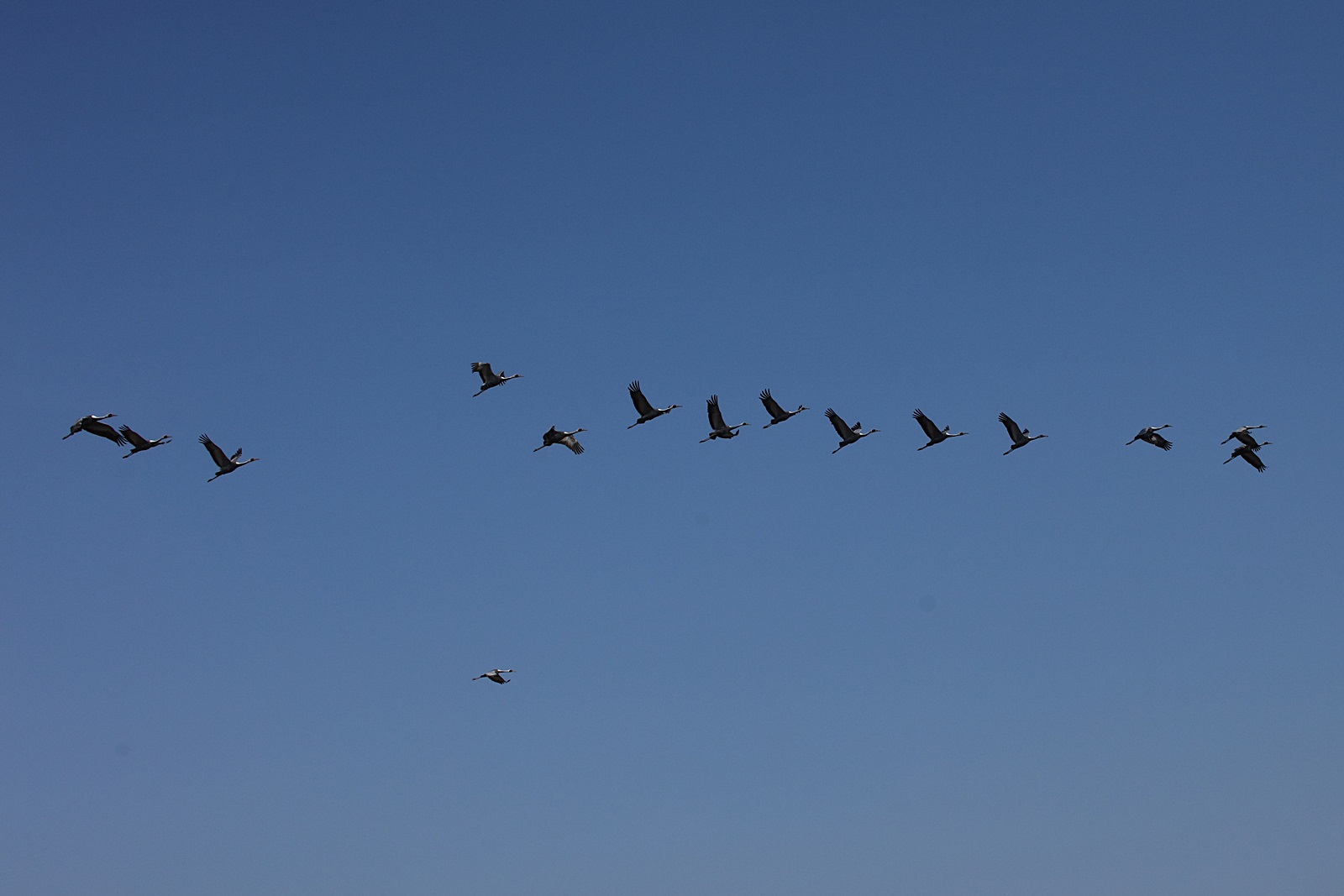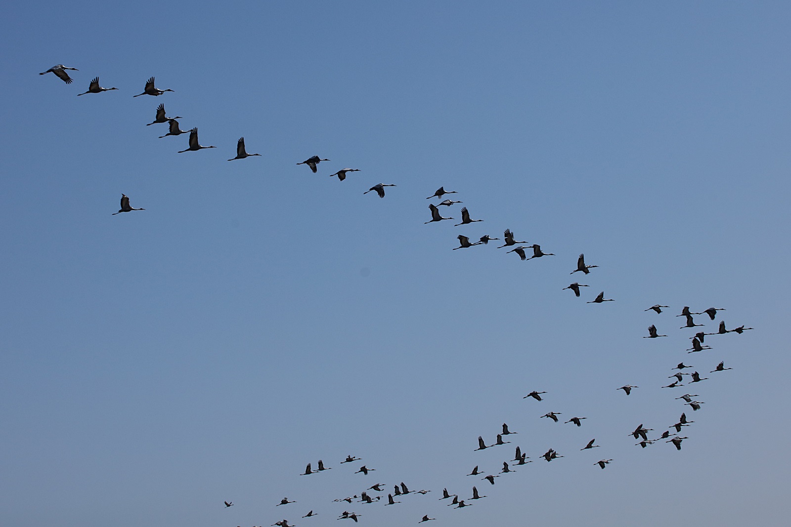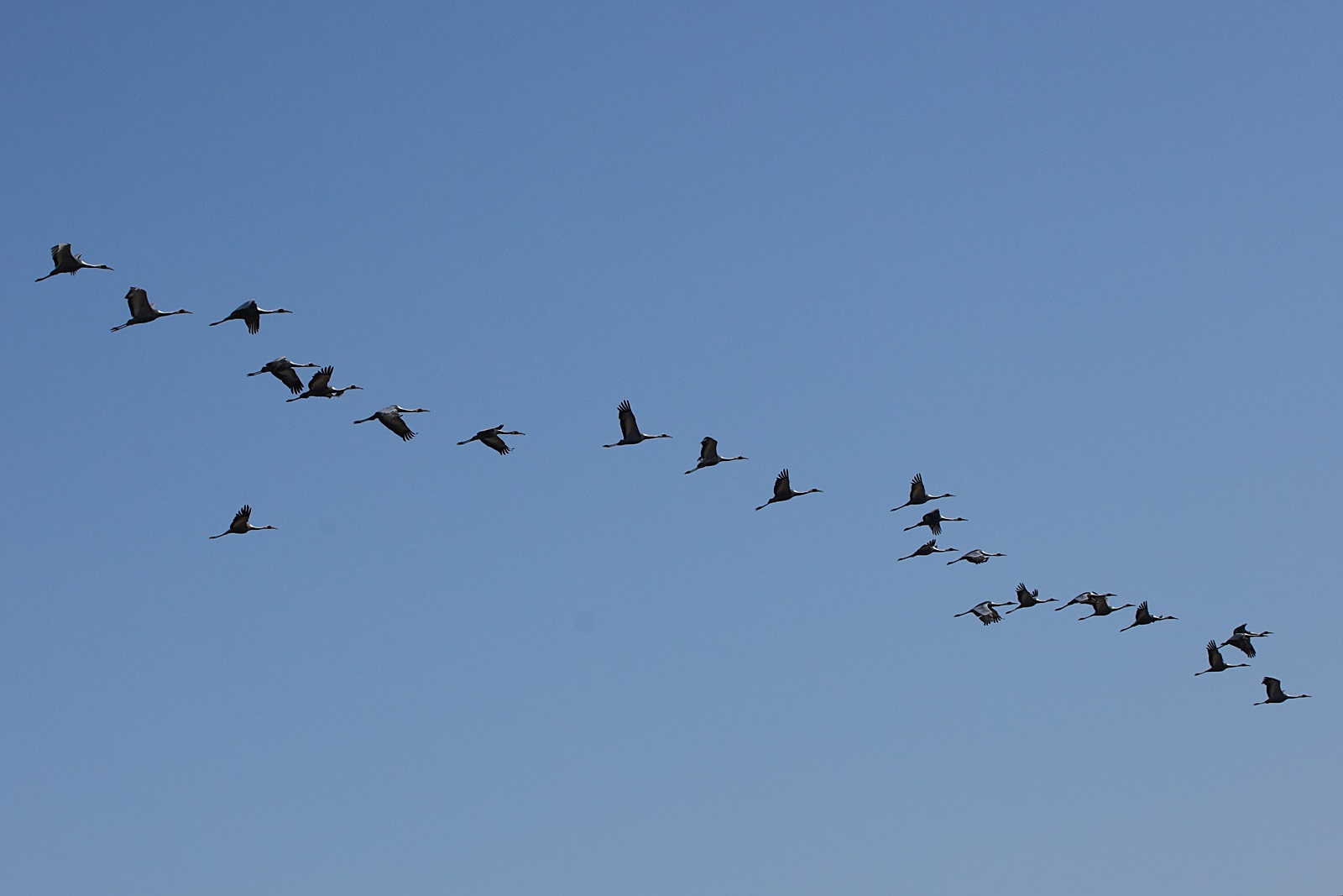 무리를 지어 주남 들판 위의 하늘을 날고 있었습니다.