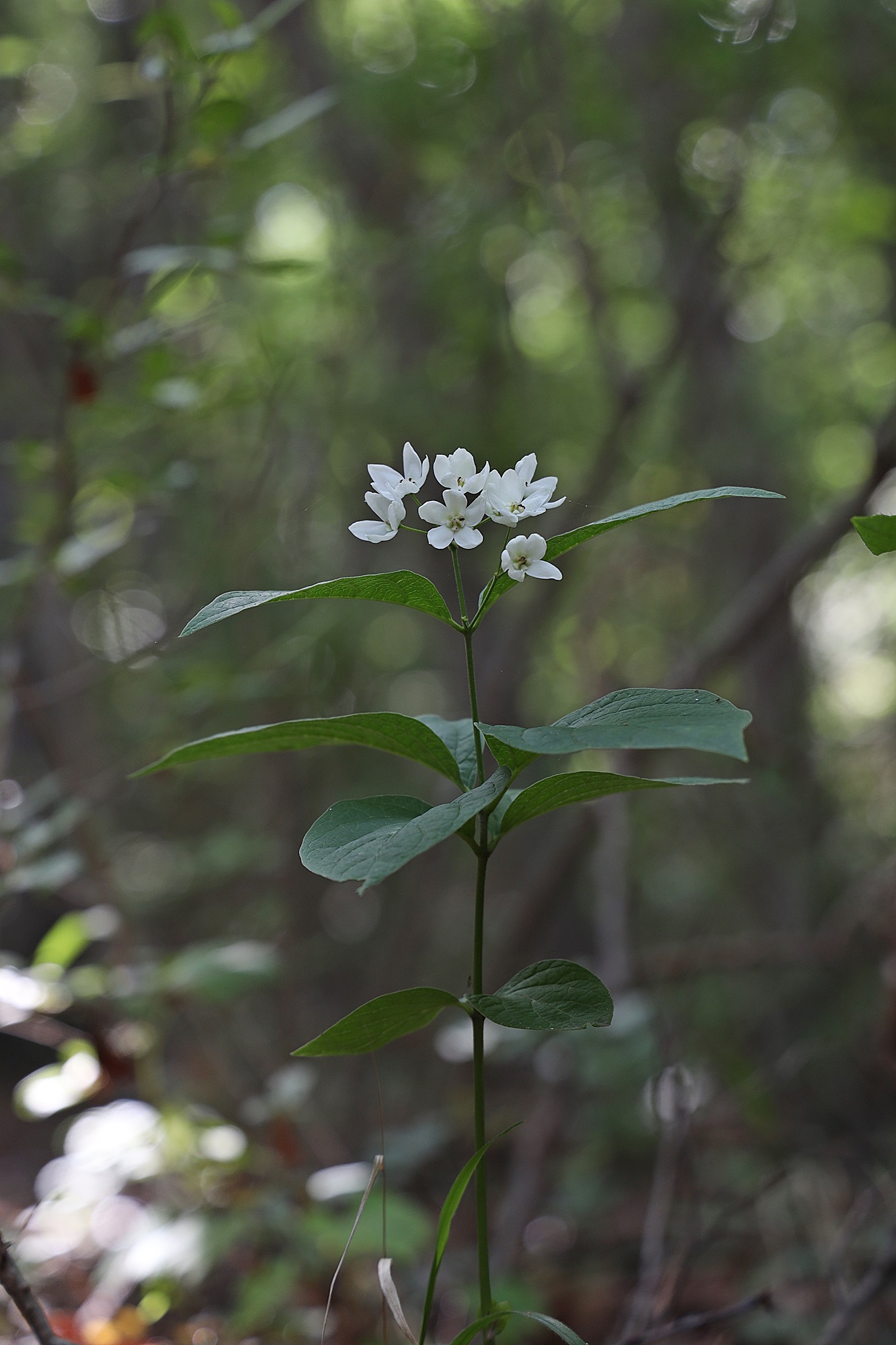 꽃은 줄기 끝과 위쪽 잎겨드랑이에 산형으로 달려 전체적으로 취산꽃차례를 이루며,