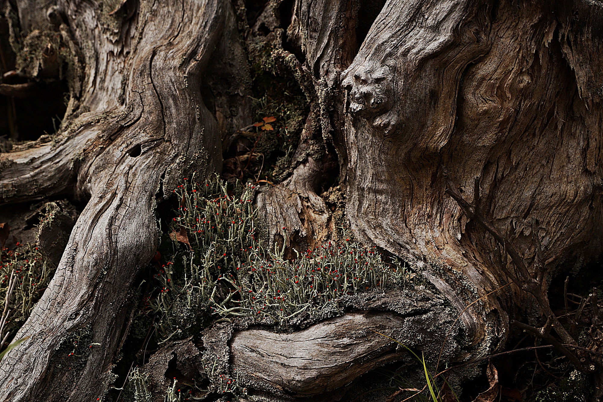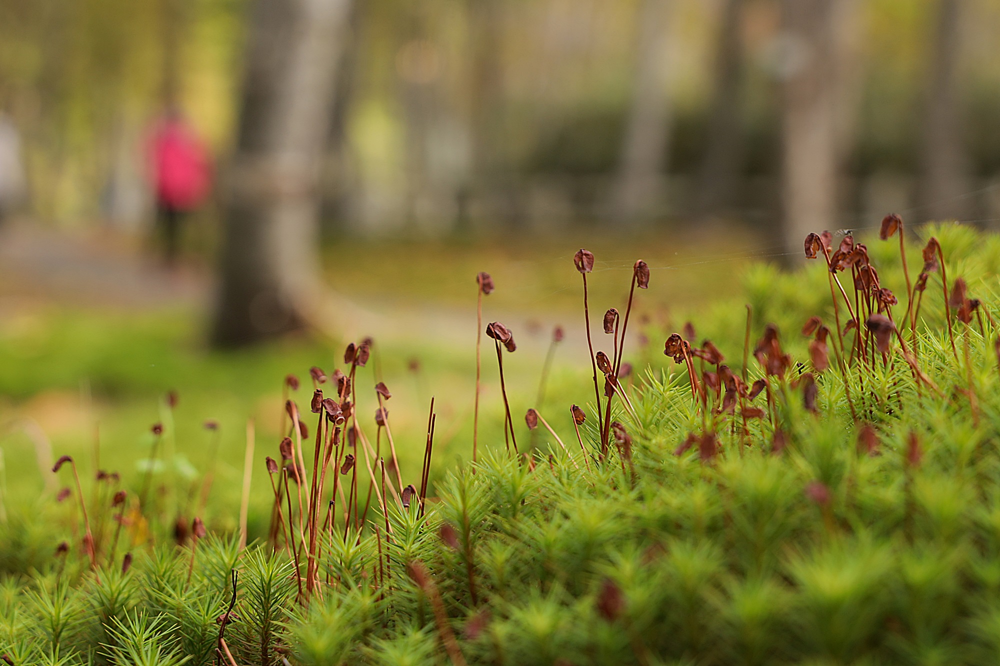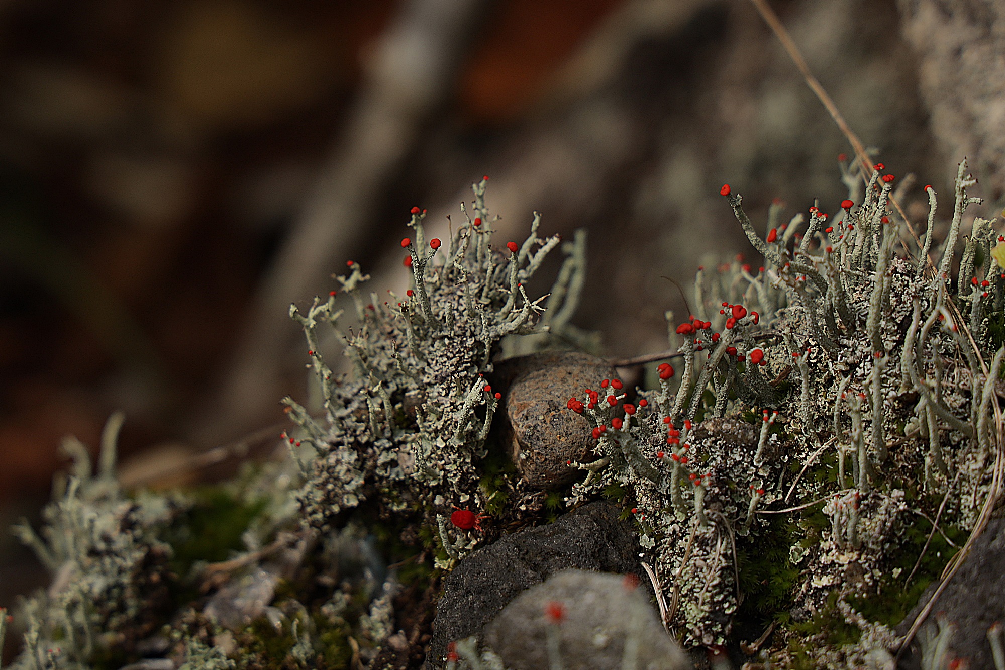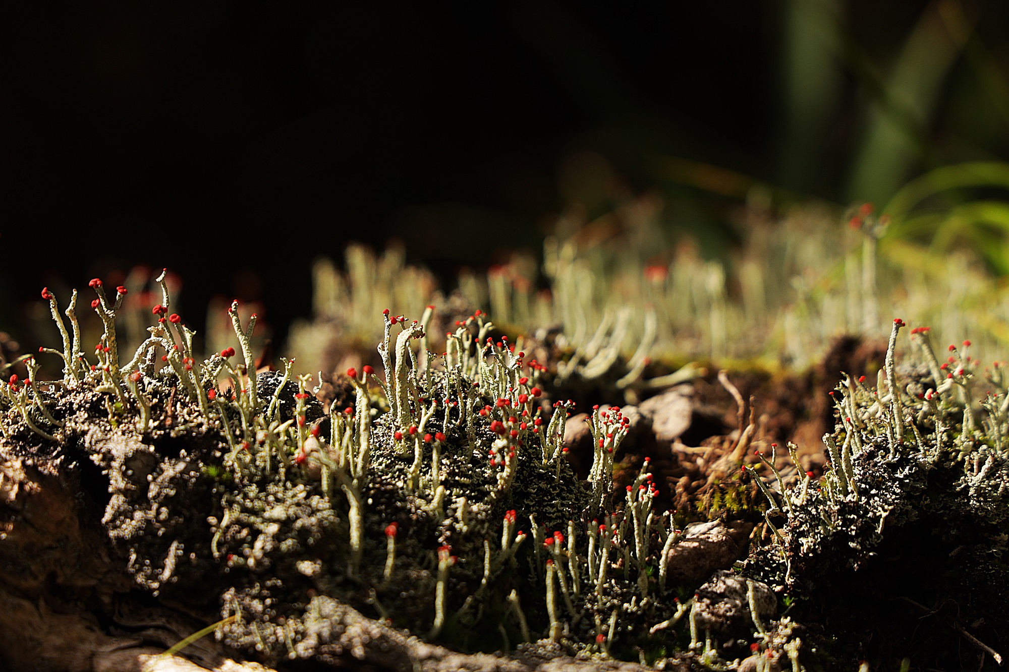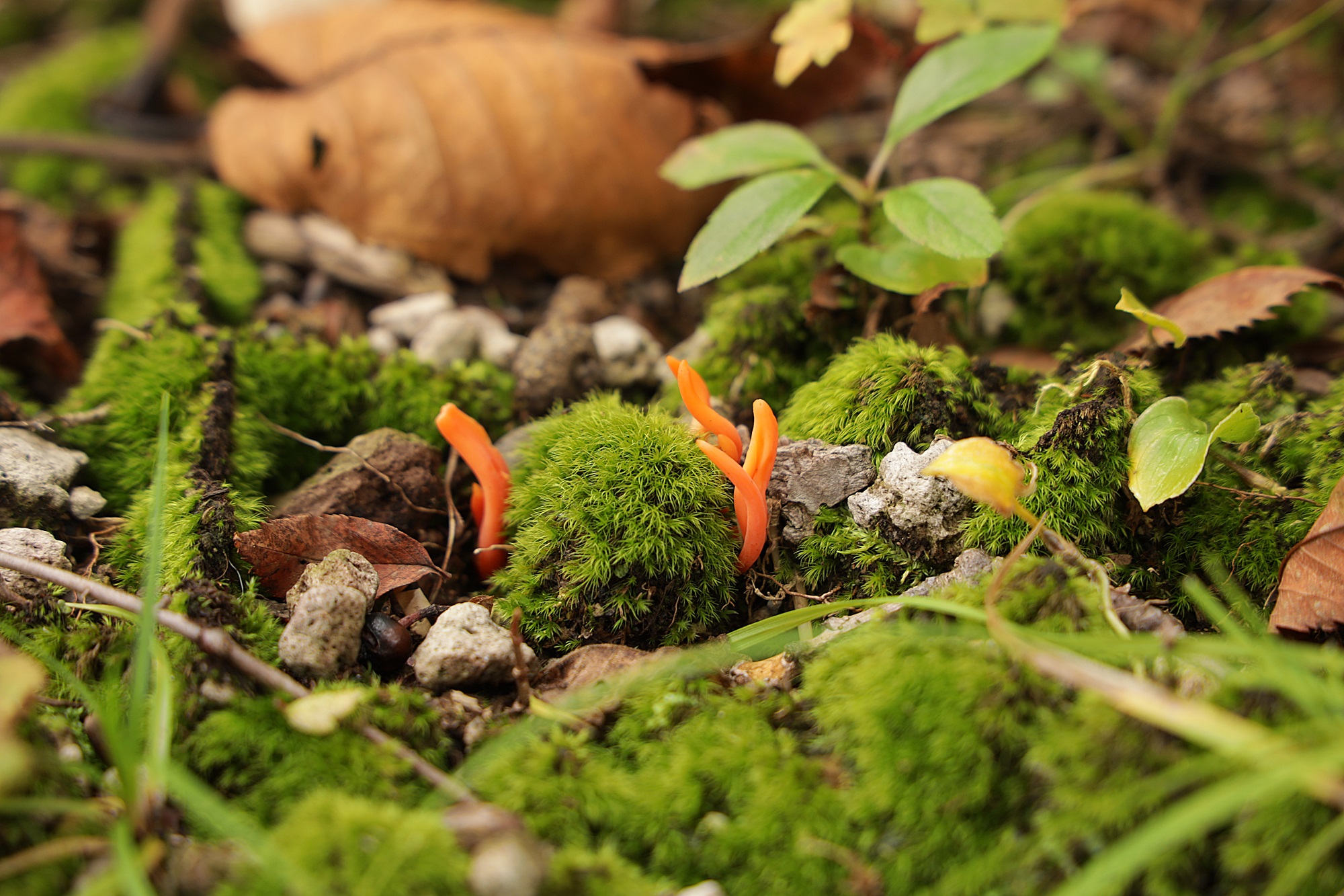 숲속에서 이끼와ㅣ 버섯, 지의류를 보았습니다.