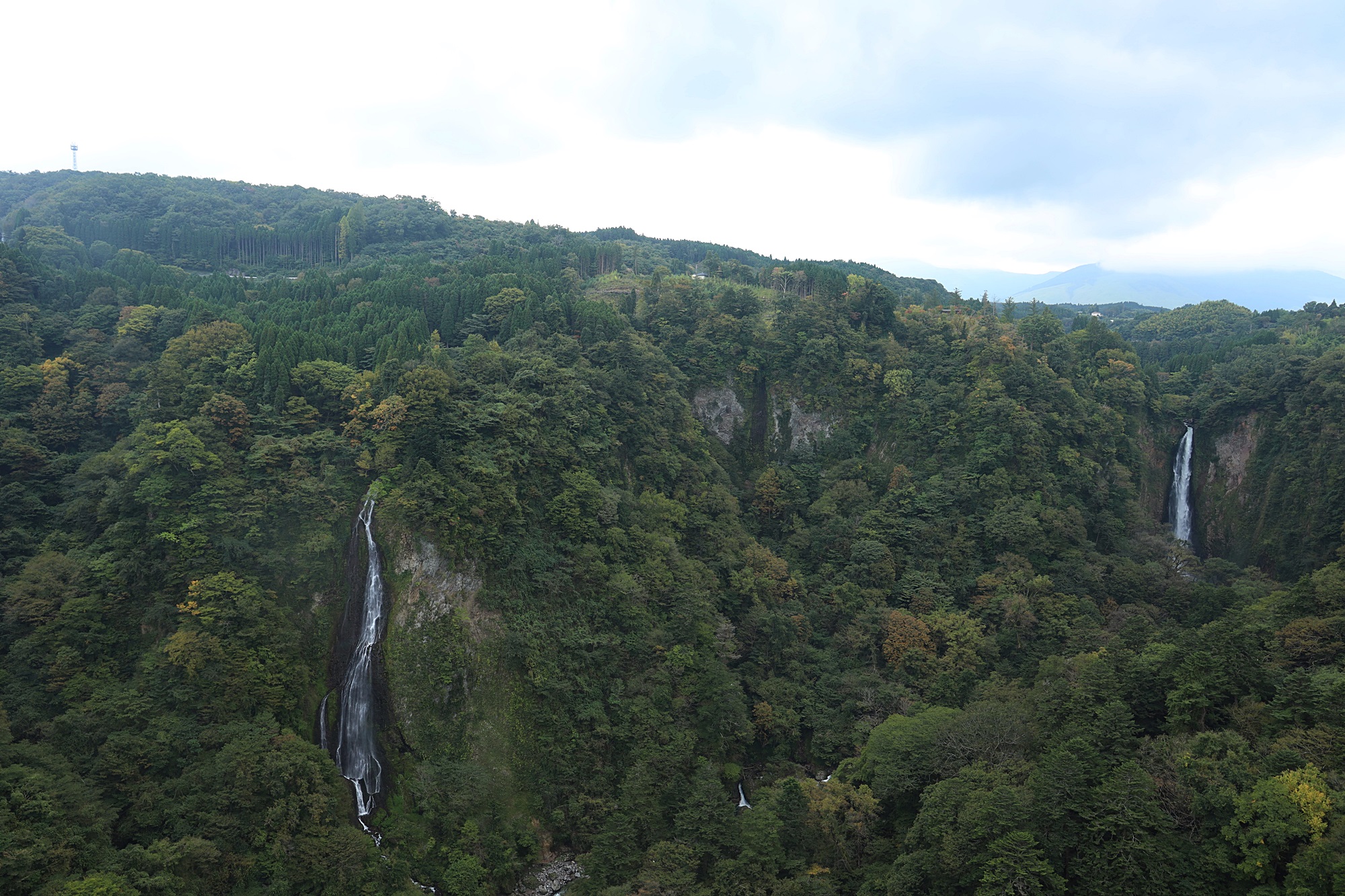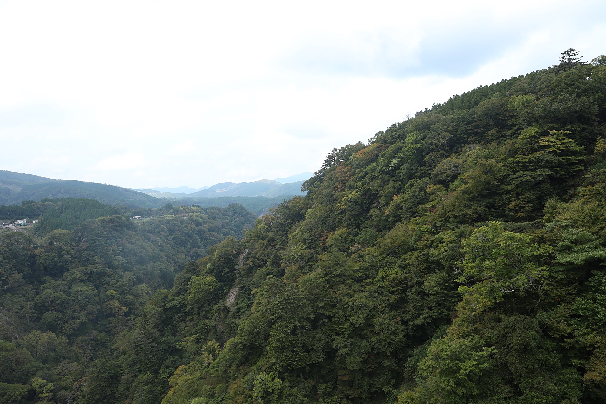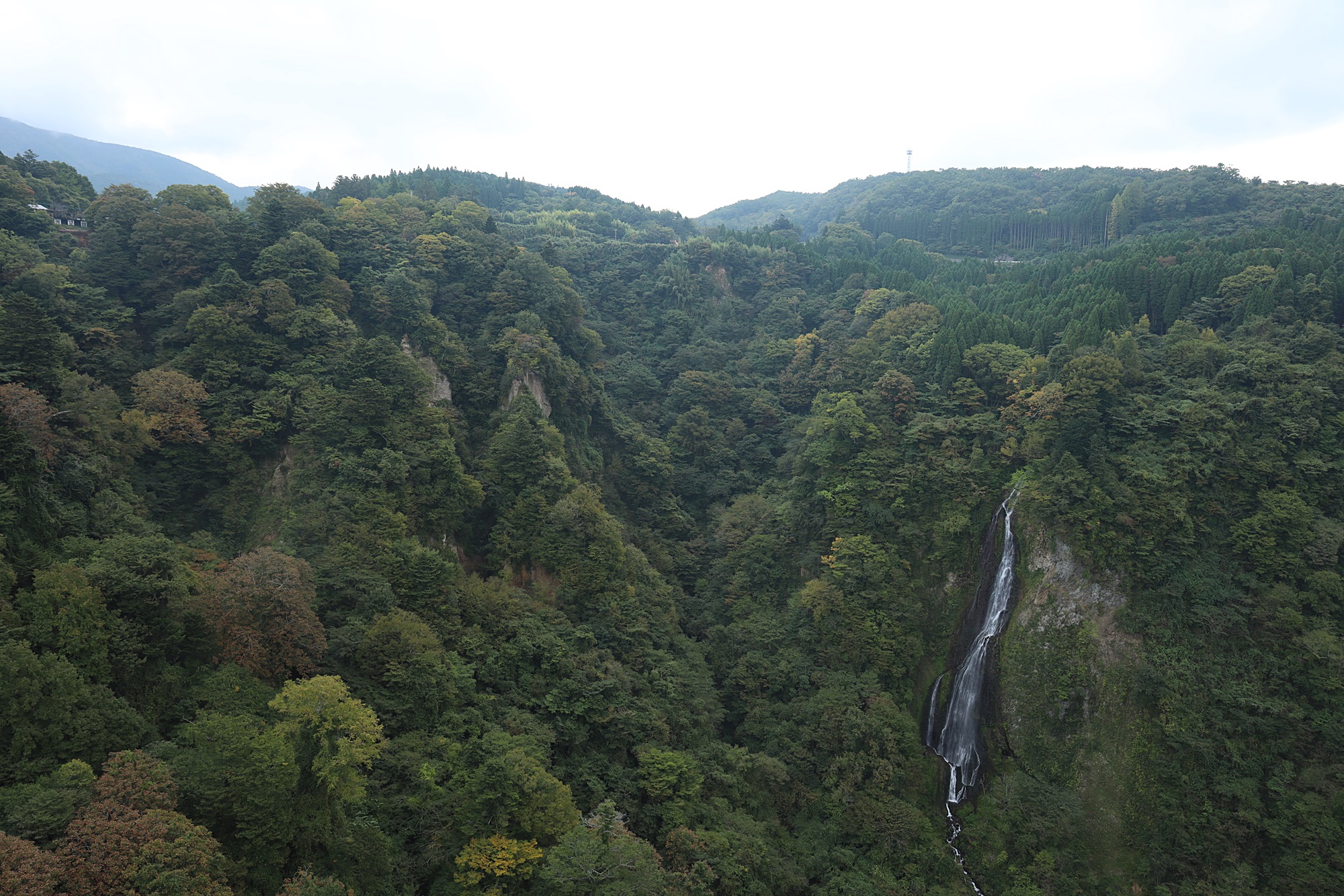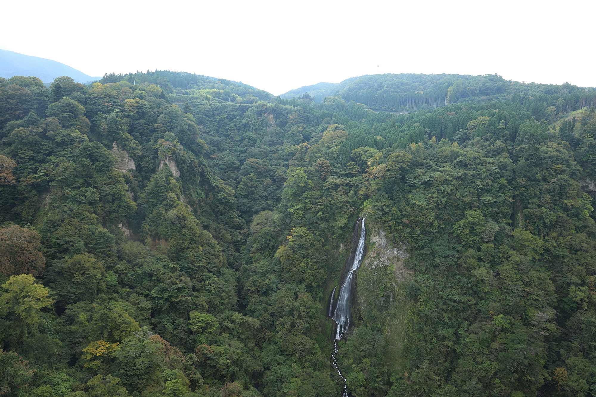 오타현의 명소이자 일본 폭포 백선에 선정된 진동의 폭포와 신록이 아름다운 큐스계곡 등을 볼수 있습니다.