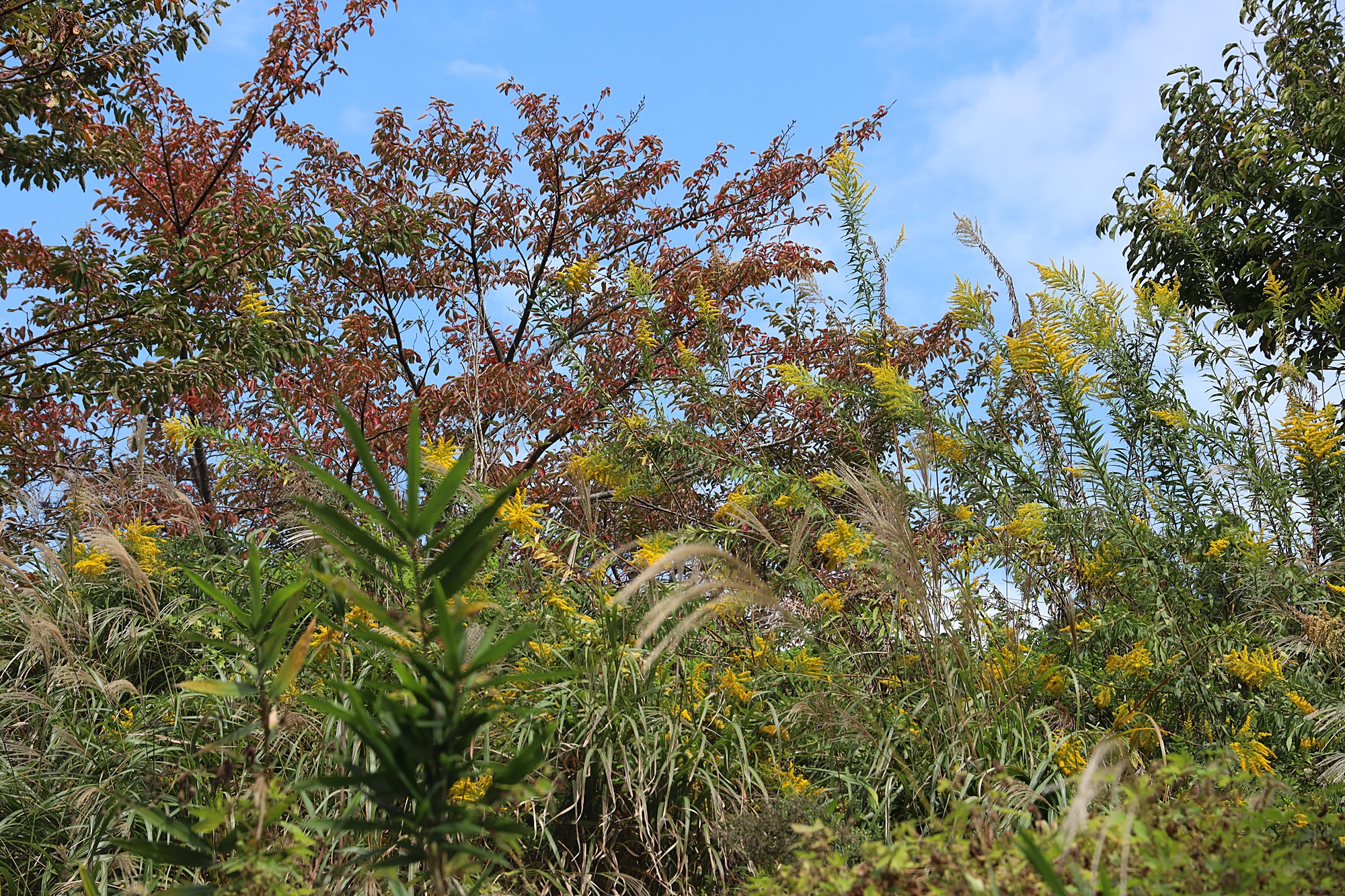 전망대에서 현수교와 계곡을 보고 나오면서 주변의 건물과 나무와 양미역취를 보았습니다.