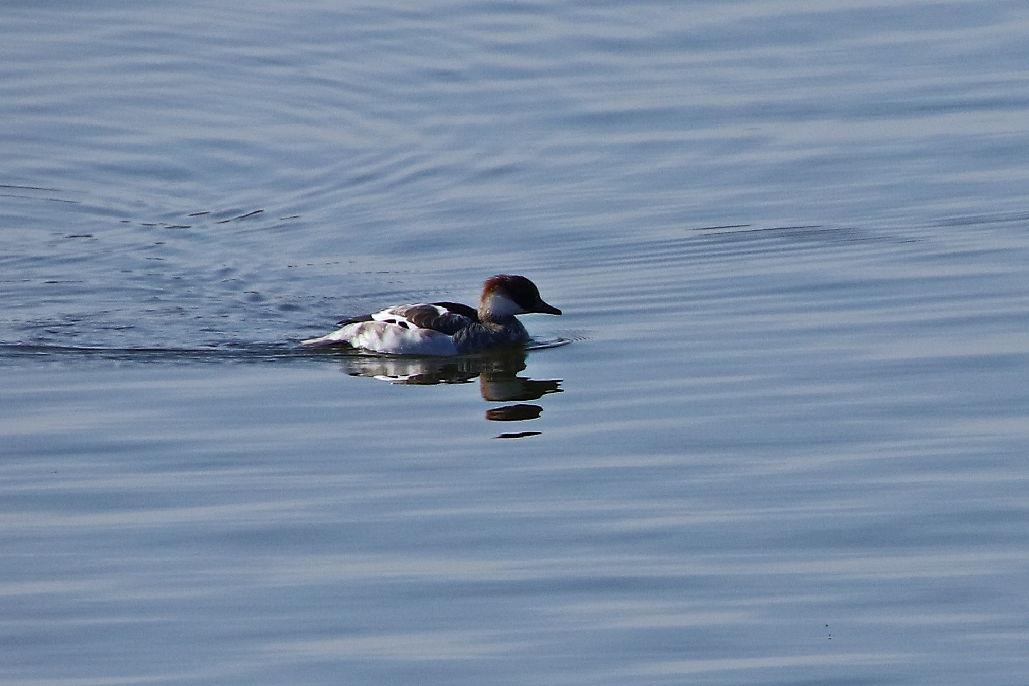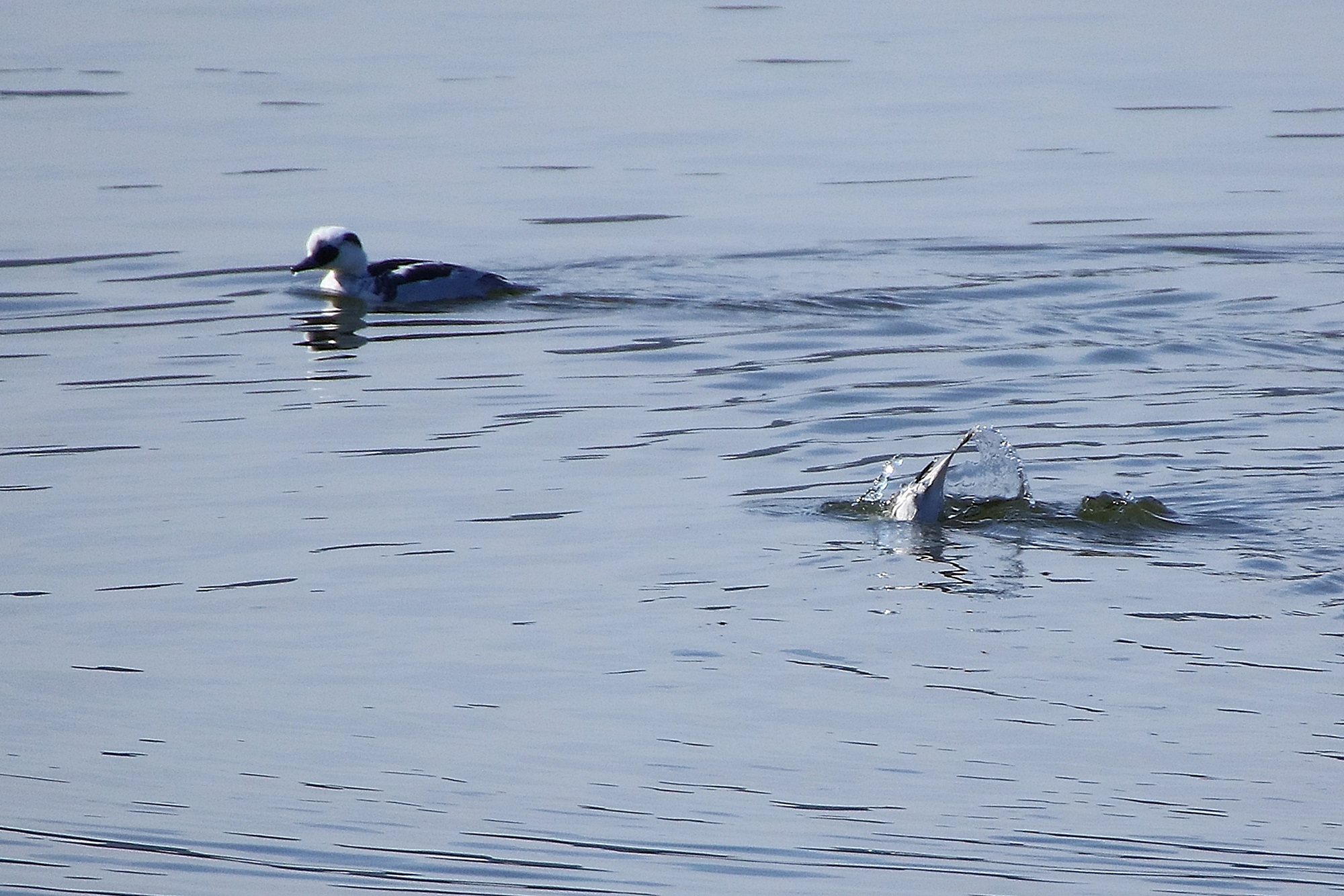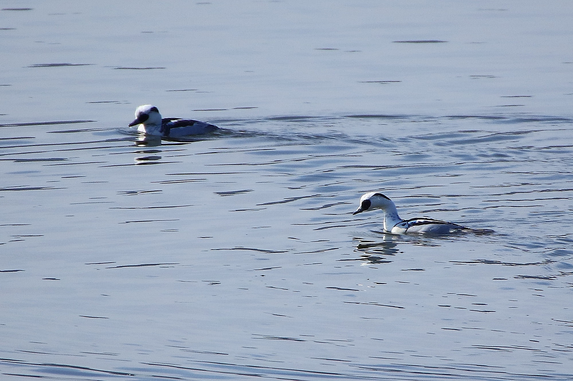 창원 주남지에 흰비오리가 놀고 있습니다.
