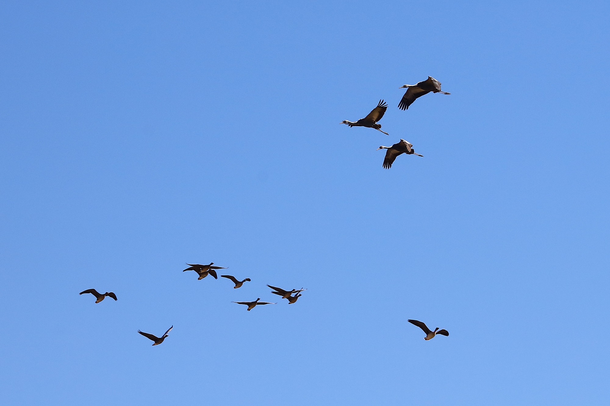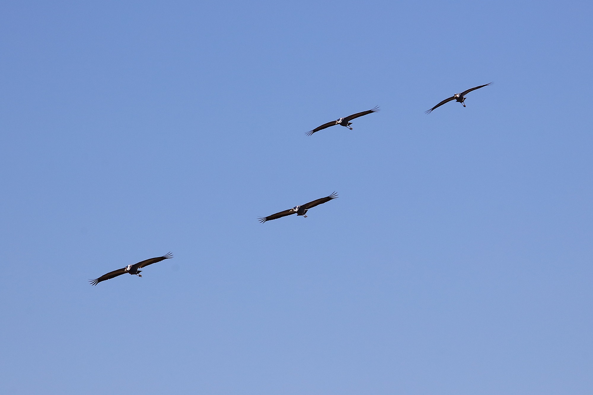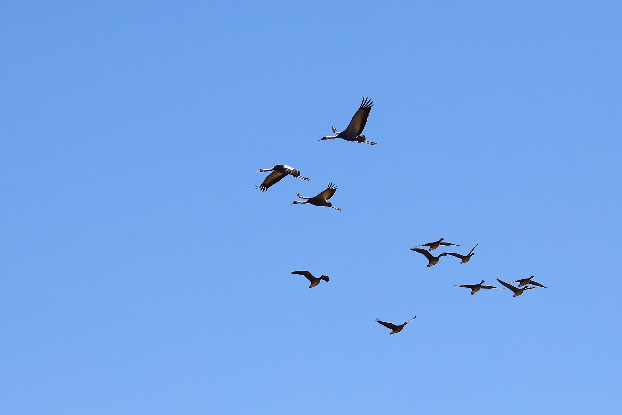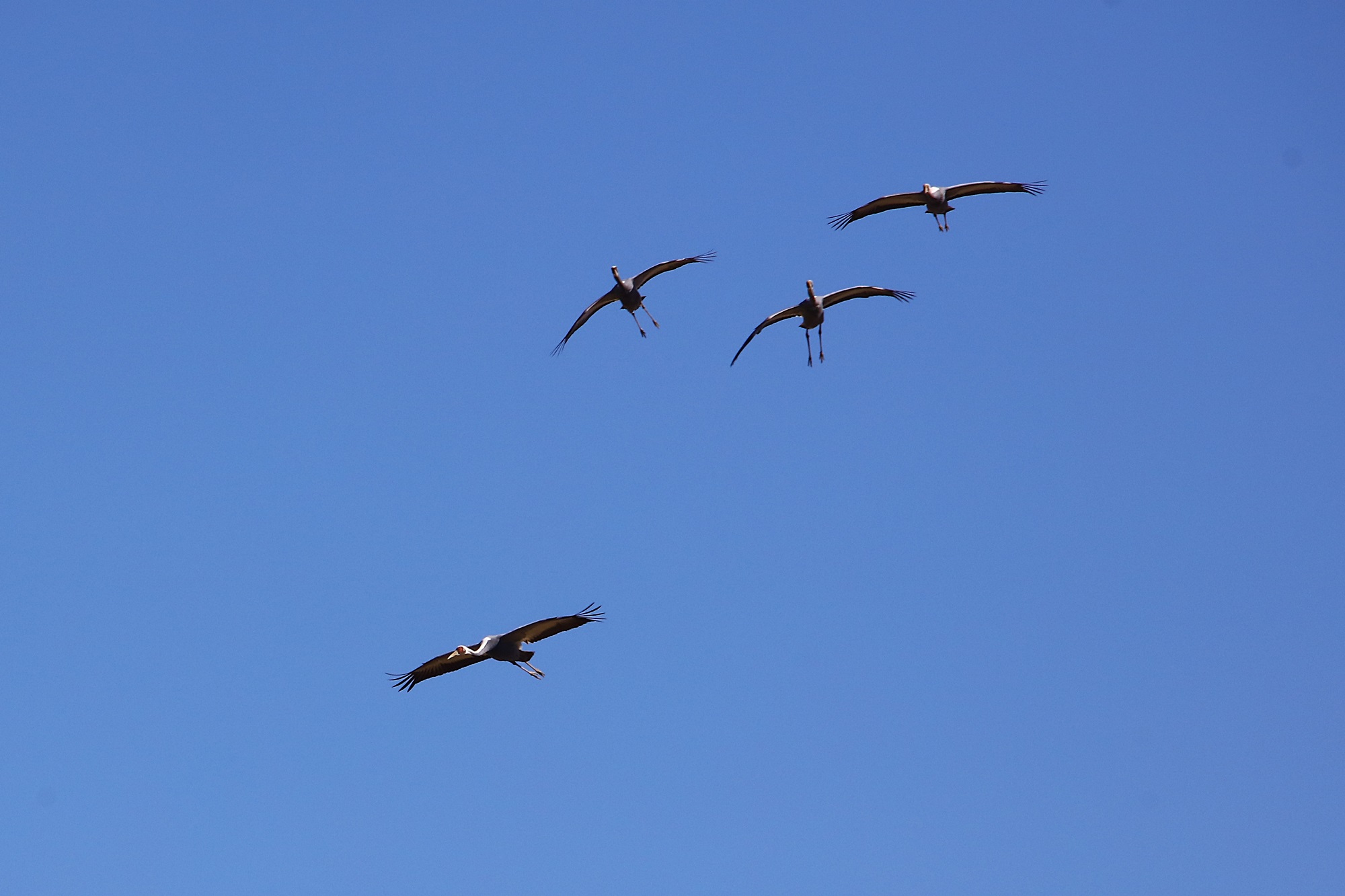 경남 창원시 주남들판의 하늘에 재두루미가 날고 있습니다.