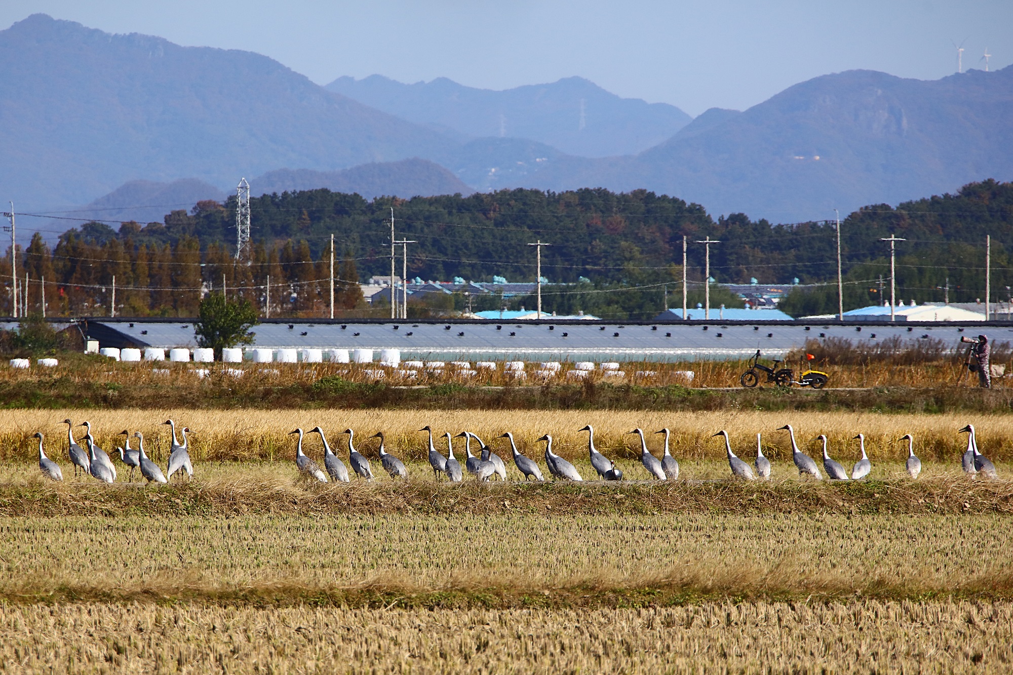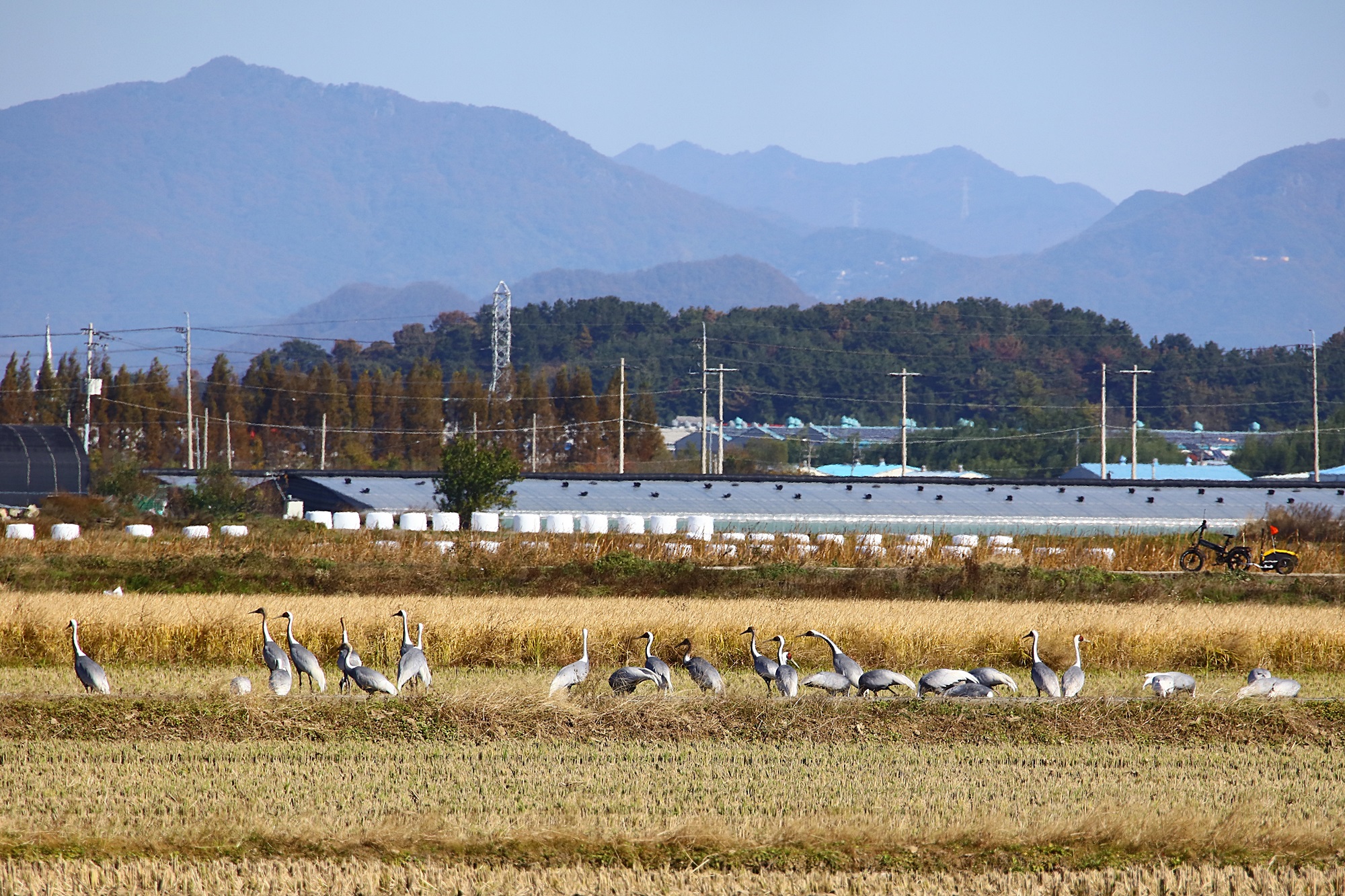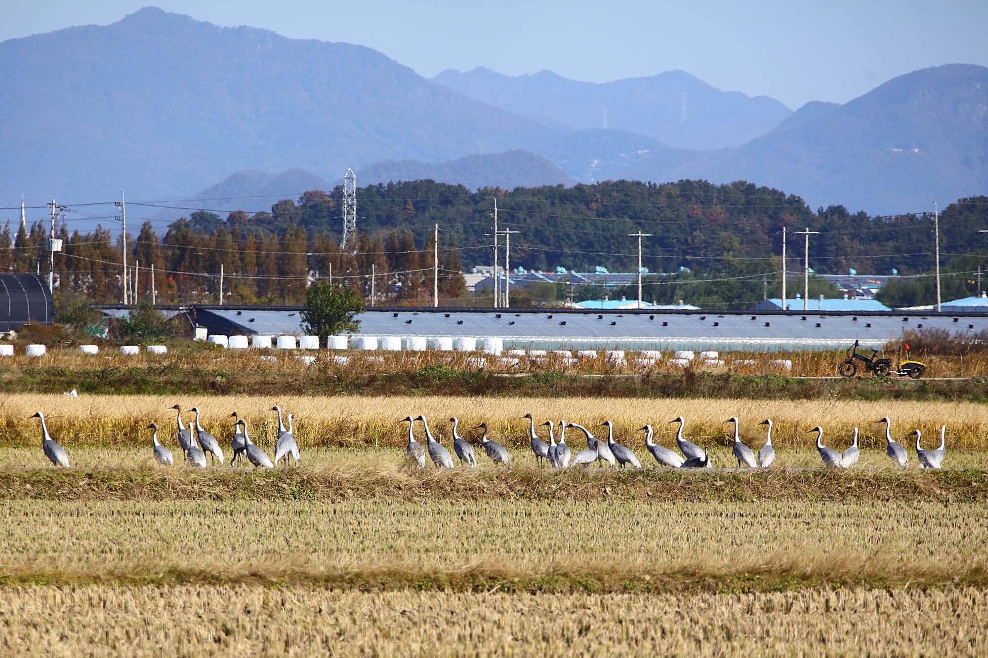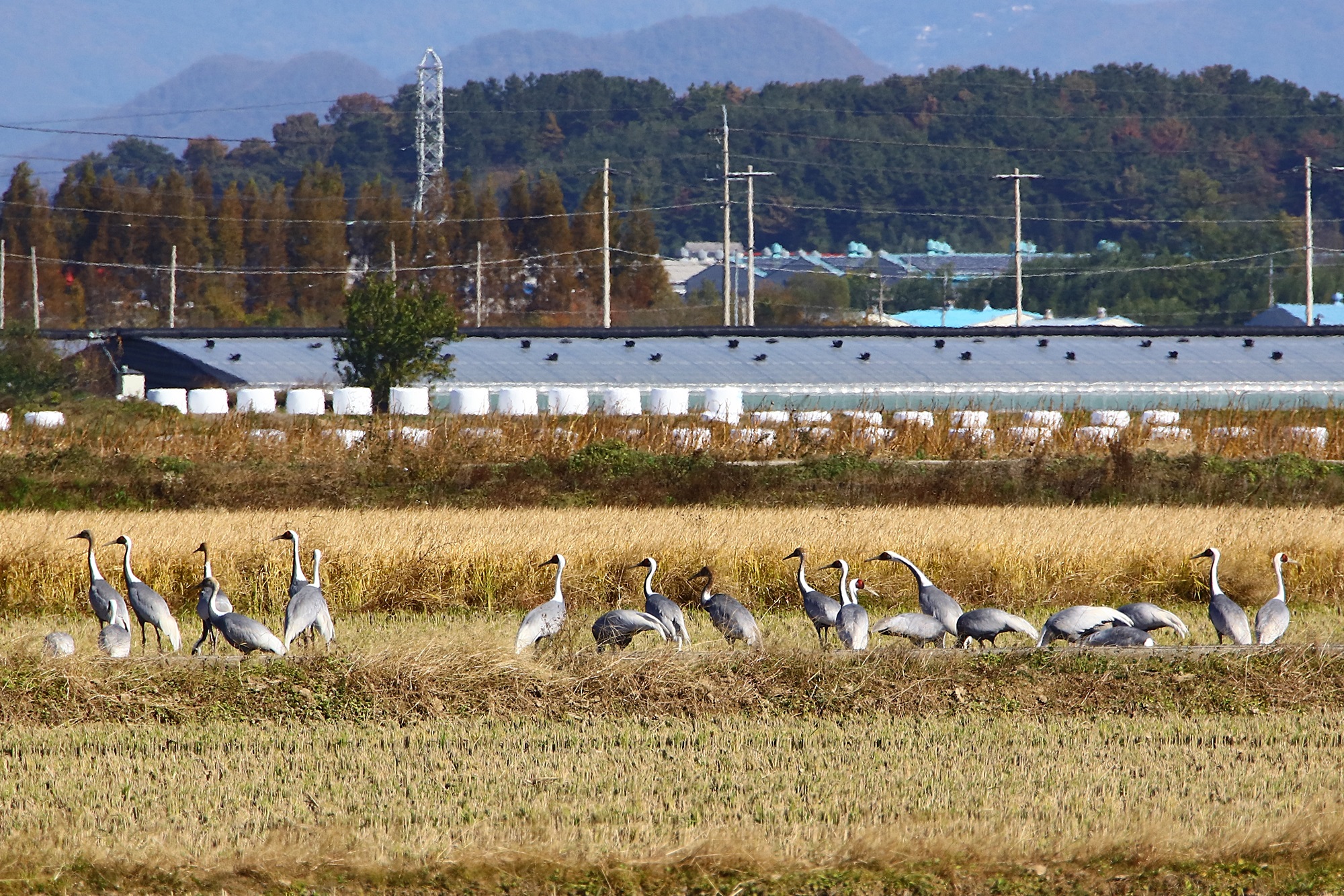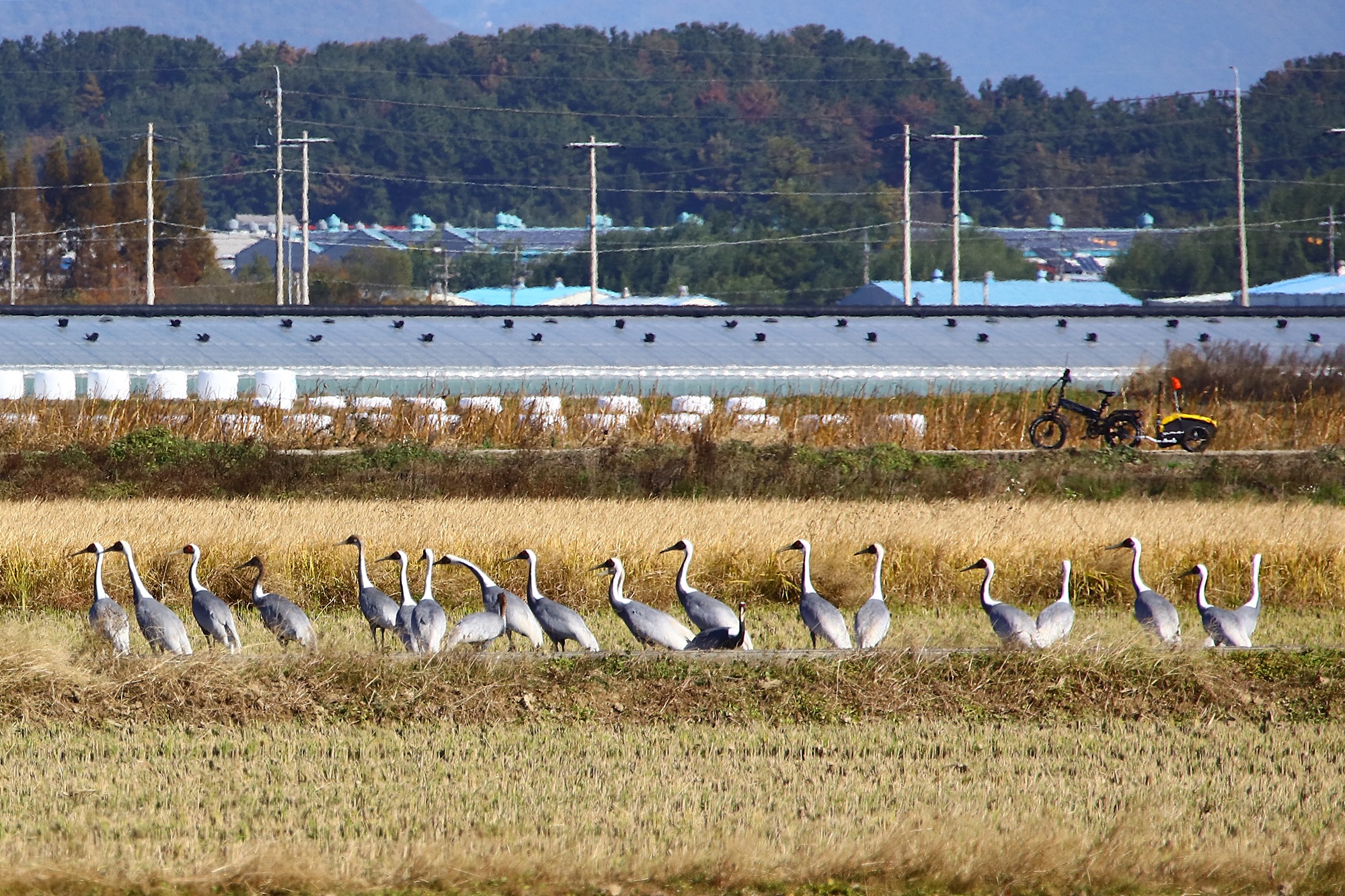 경남 창원시 주남들판에 재두루미가 놀고 있습니다.