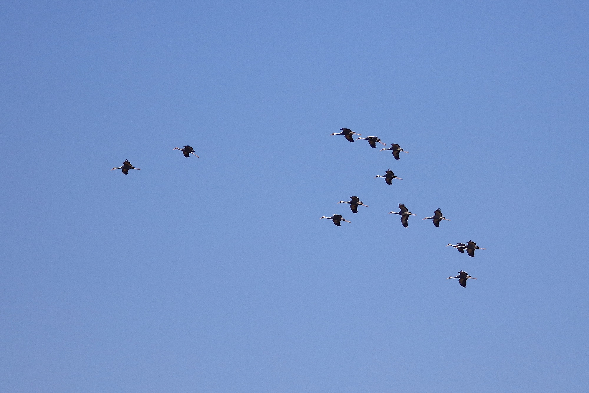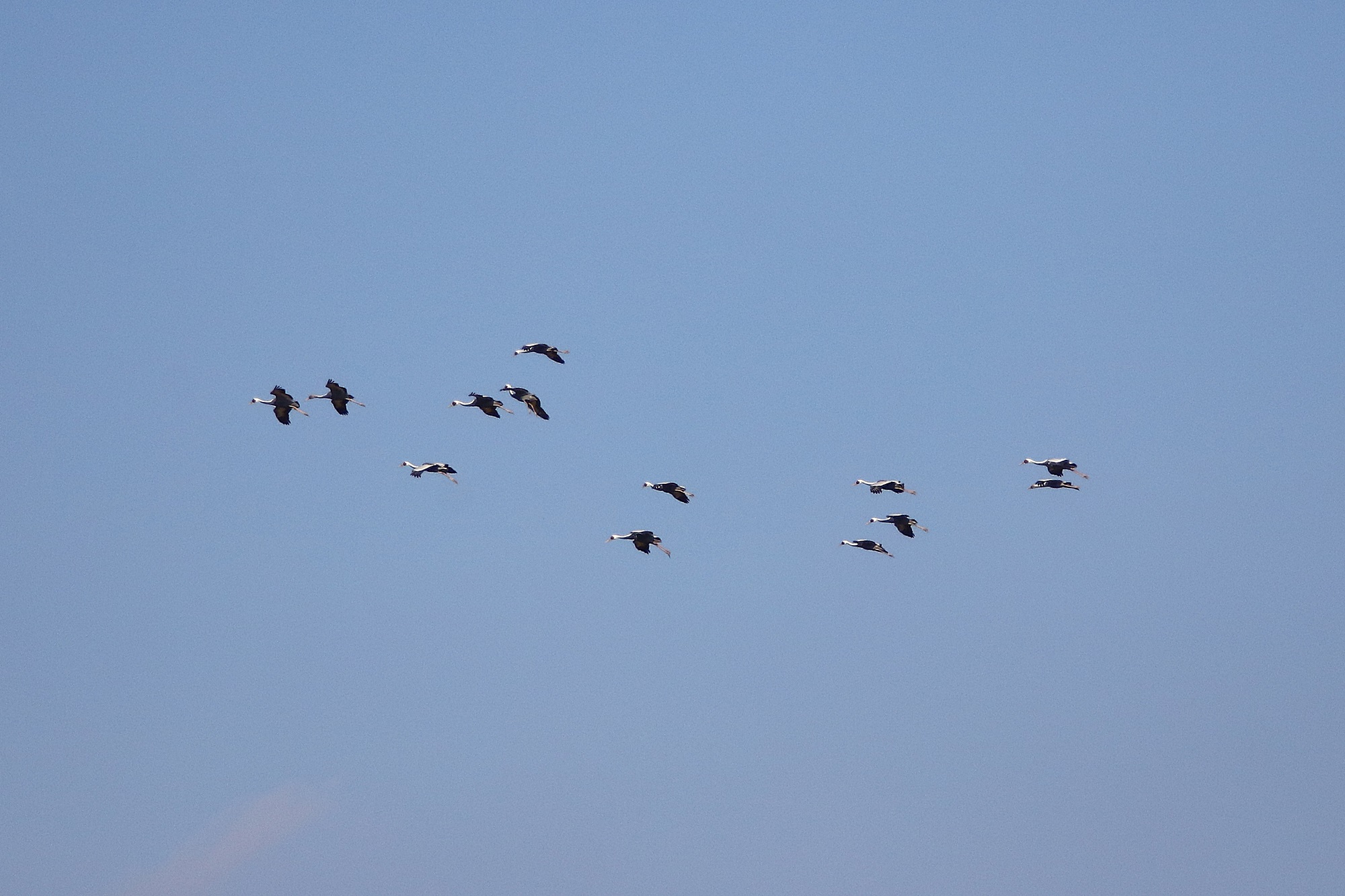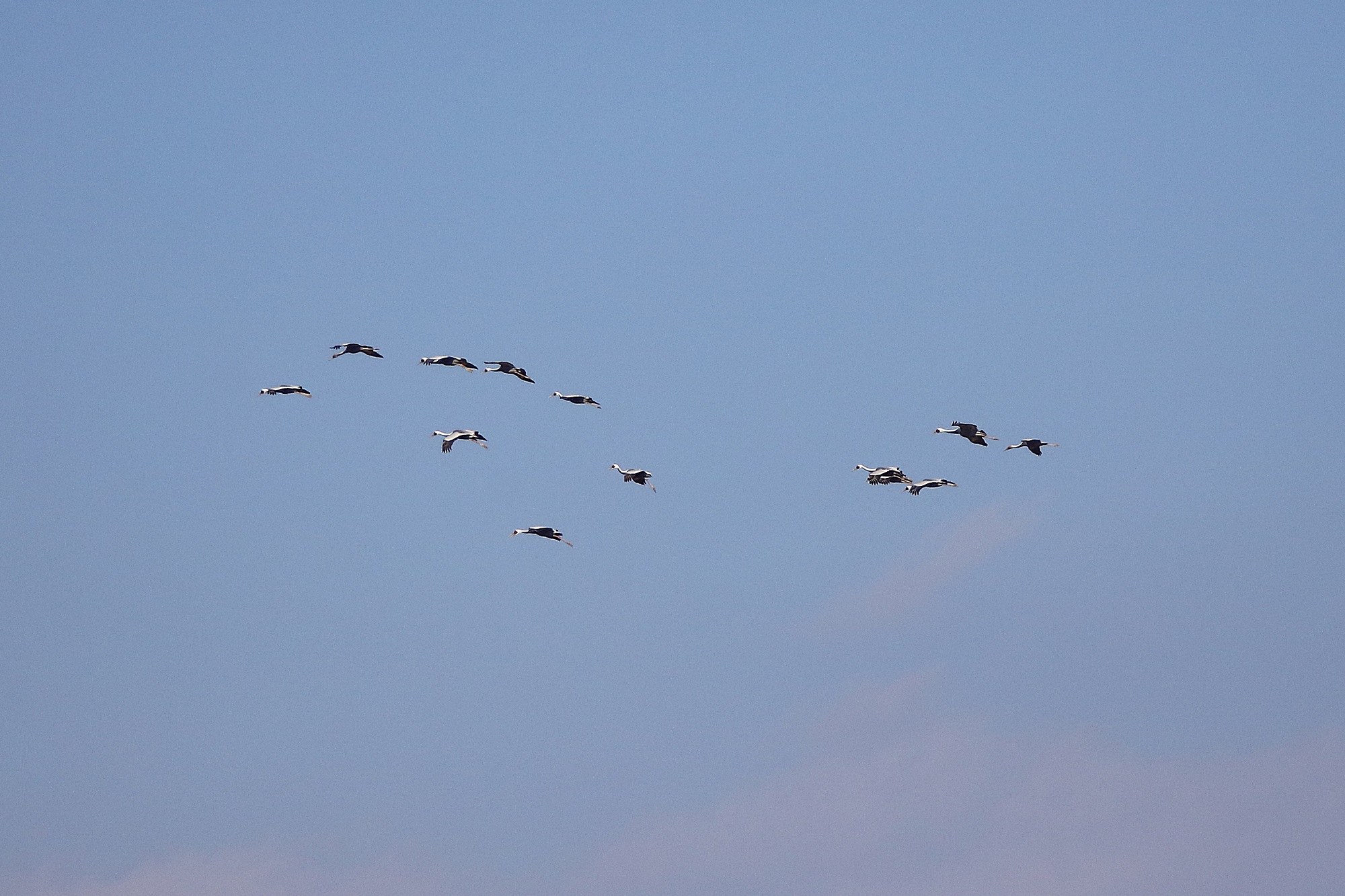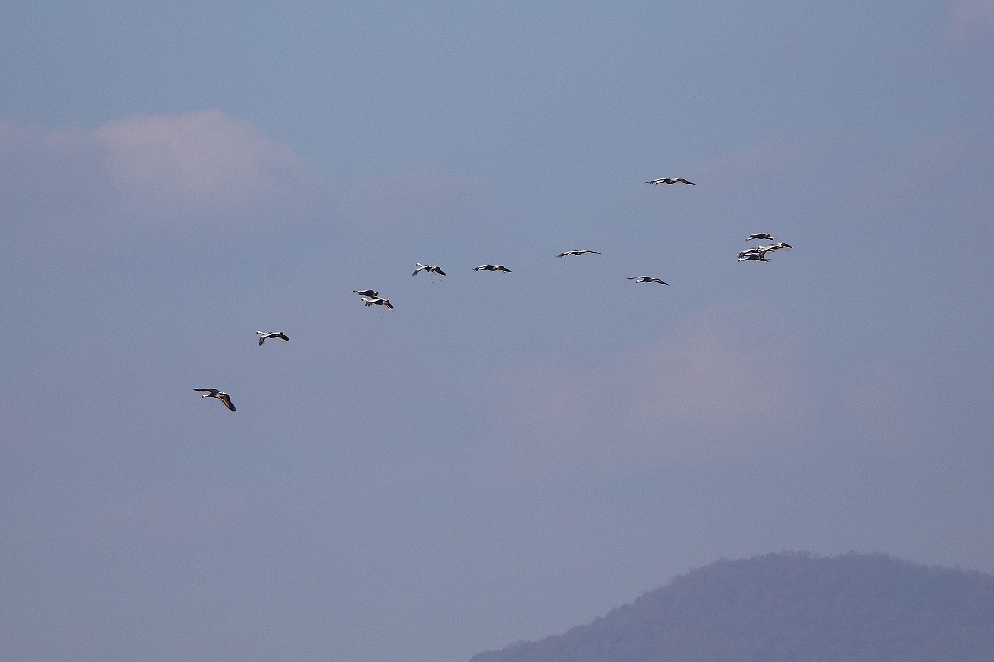 창원시 주남지 하늘에 재두루미 무리가 날고 있습니다.