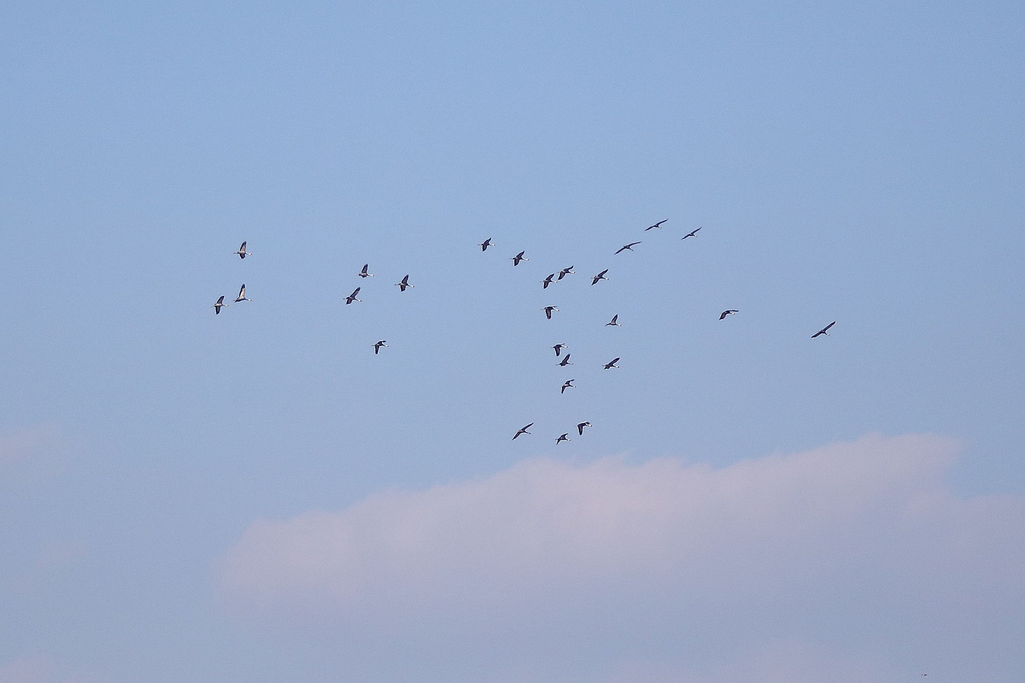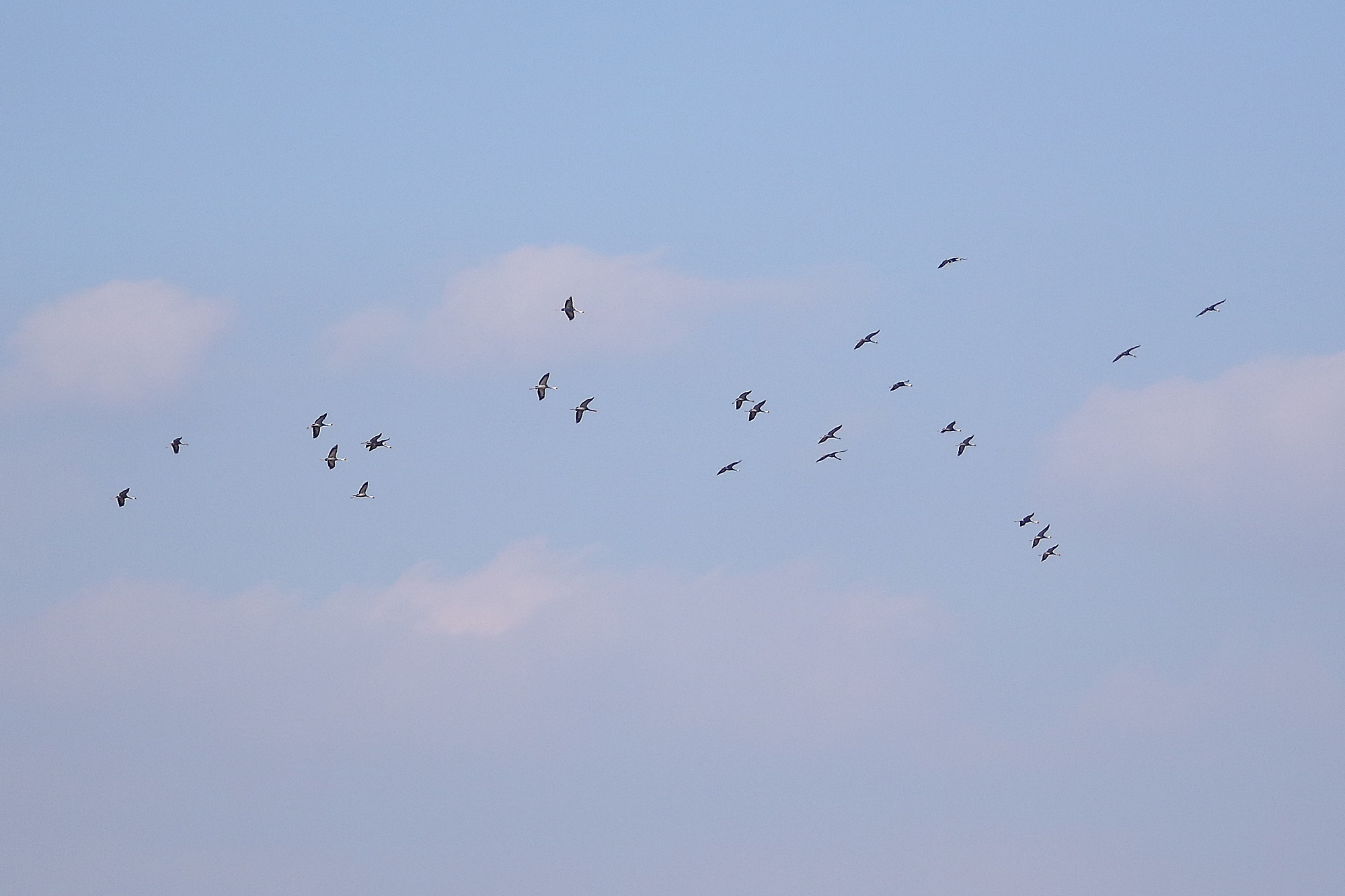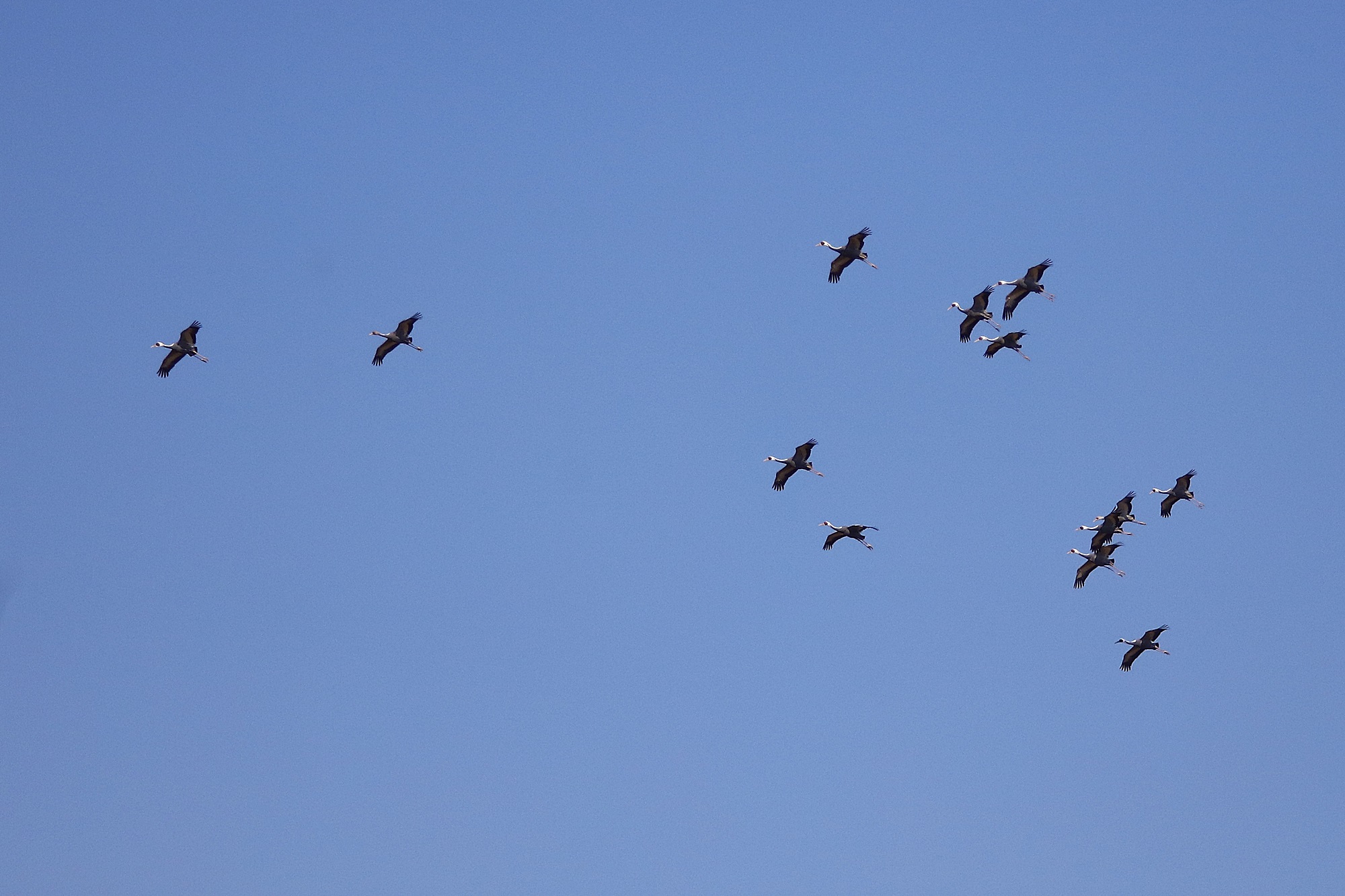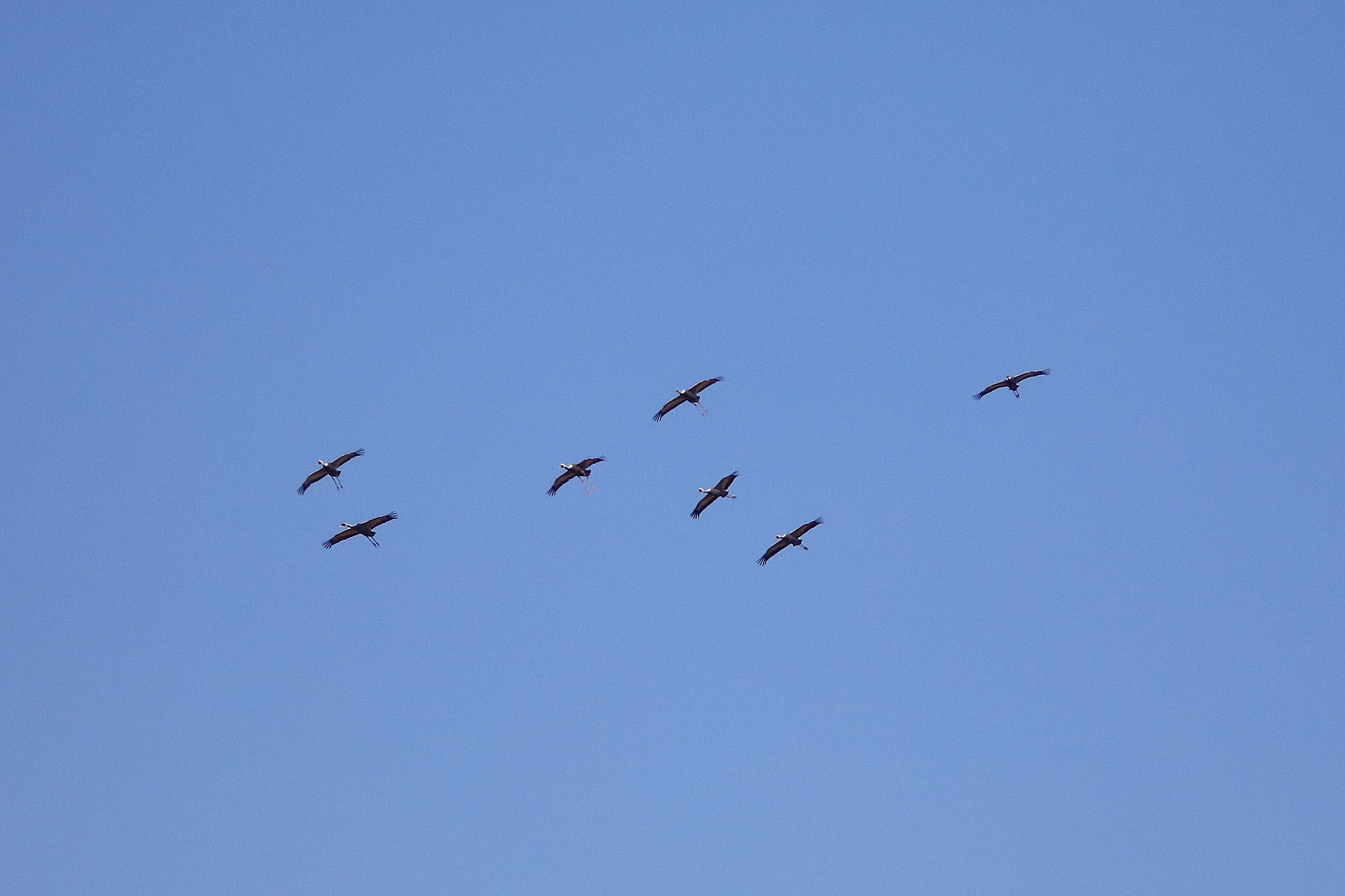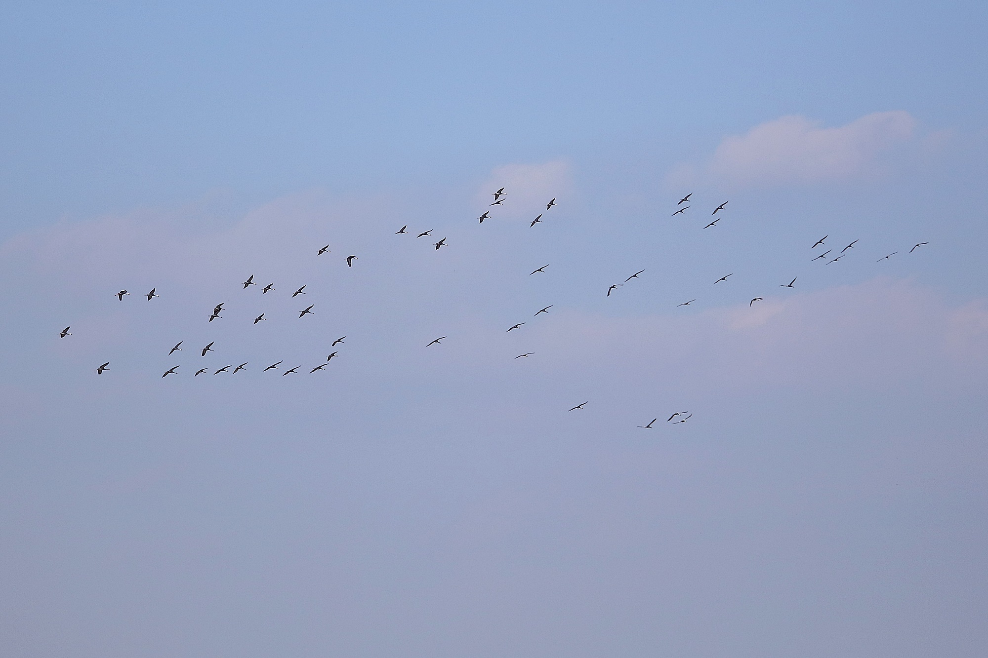 창원시 주남지 하늘에 재두루미 무리가 날고 있습니다.