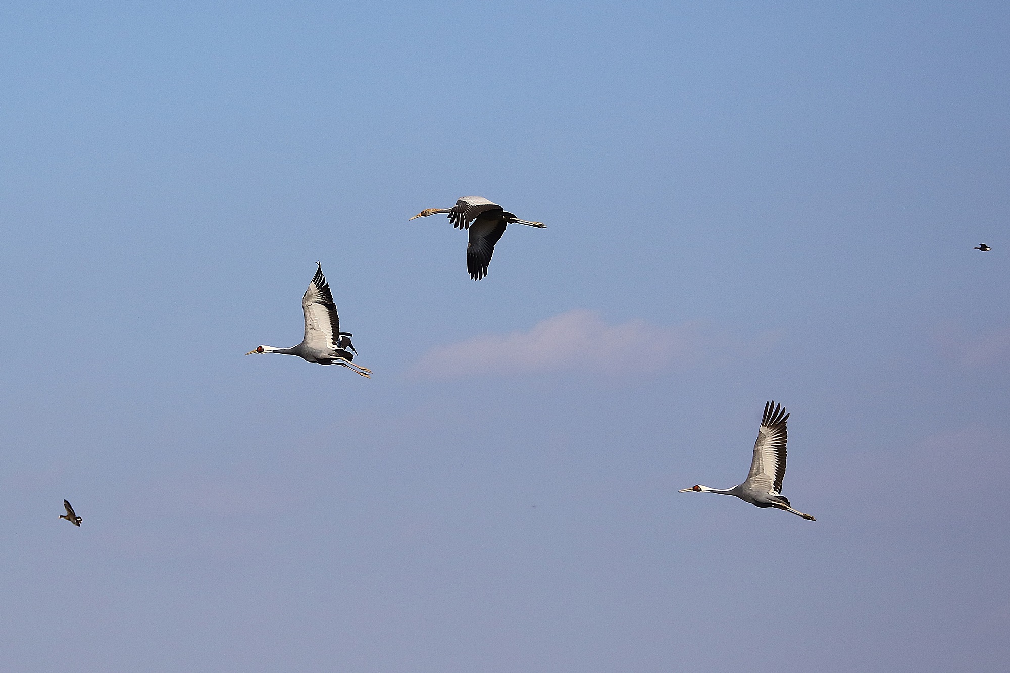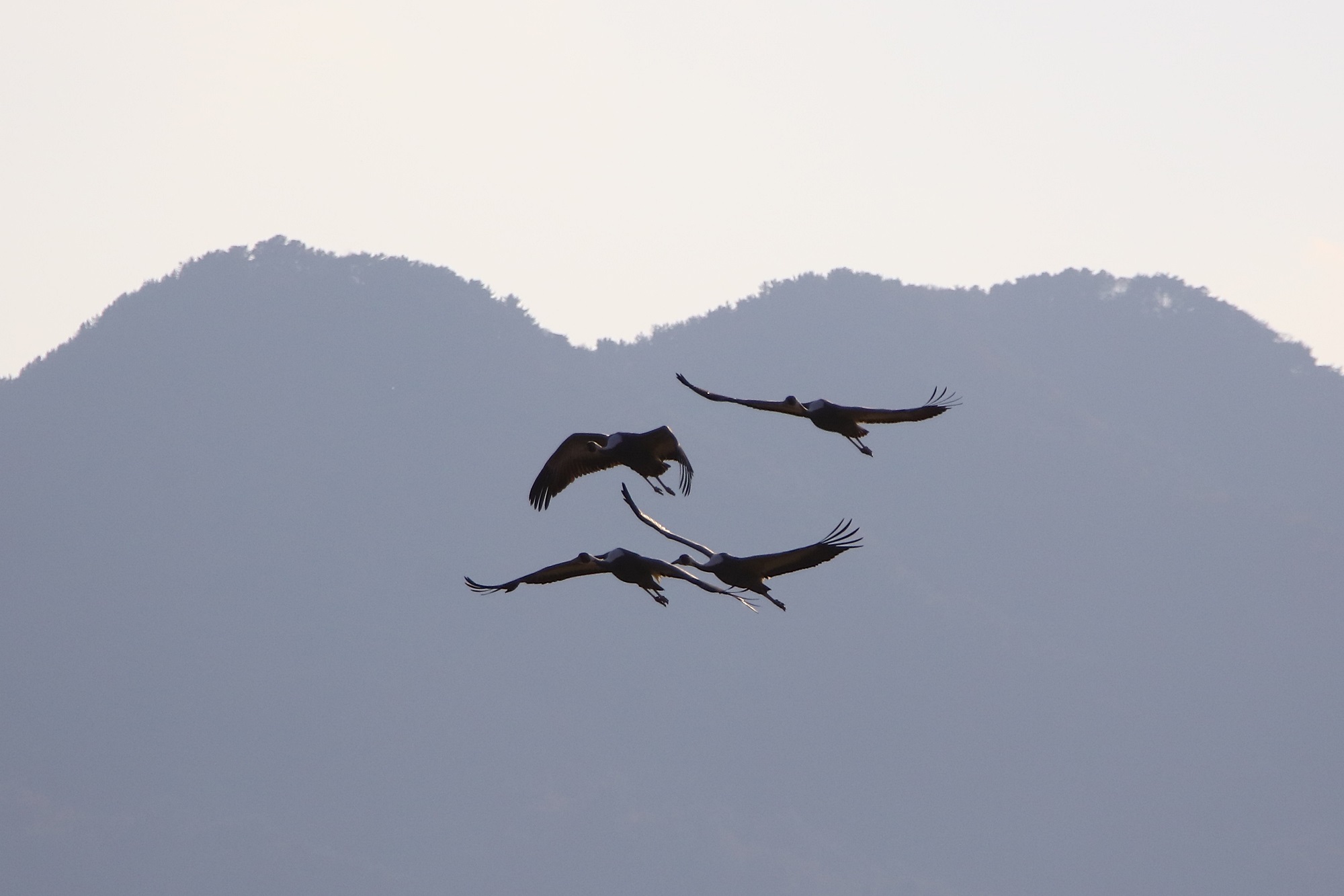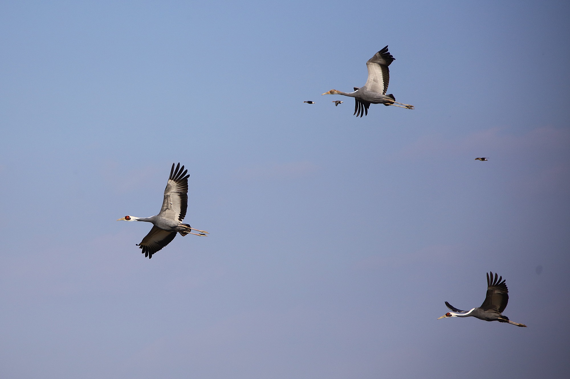 창원시 주남지 하늘에 재두루미가 날고 있습니다.