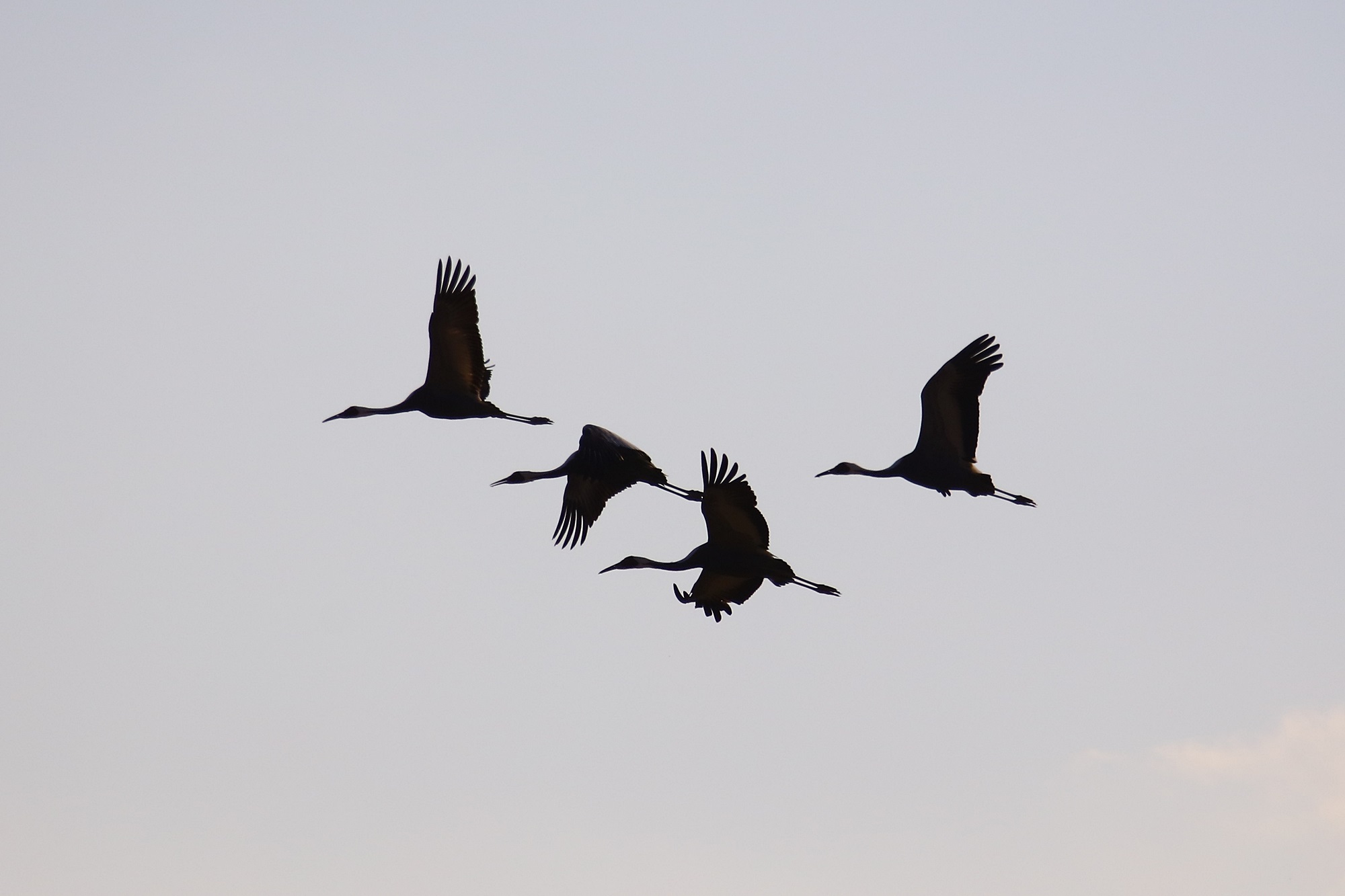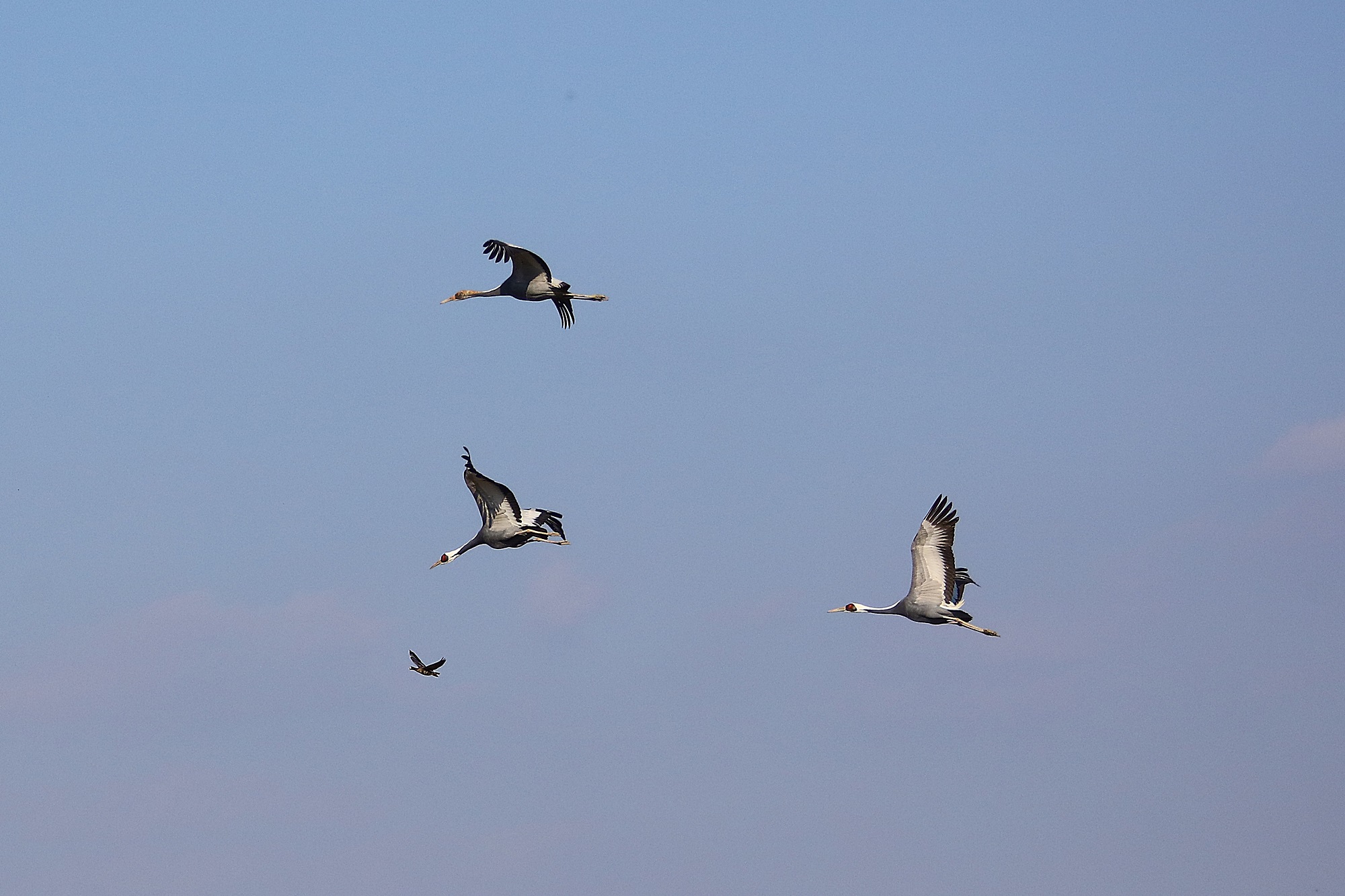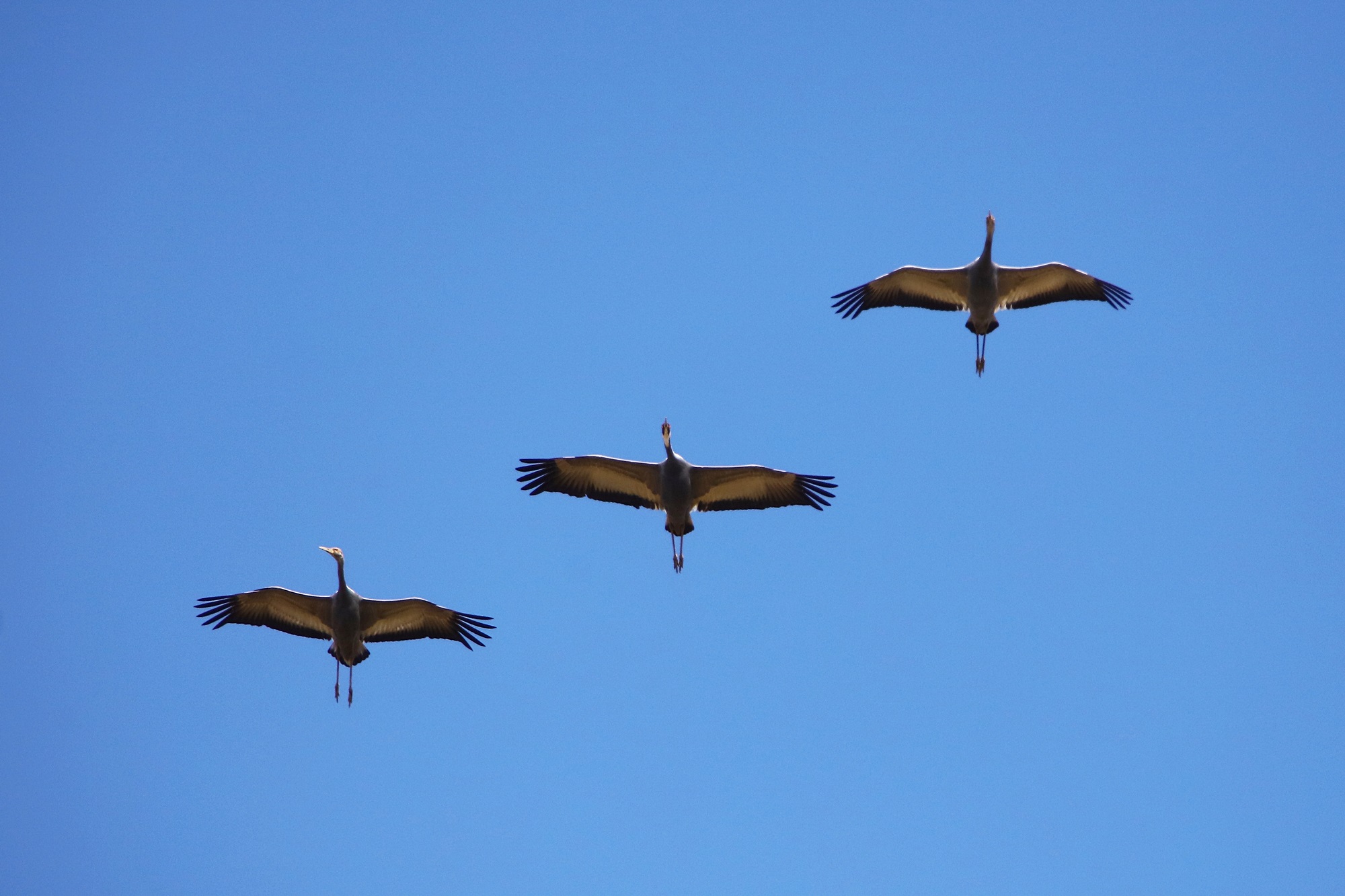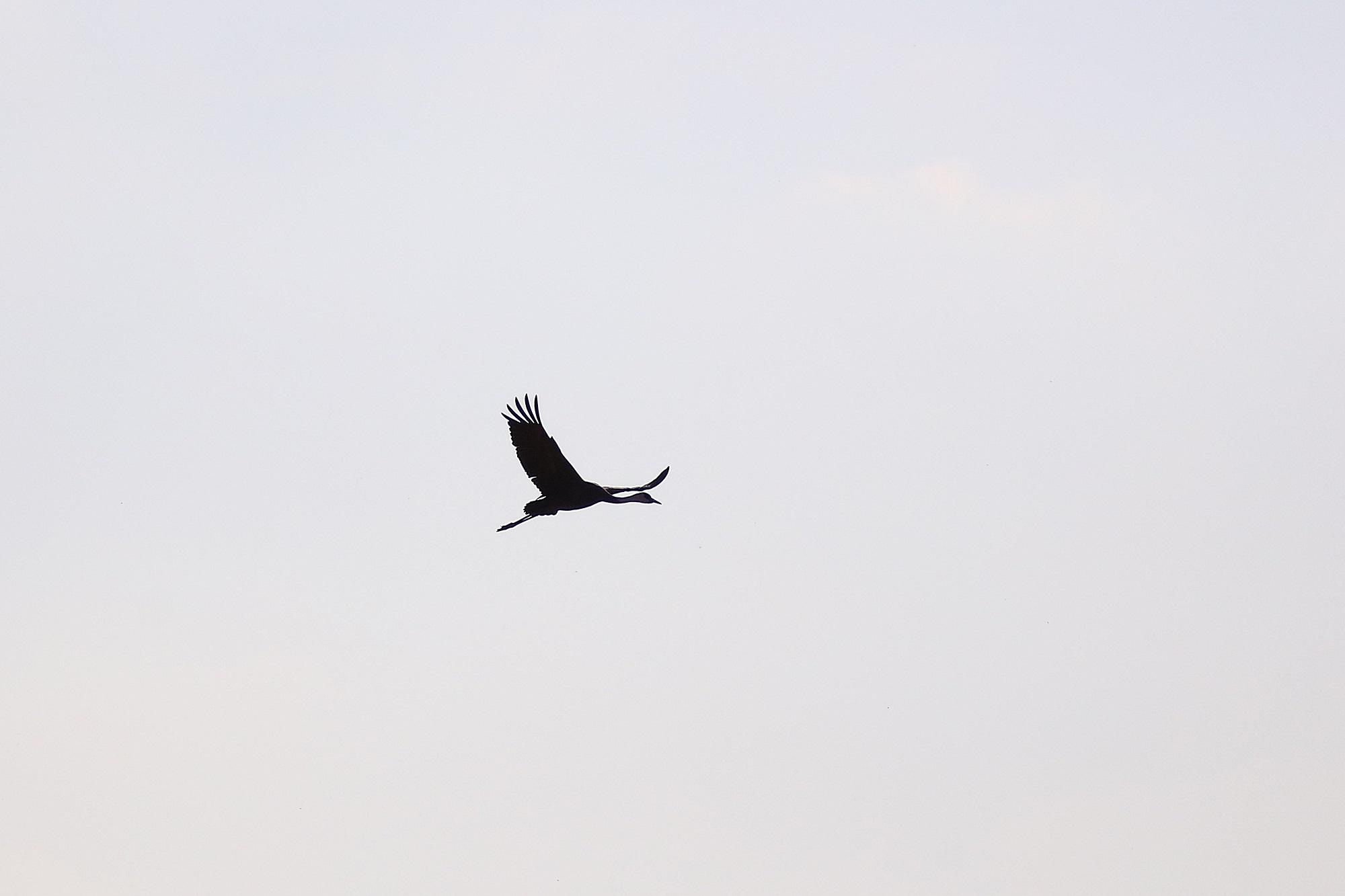창원시 주남지 하늘에 재두루미가 날고 있습니다.