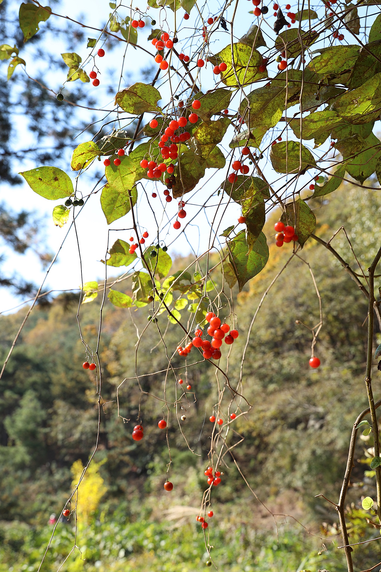 경남 산청군의 높은 산에서 본 배풍등 열매입니다.