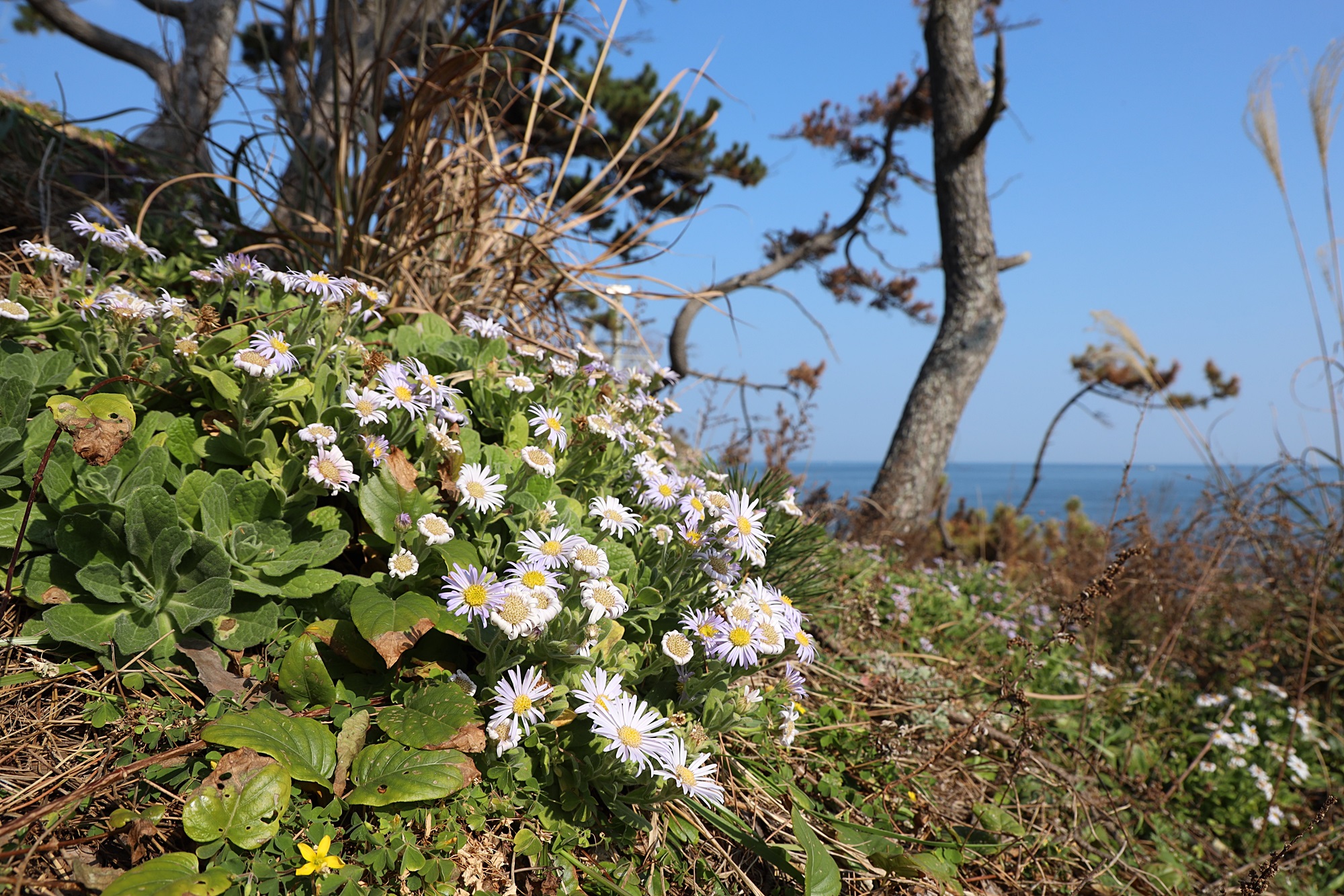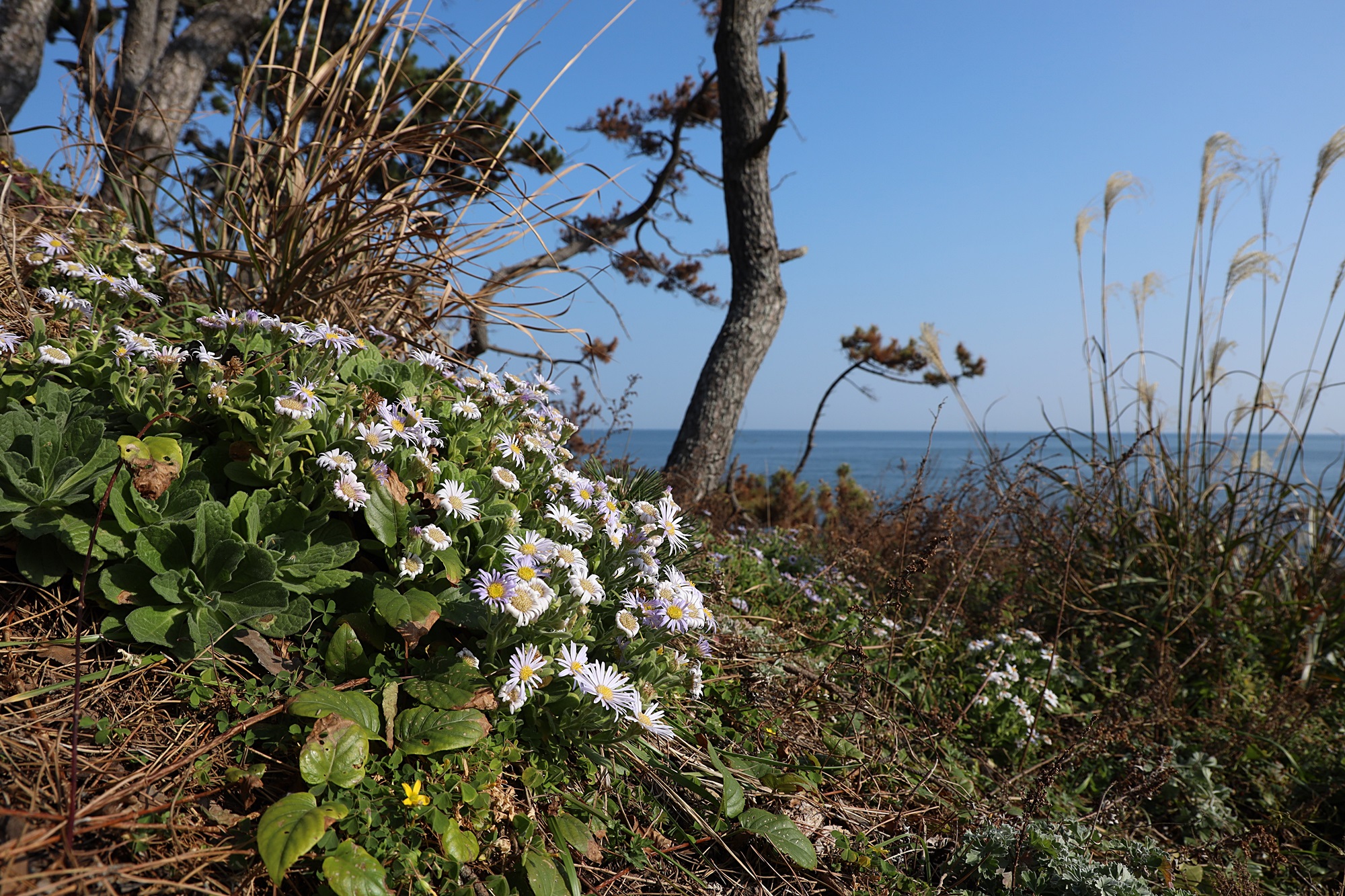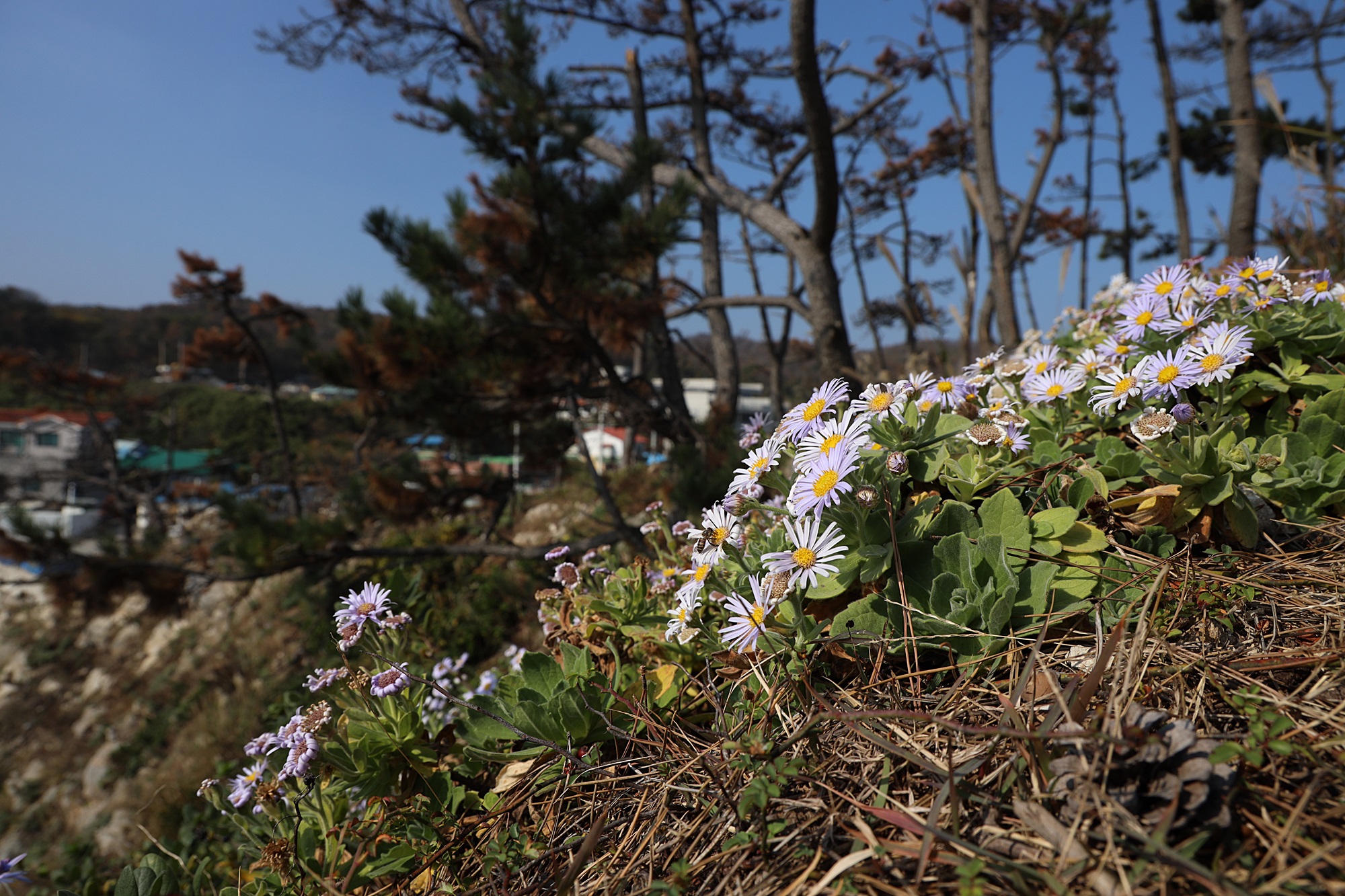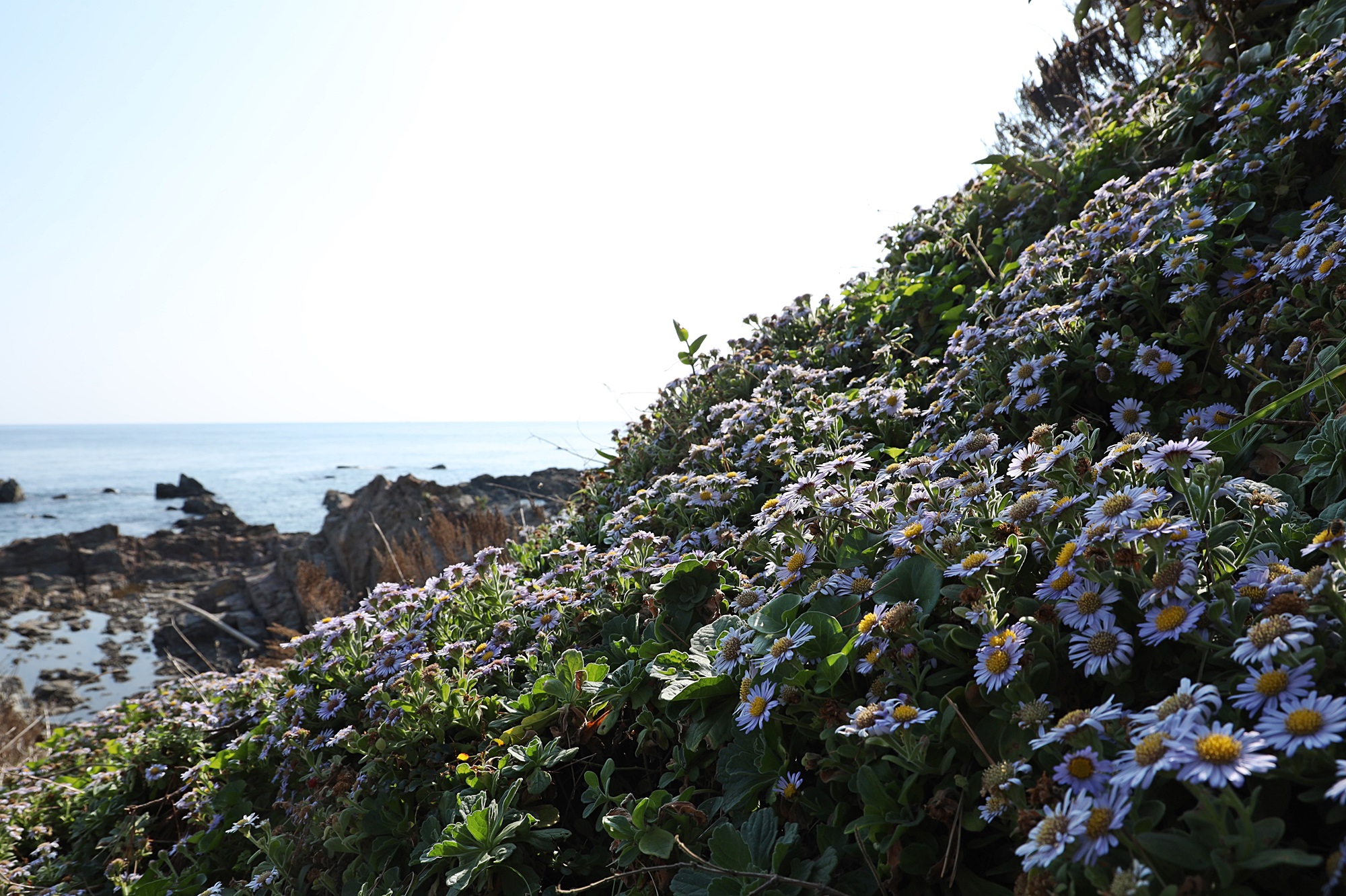 경북 동해안 바닷가에서 본 해국입니다.