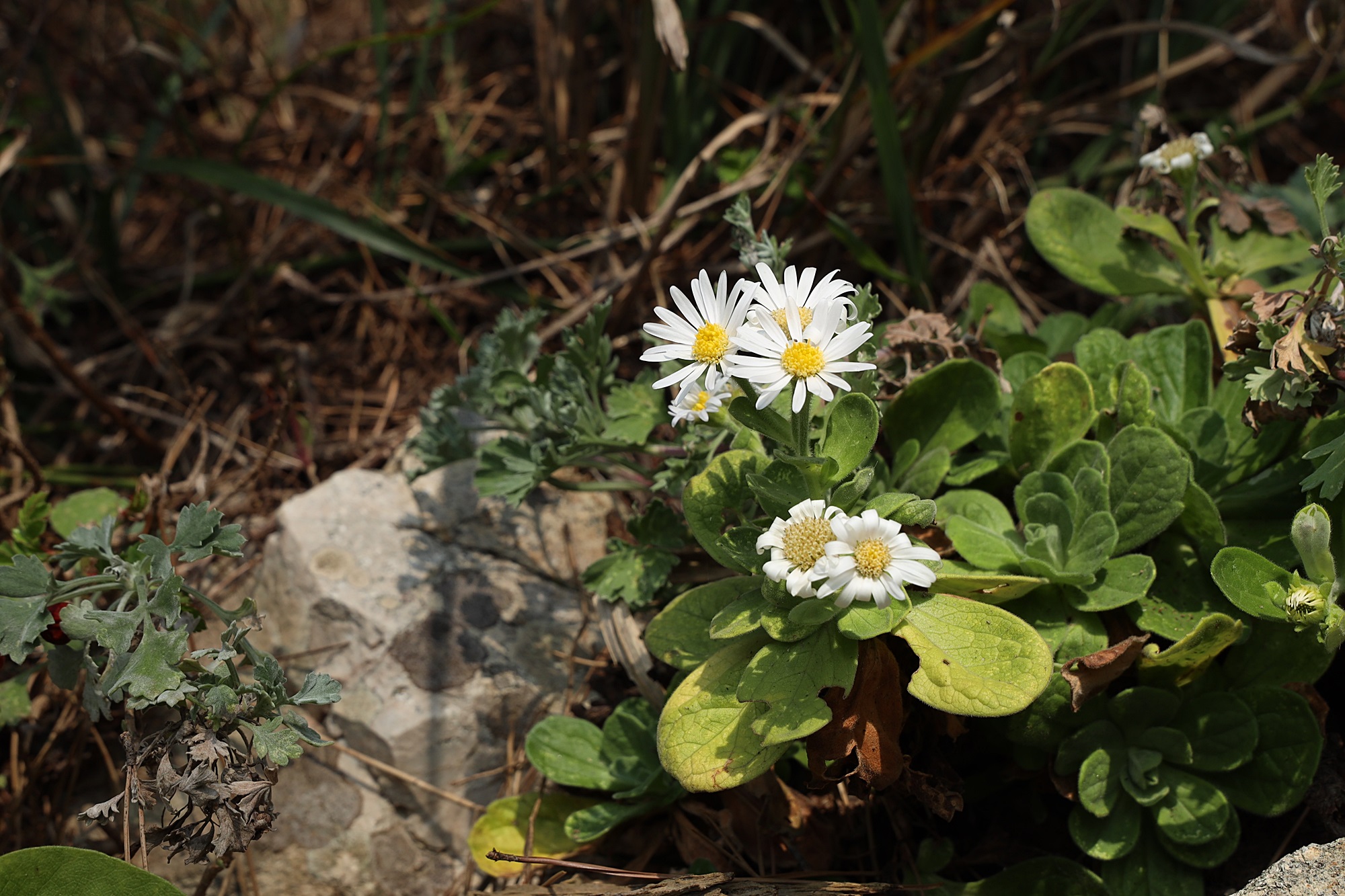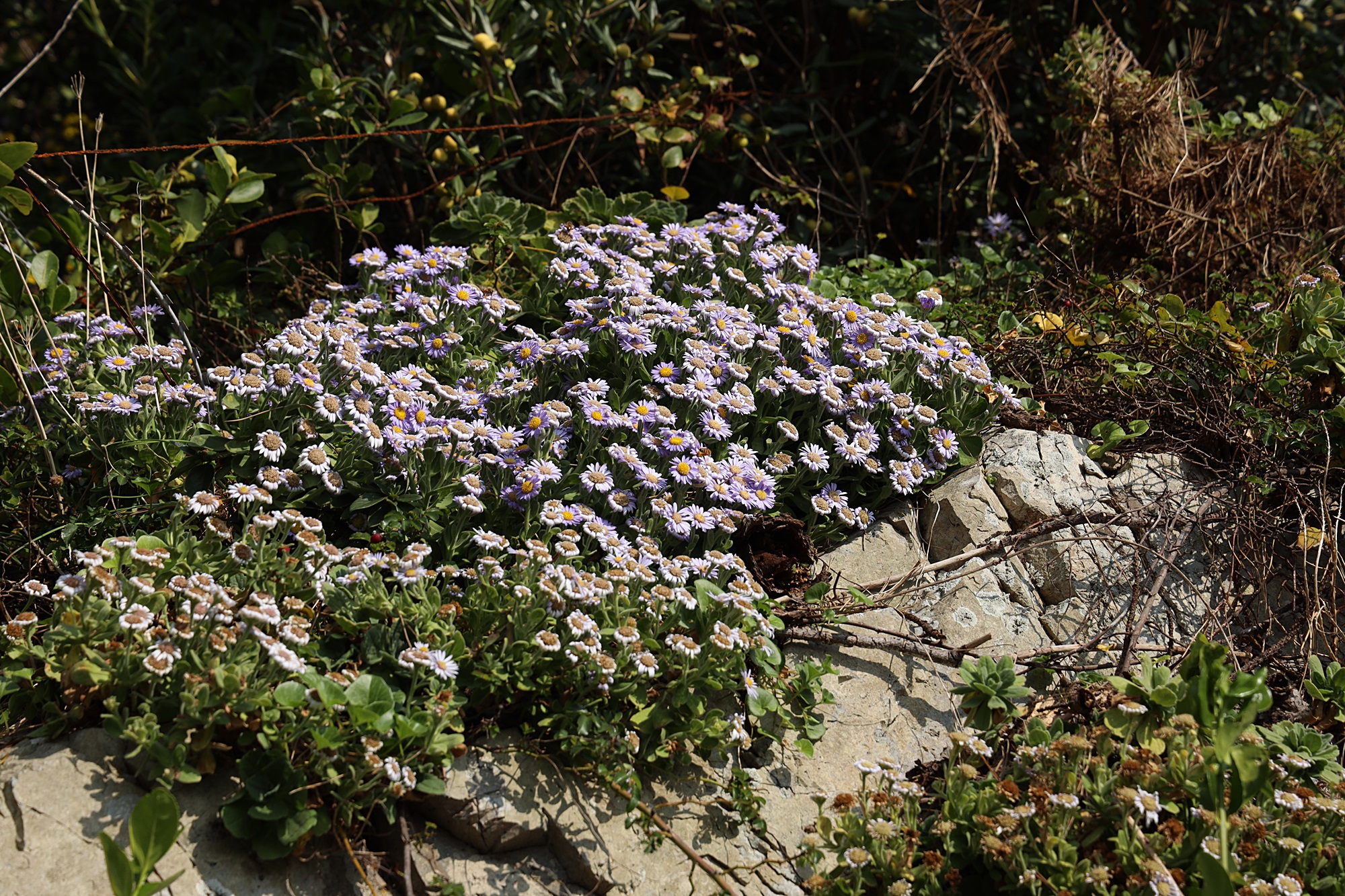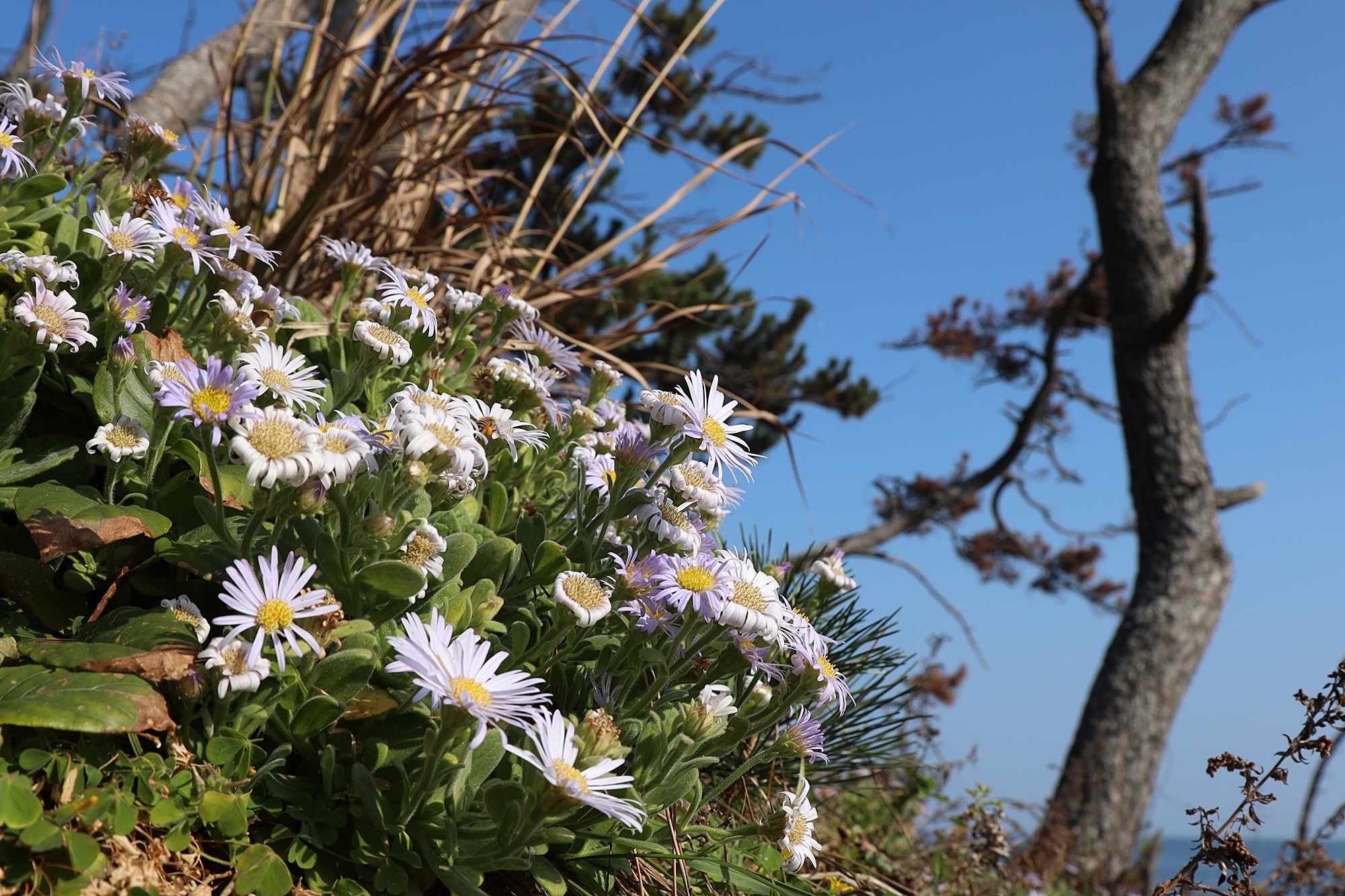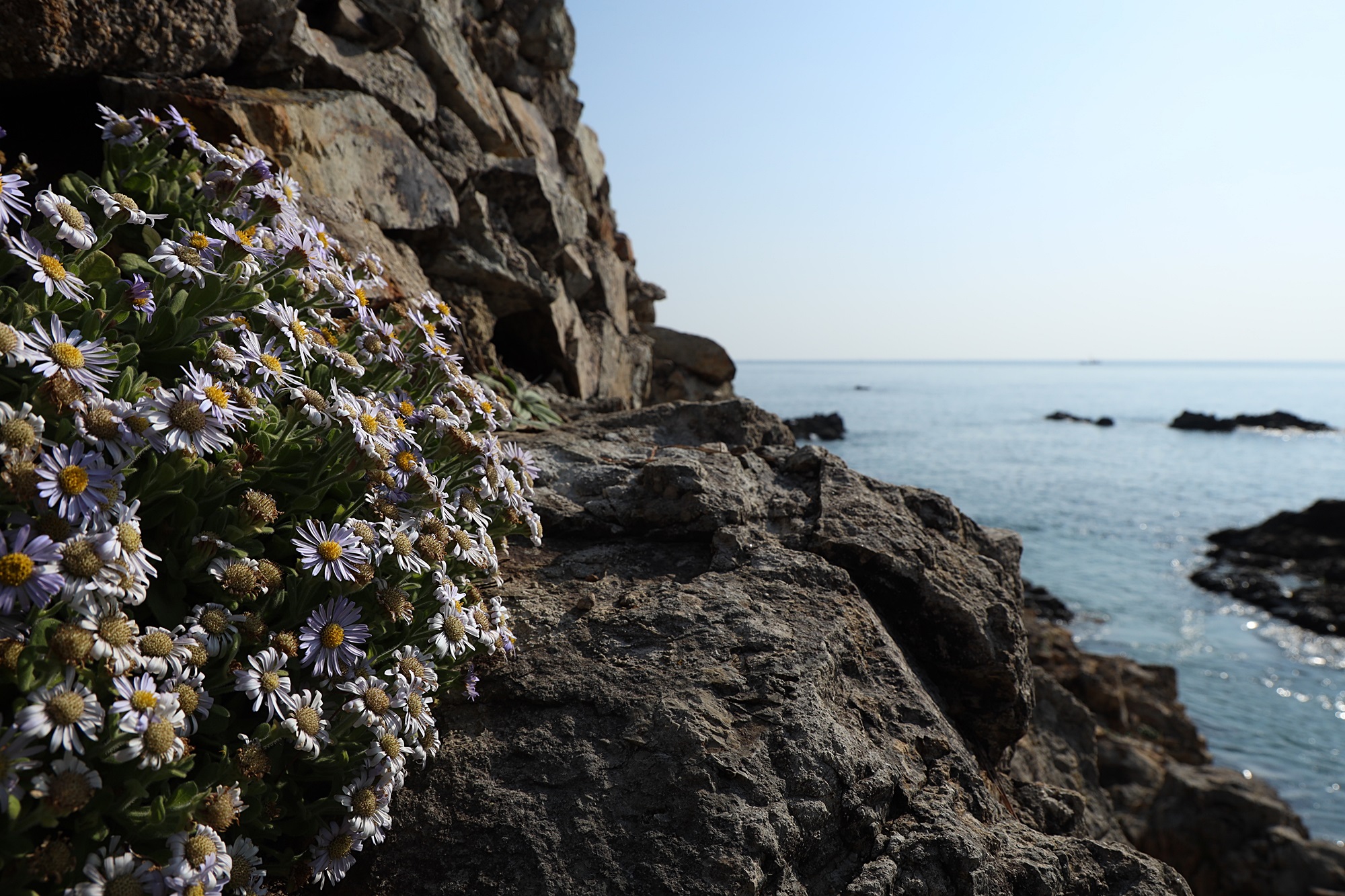 경북 동해안 바닷가에서 본 해국입니다.