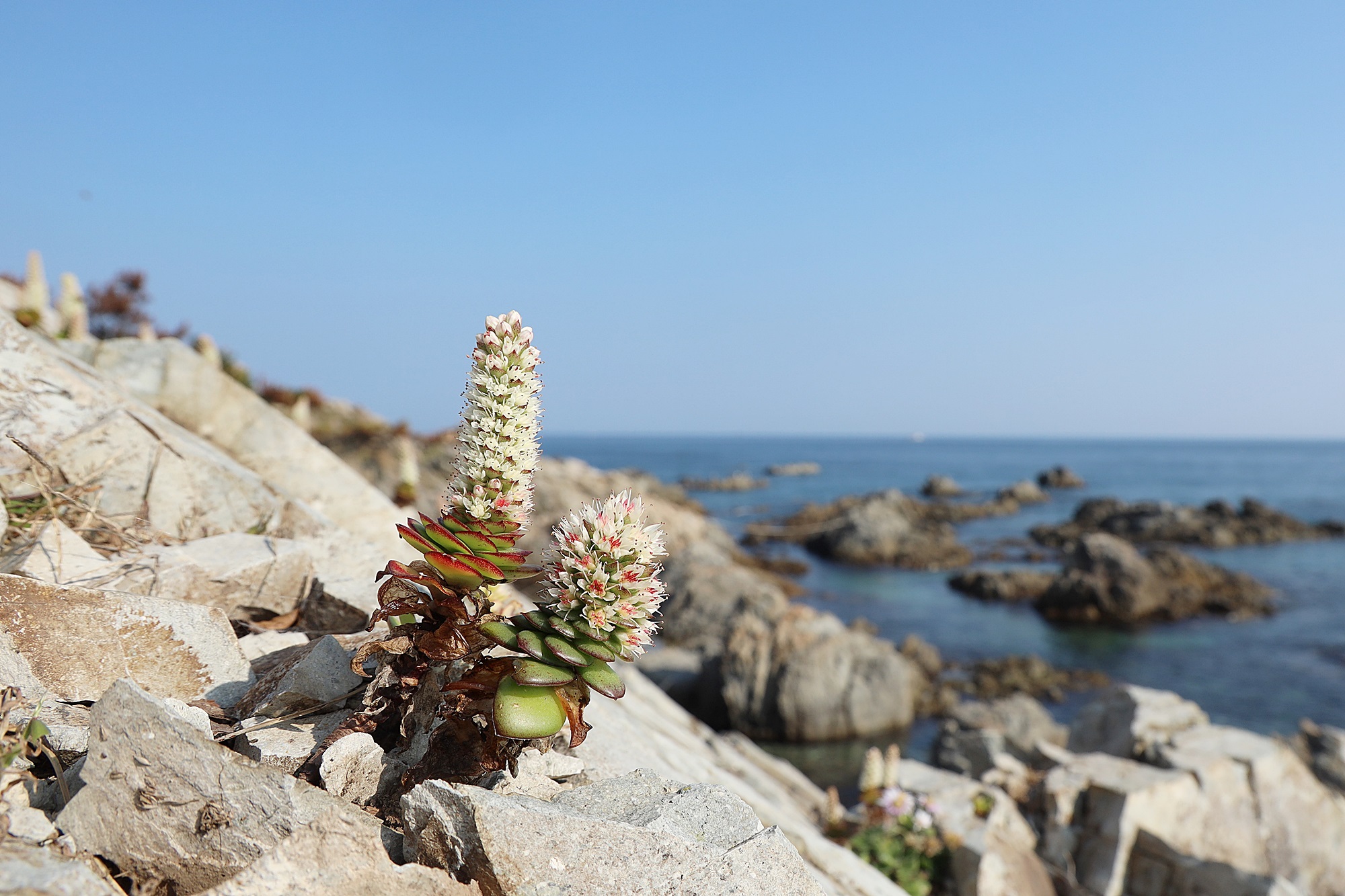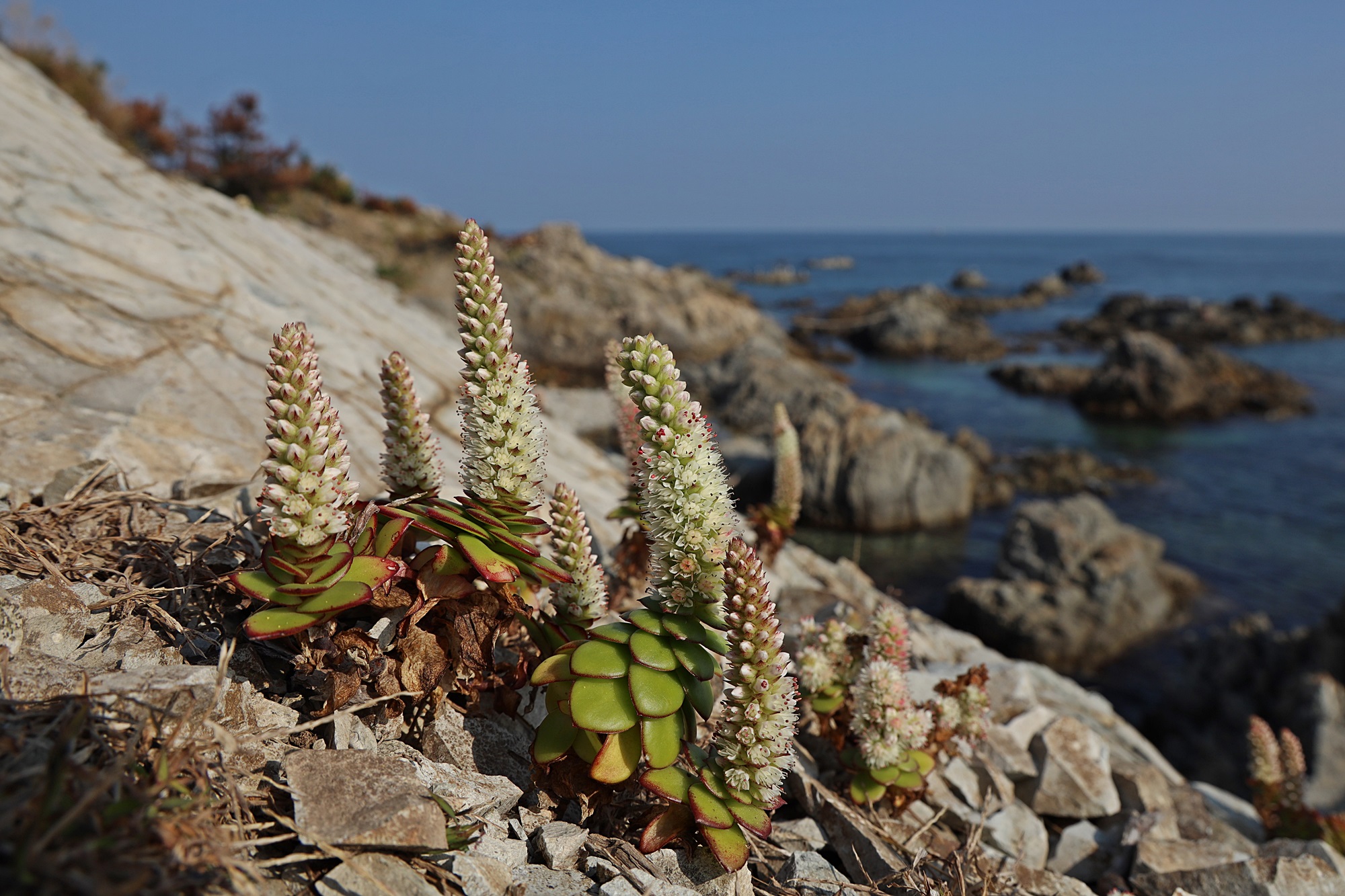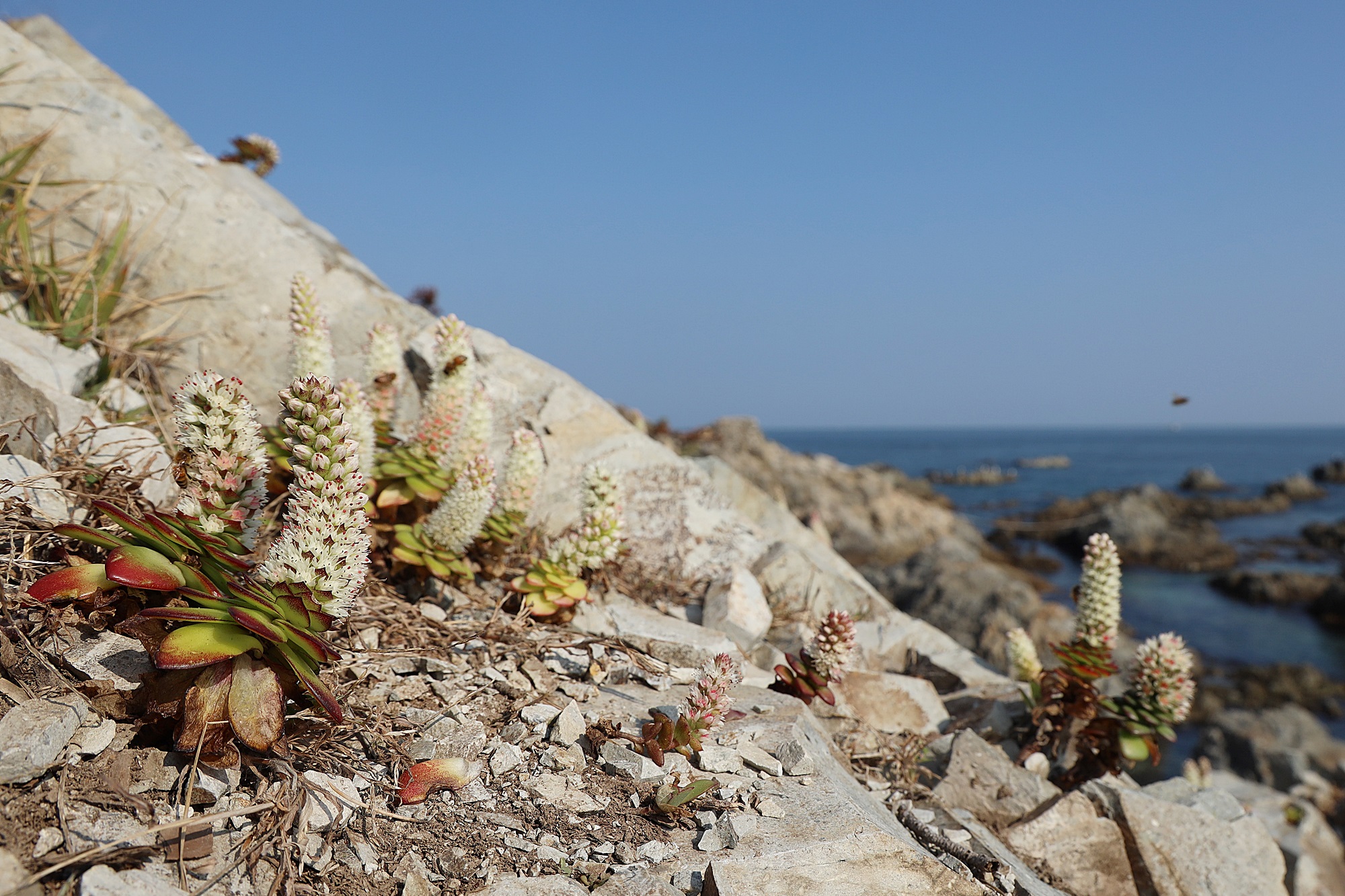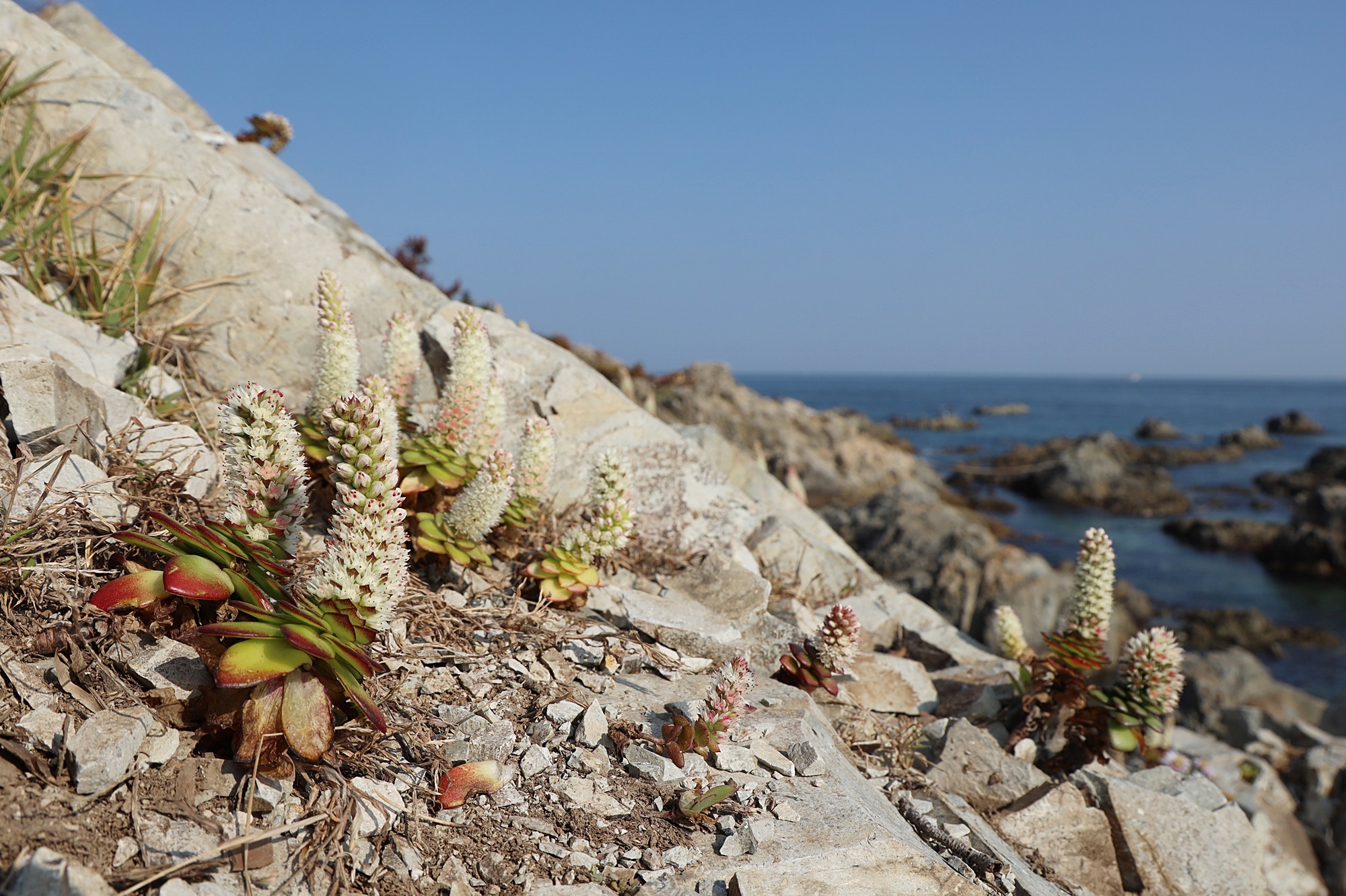 경북 동해안 바닷가에서 본 둥근바위솔입니다.