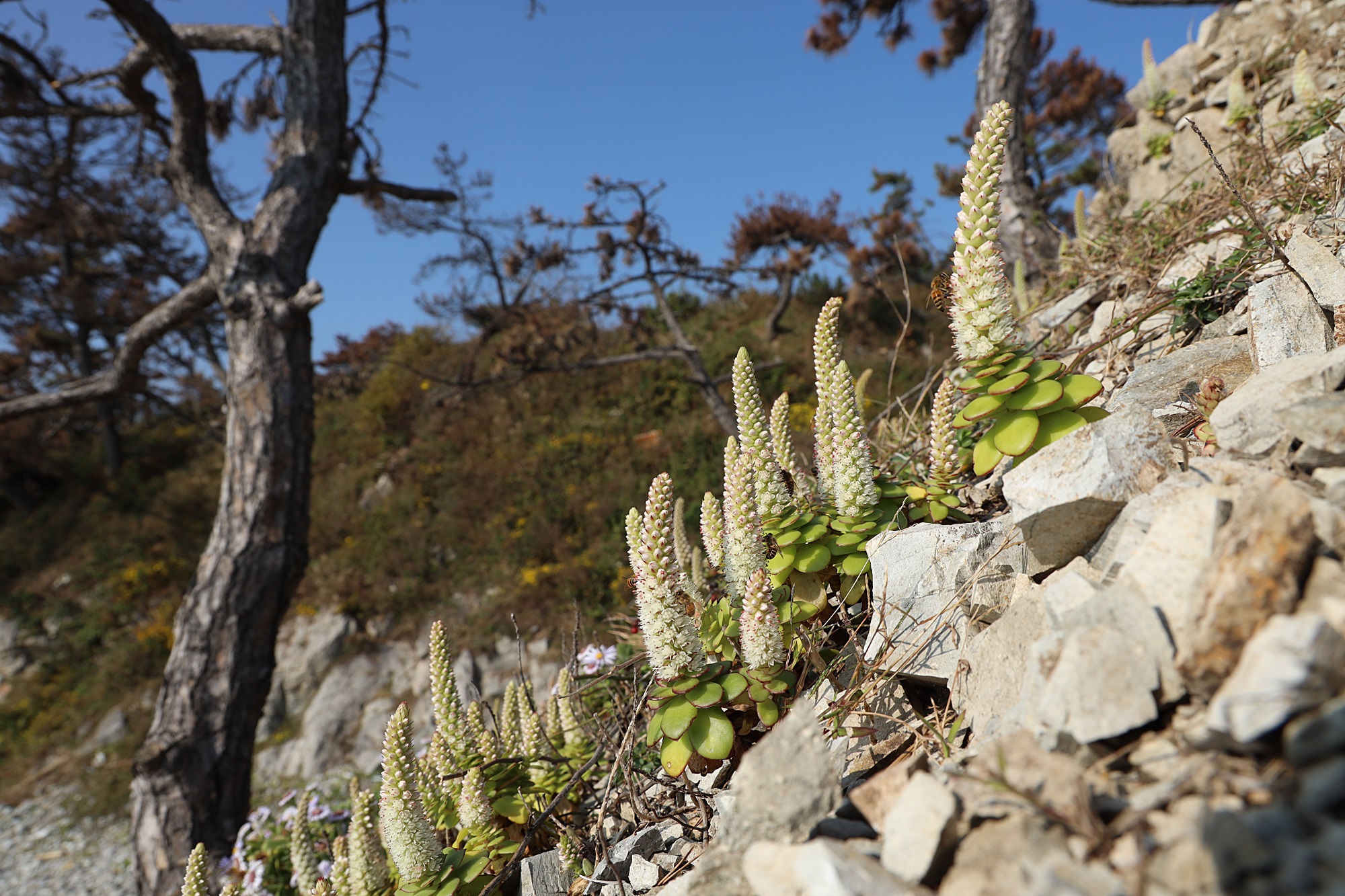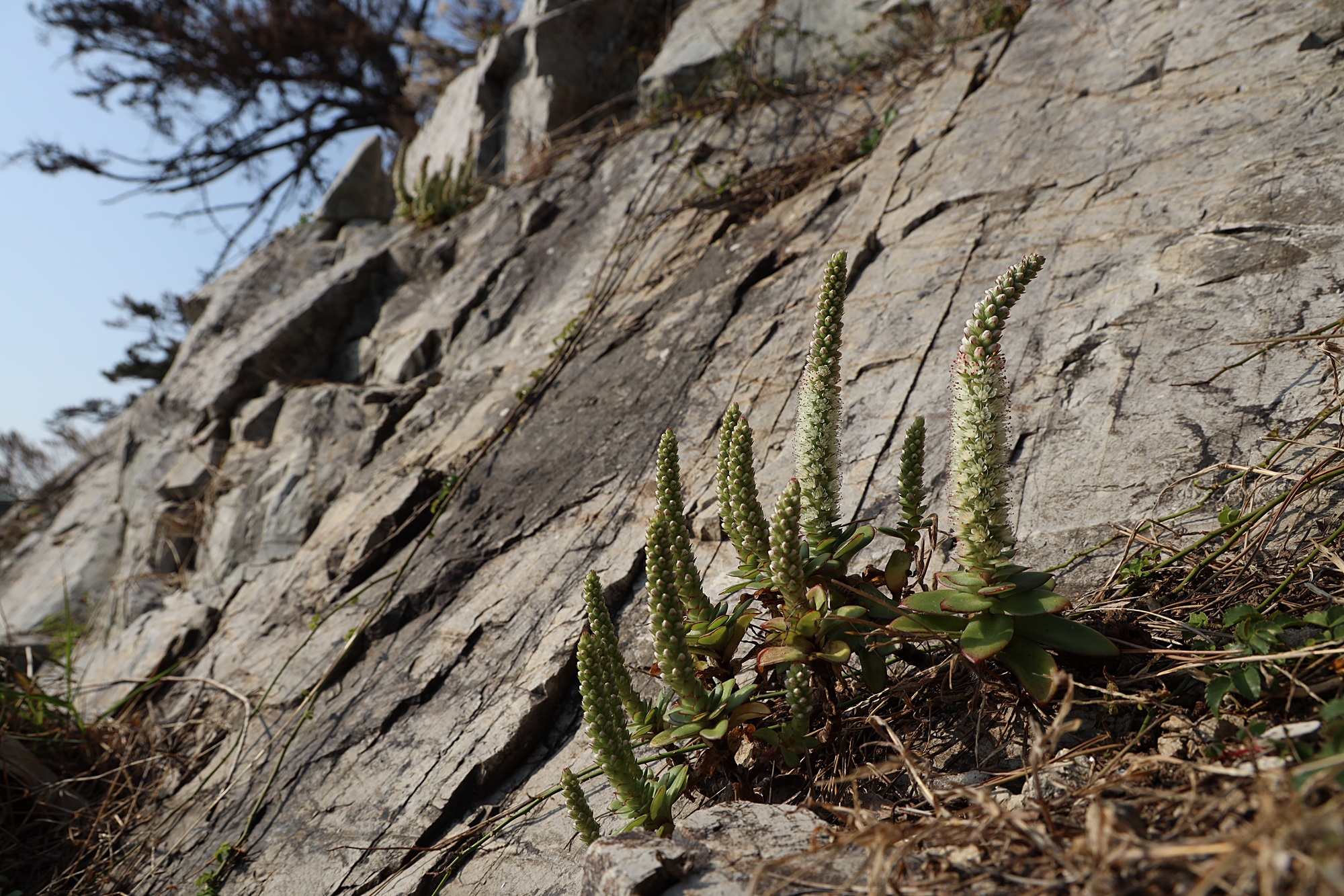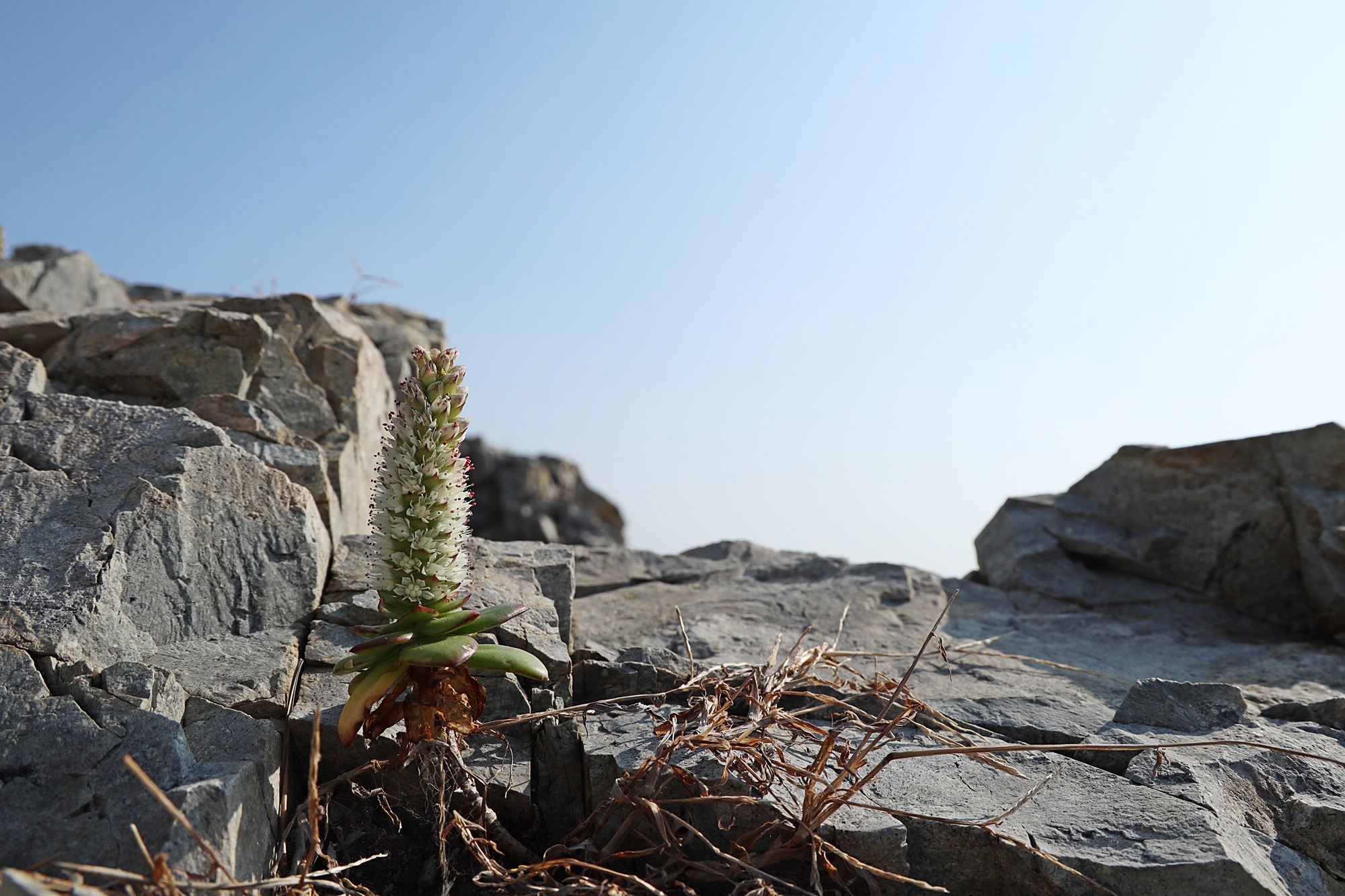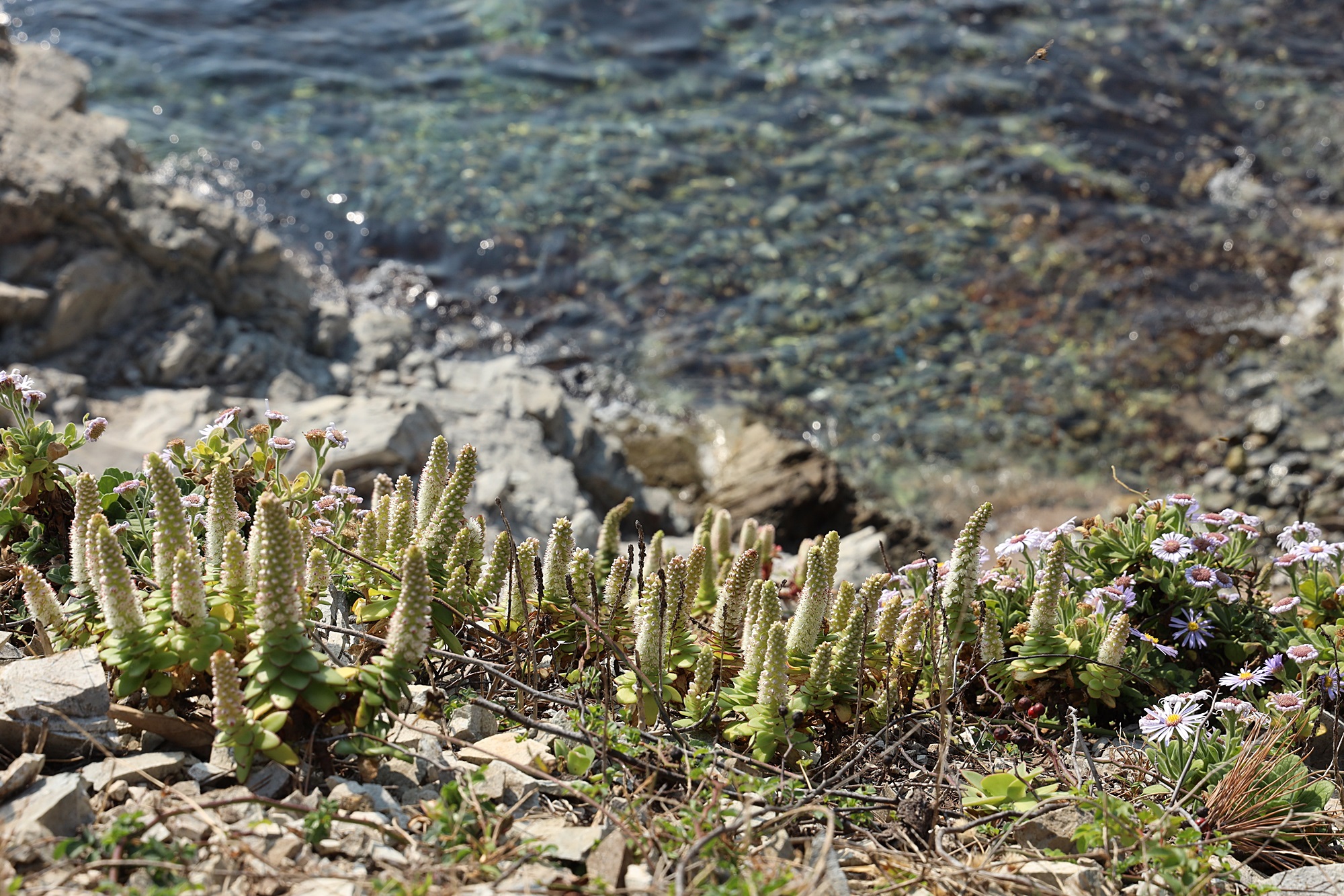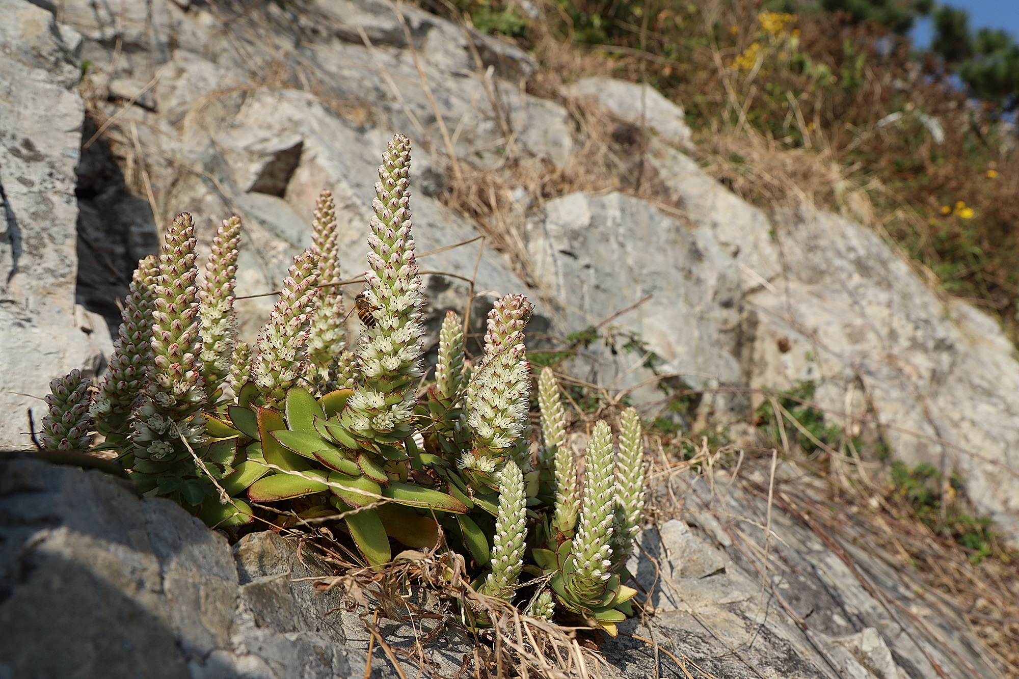 경북 동해안 바닷가에서 본 둥근바위솔입니다.