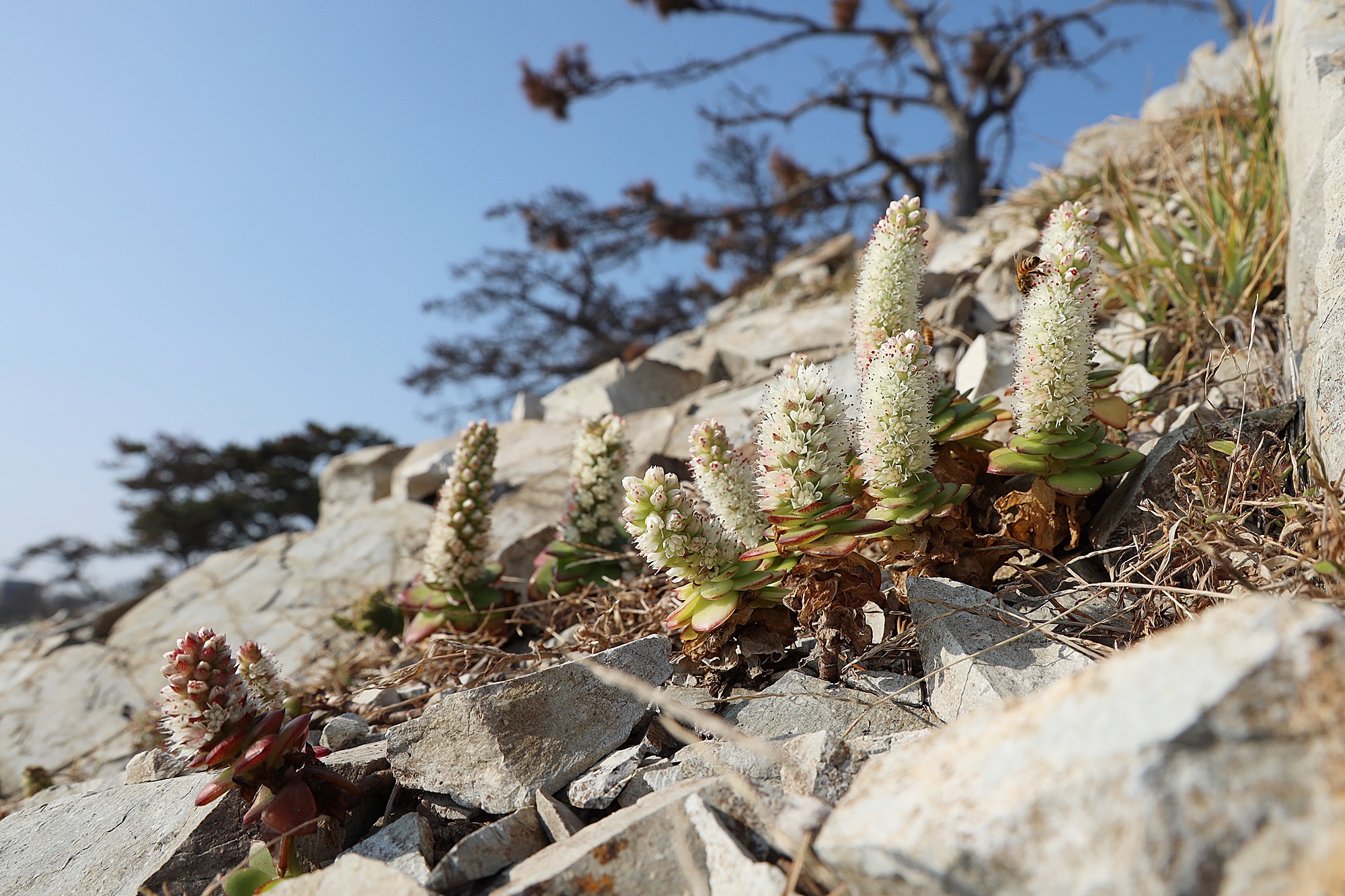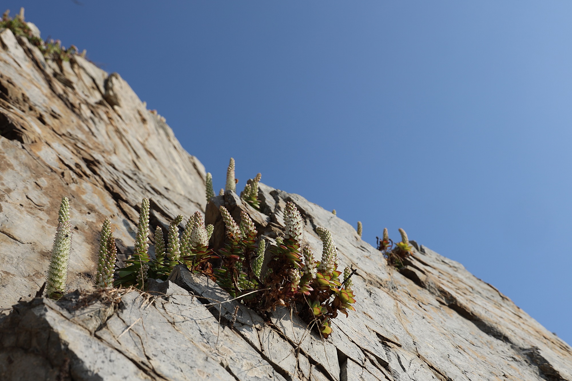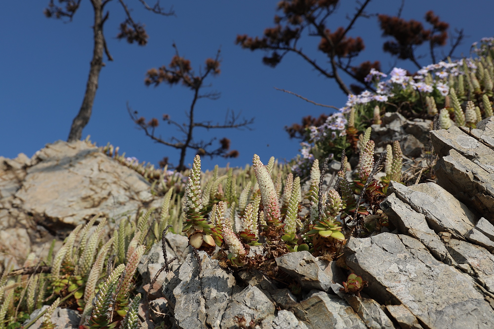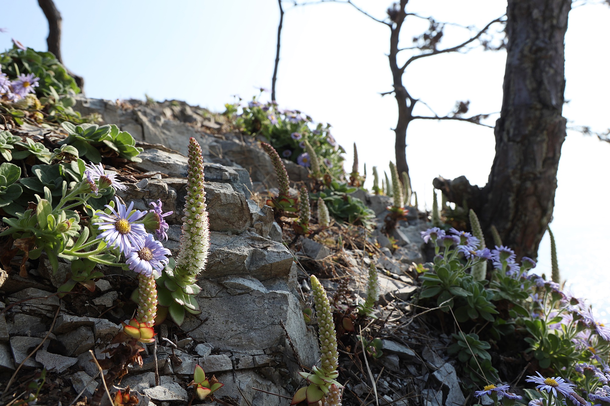 경북 동해안 바닷가에서 본 둥근바위솔입니다.