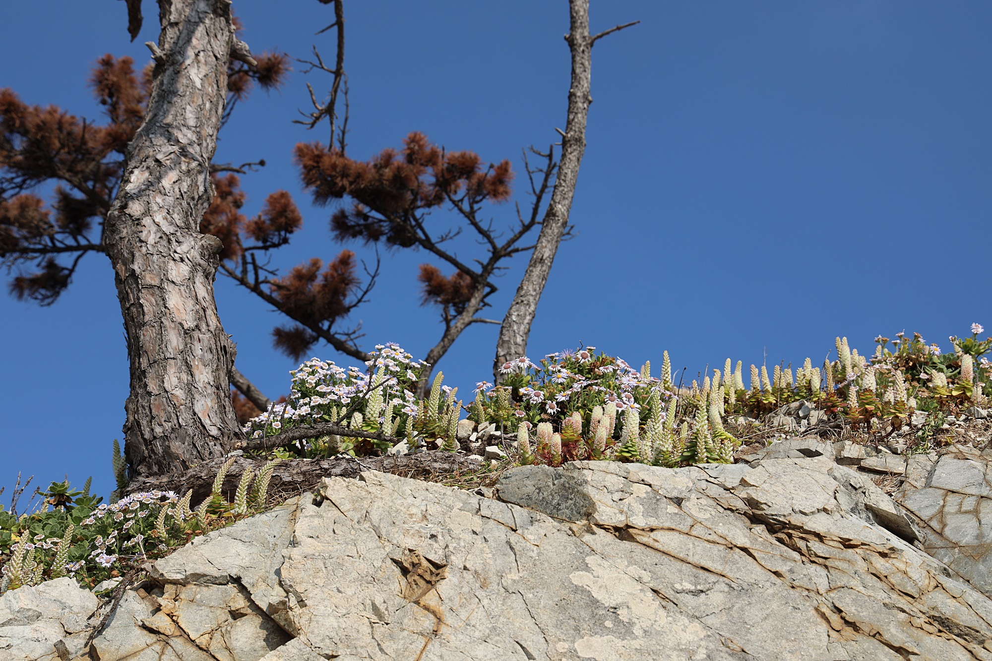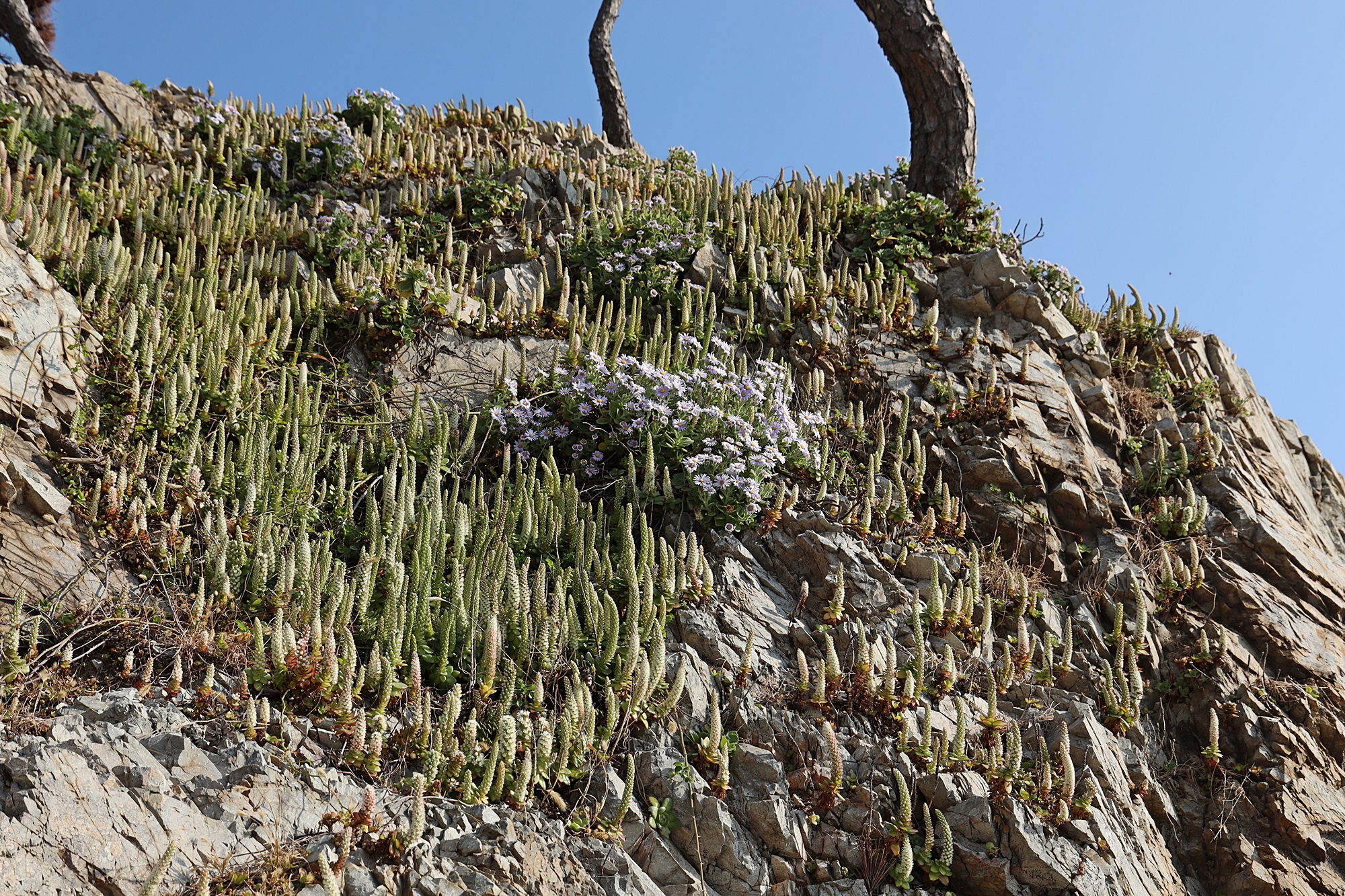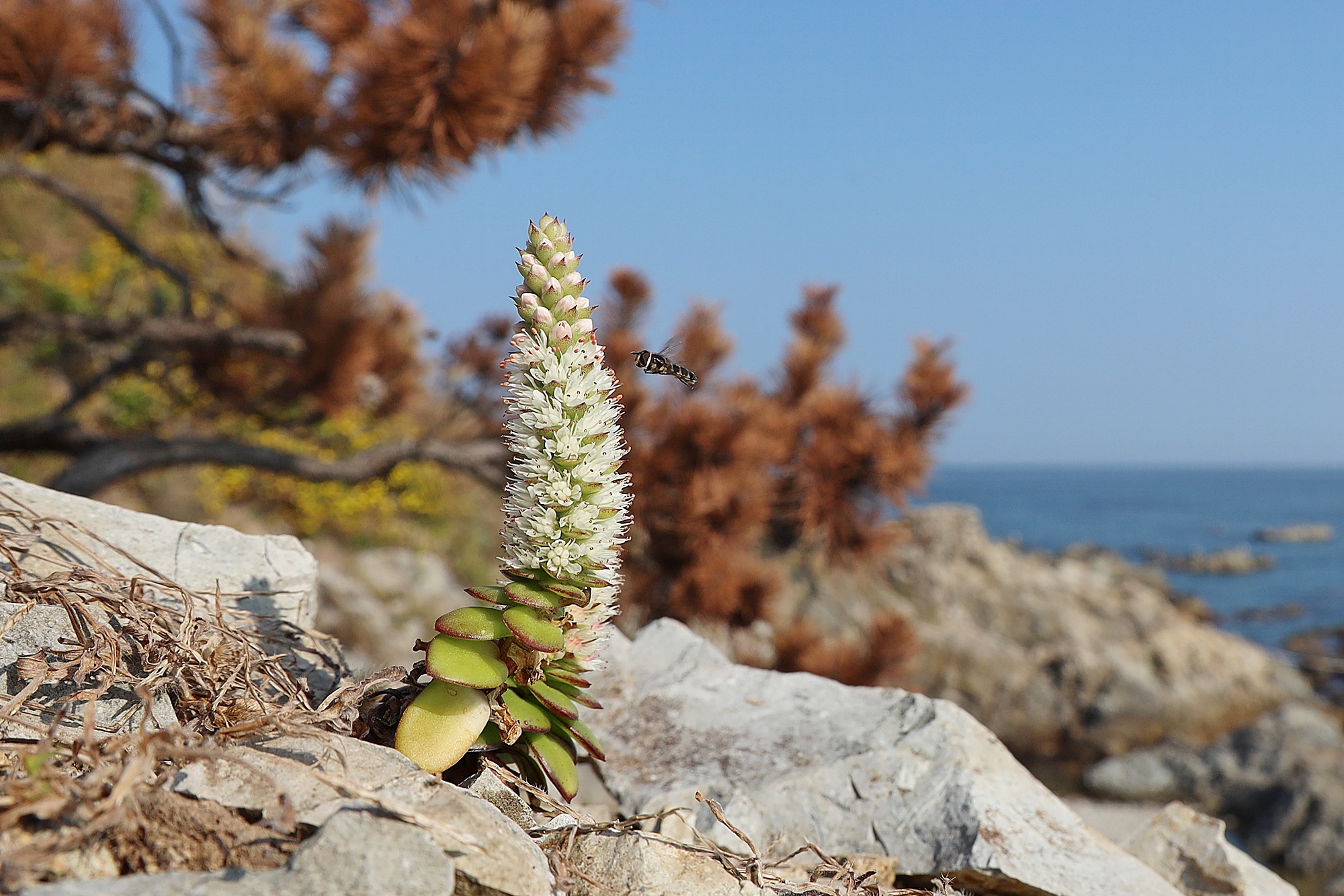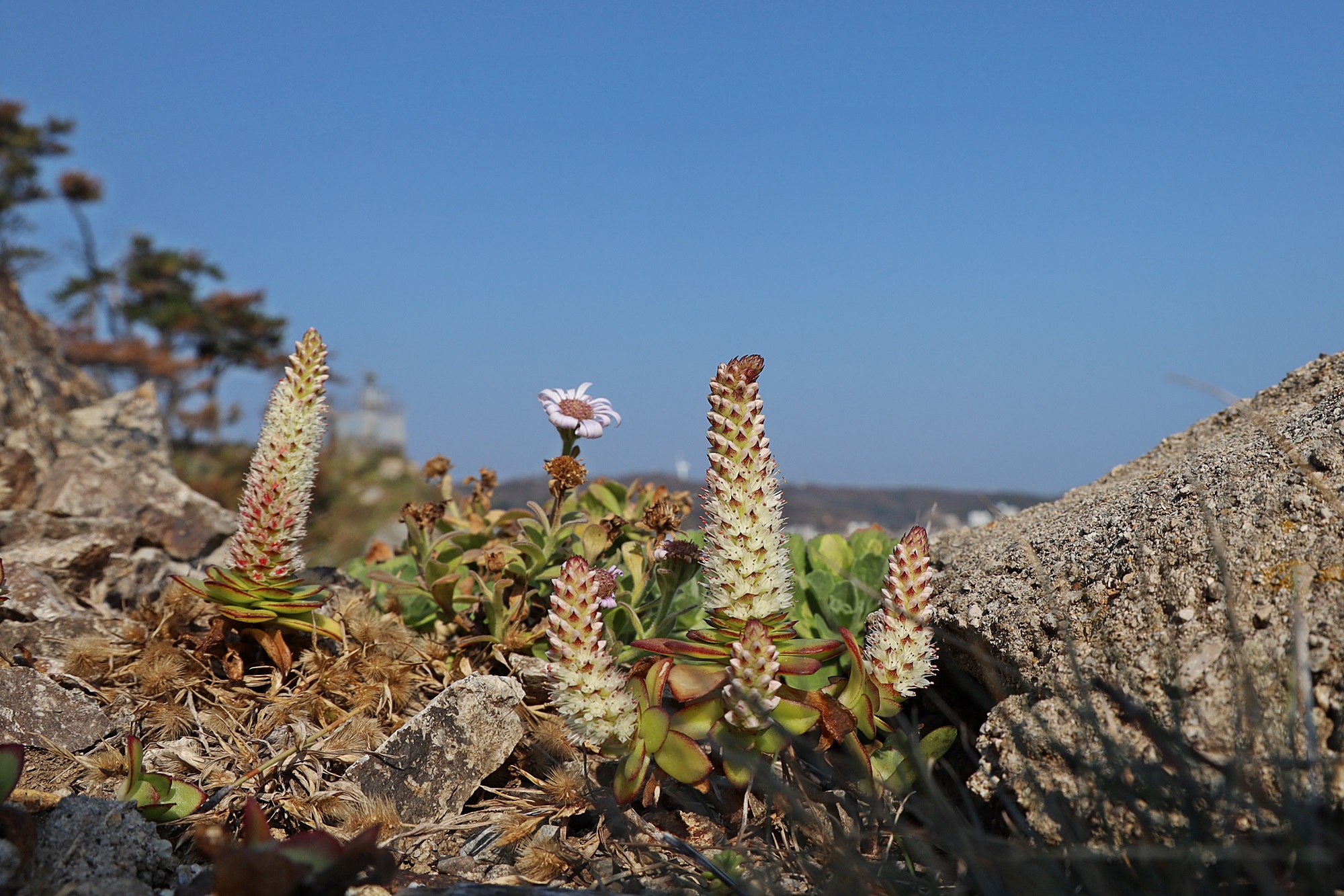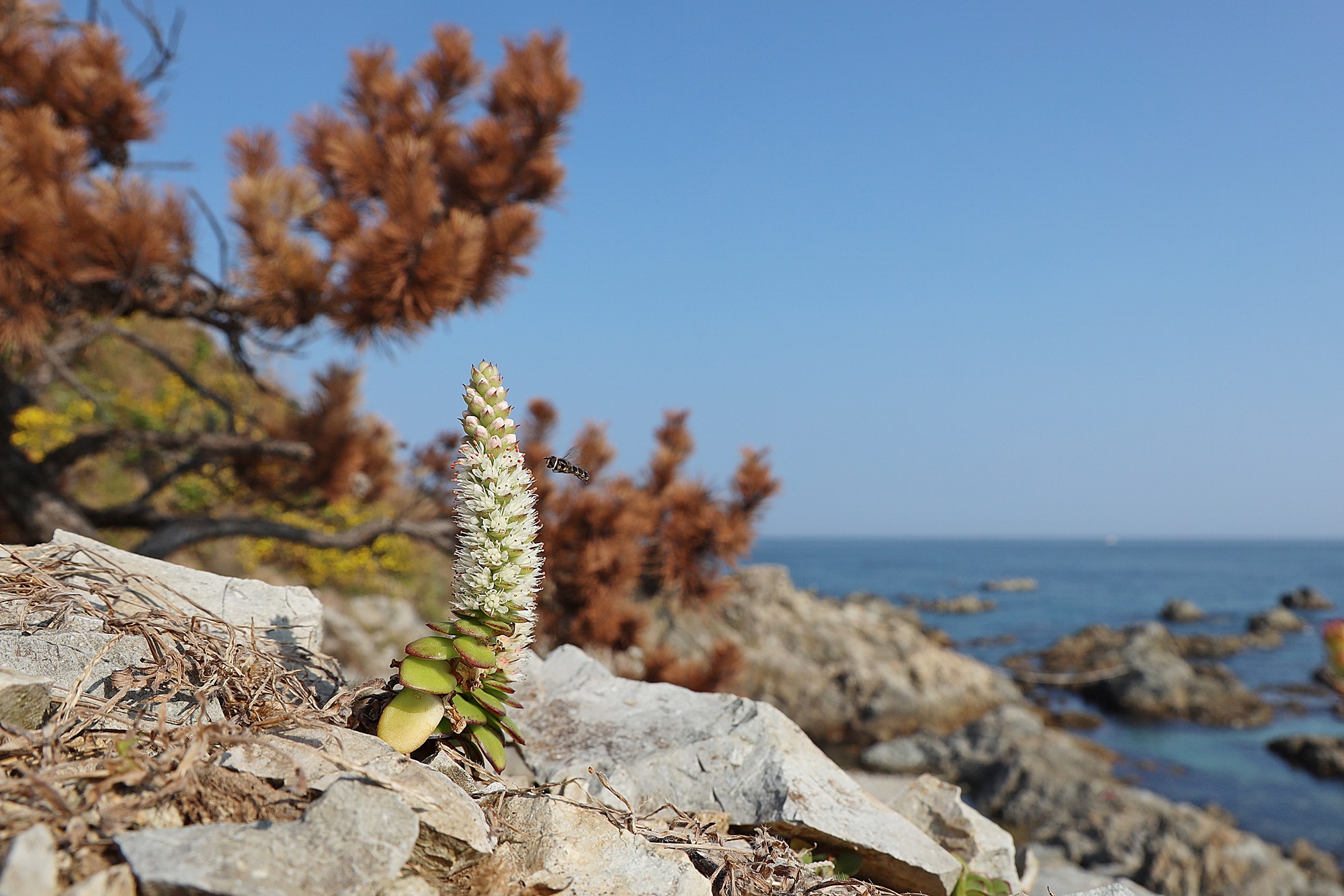 경북 동해안 바닷가에서 본 둥근바위솔입니다.