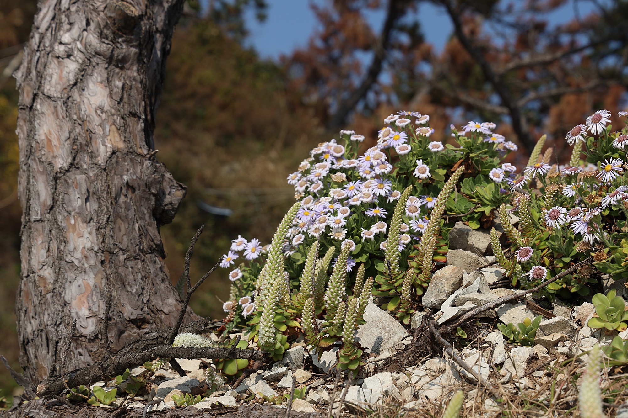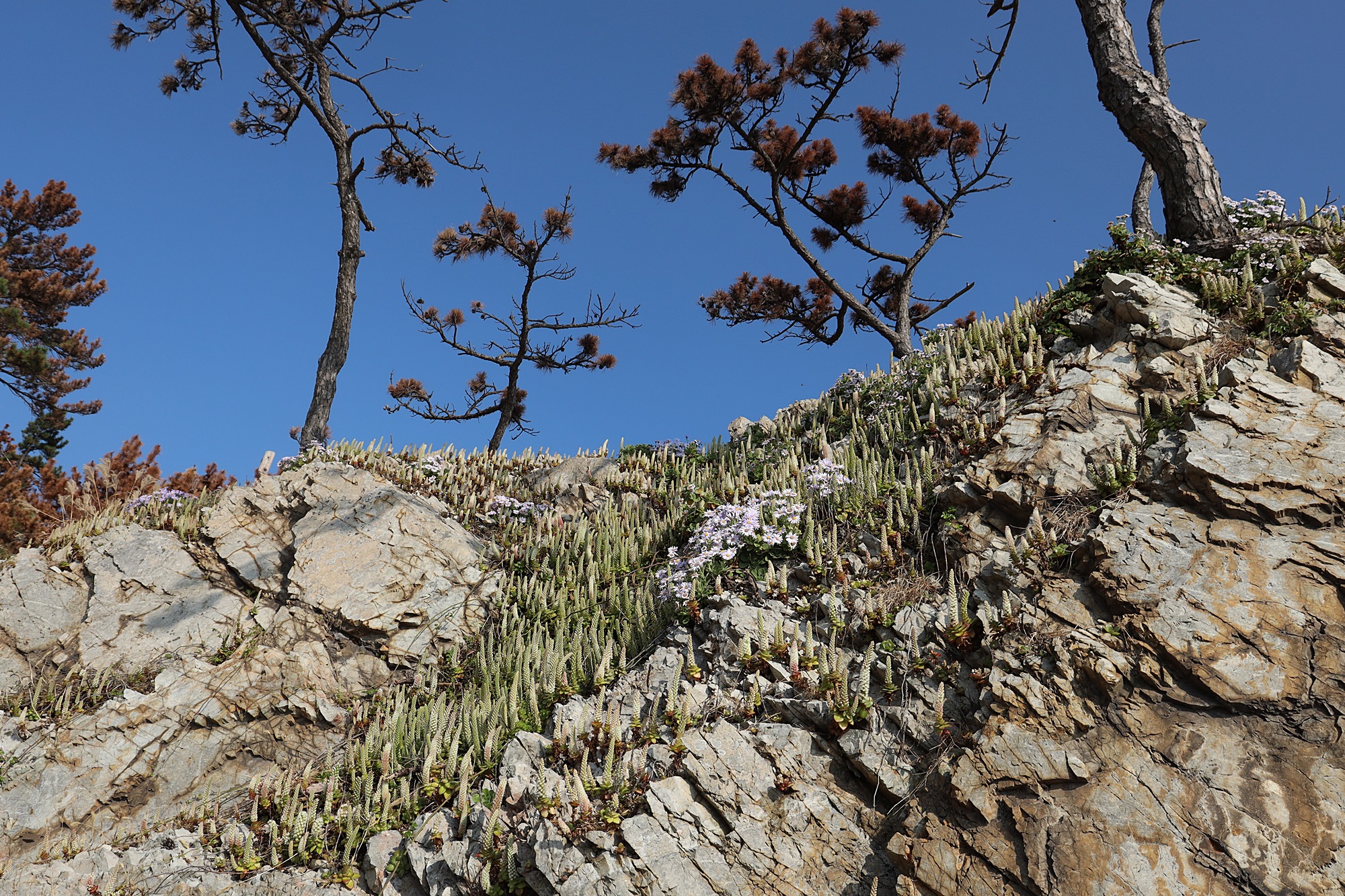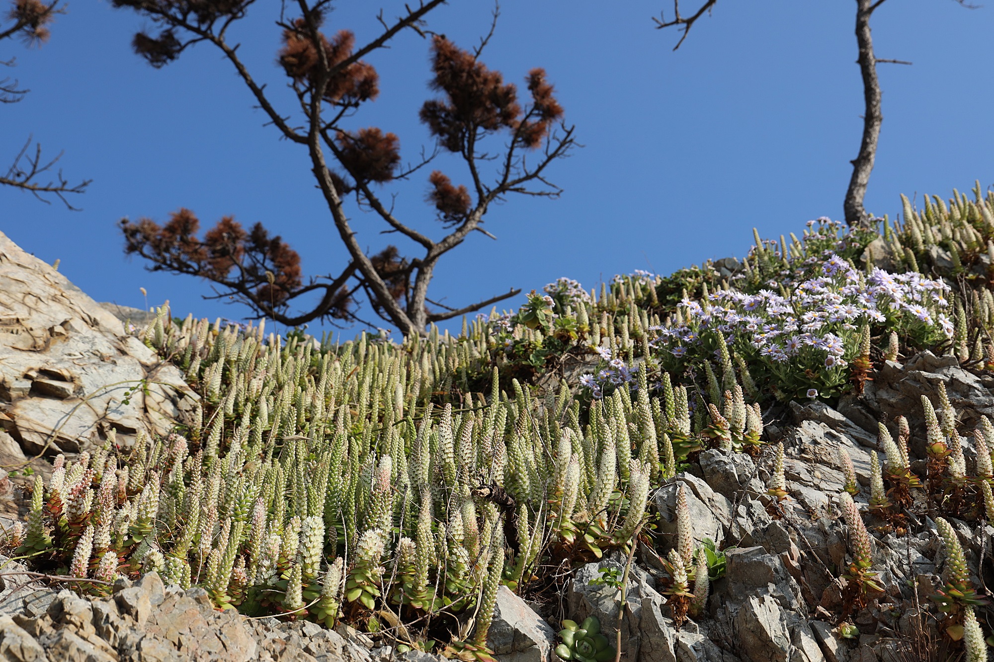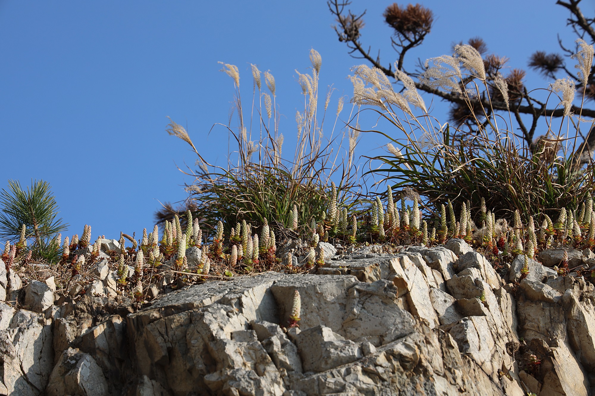 경북 동해안 바닷가에서 본 둥근바위솔입니다.
