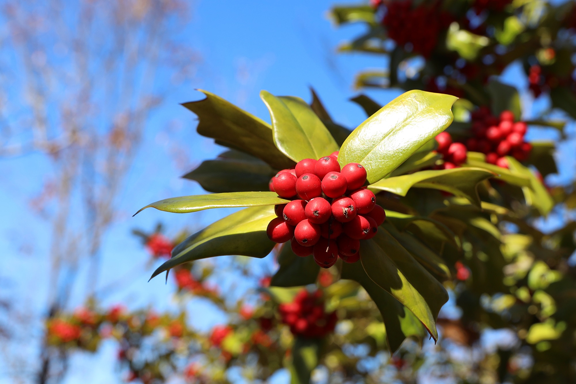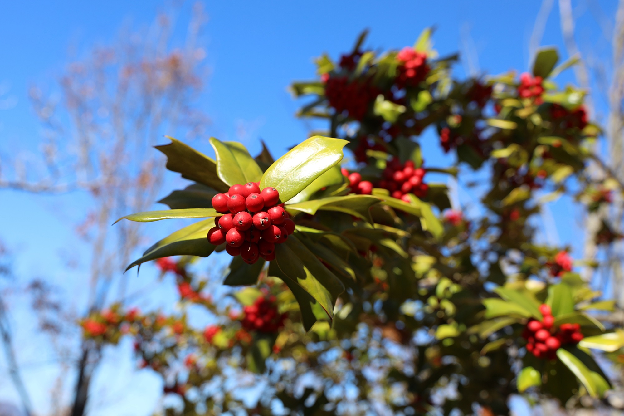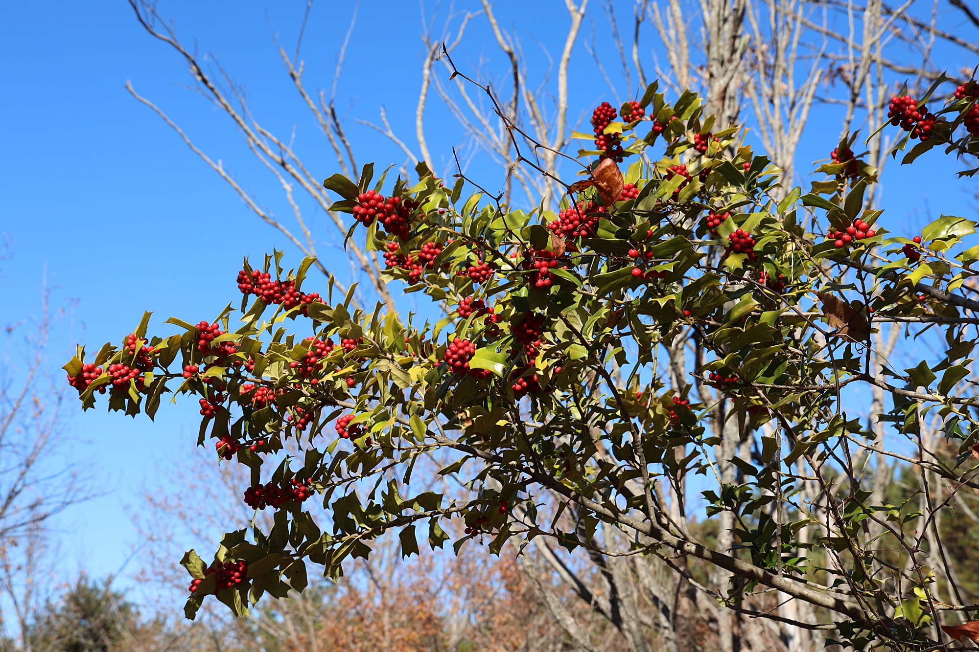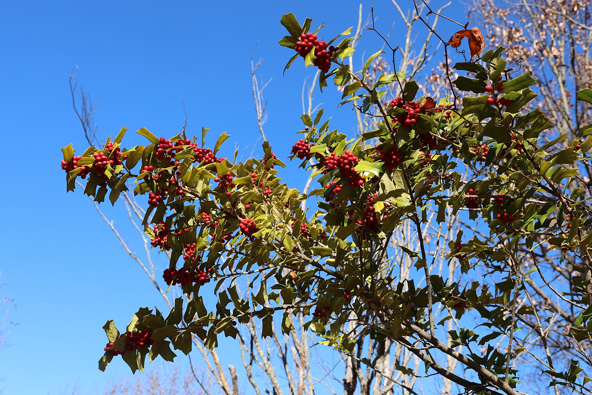 진주시 경남수목원에서 본 호랑가시나무 열매입니다.