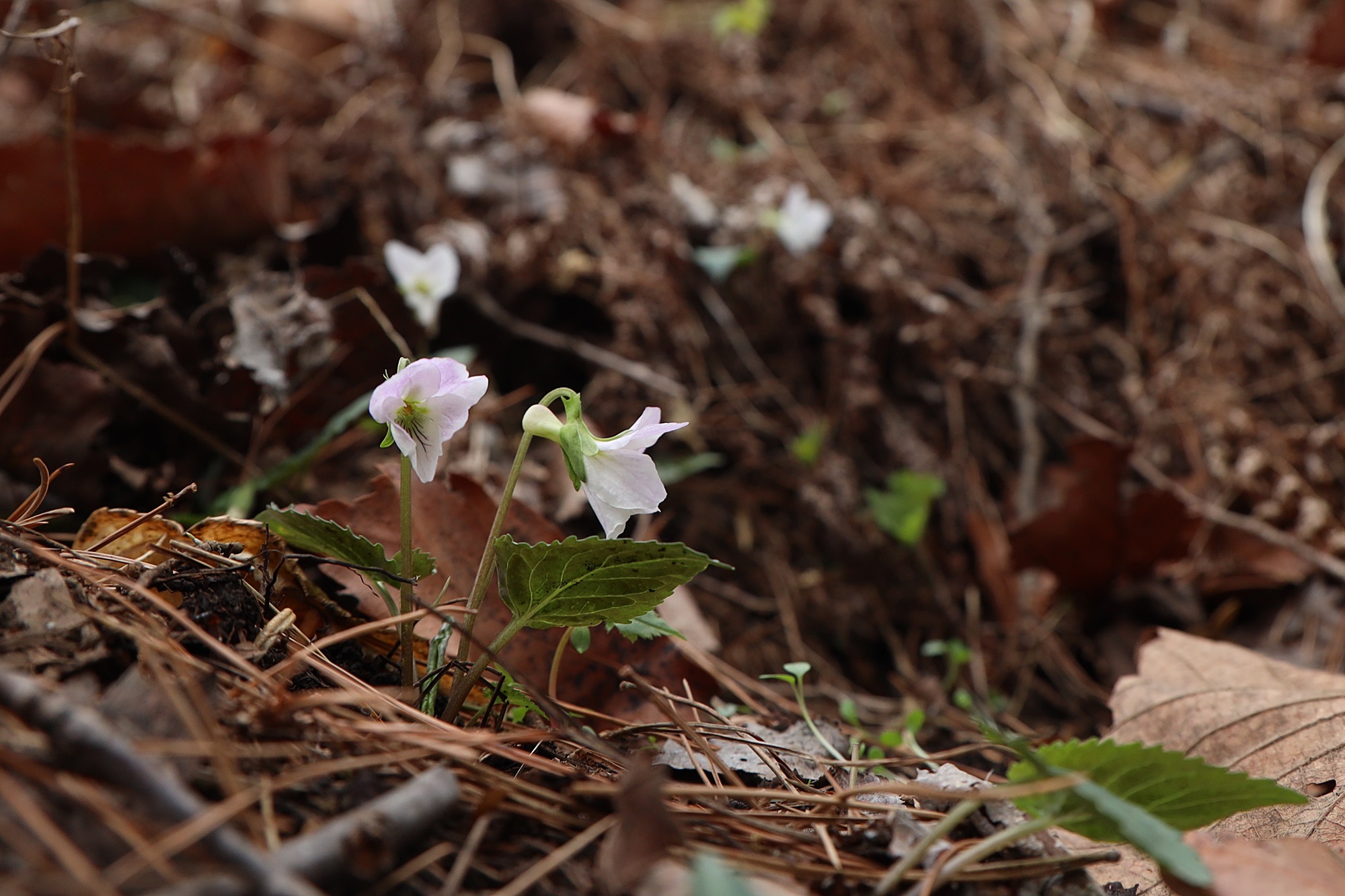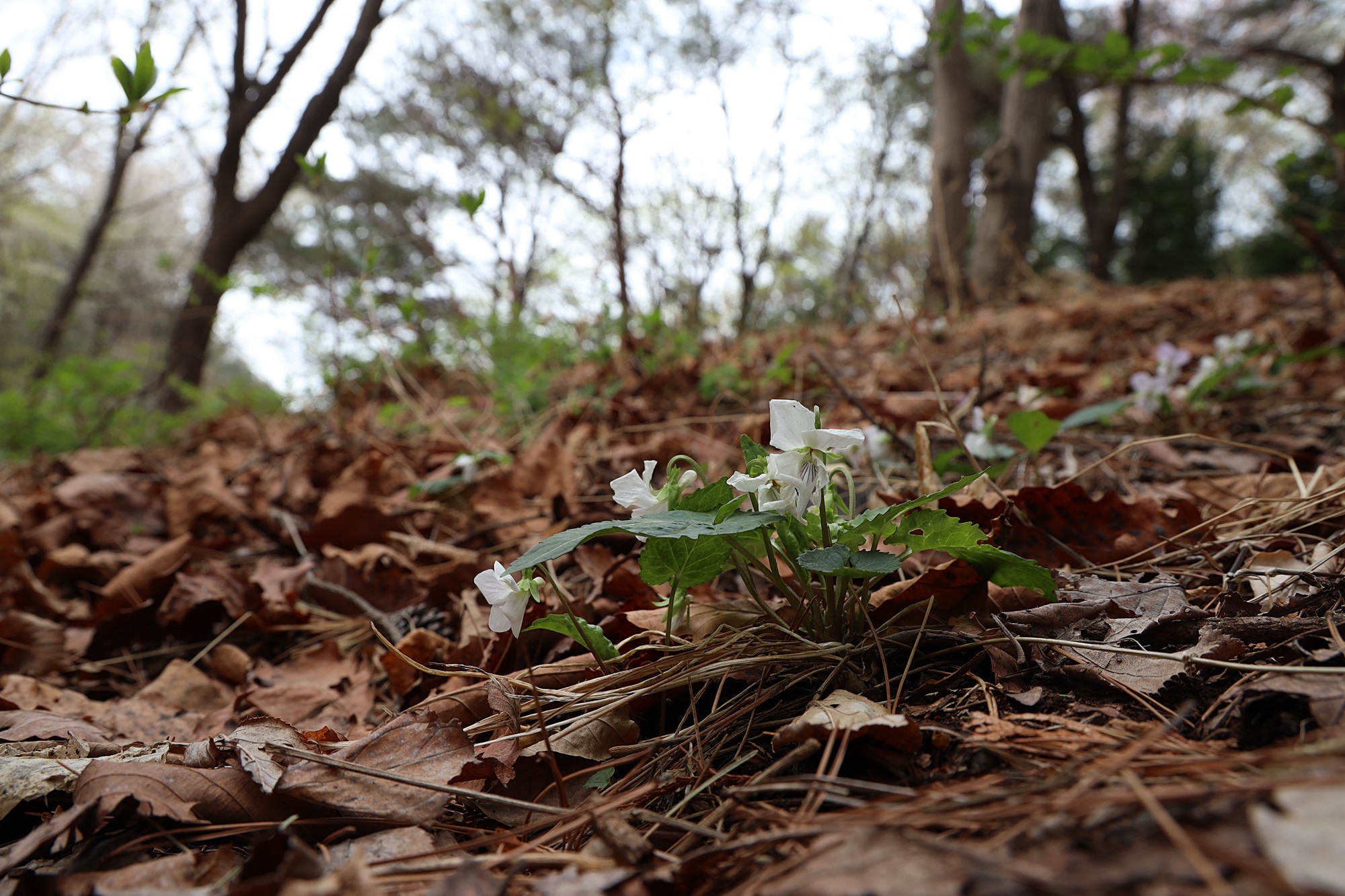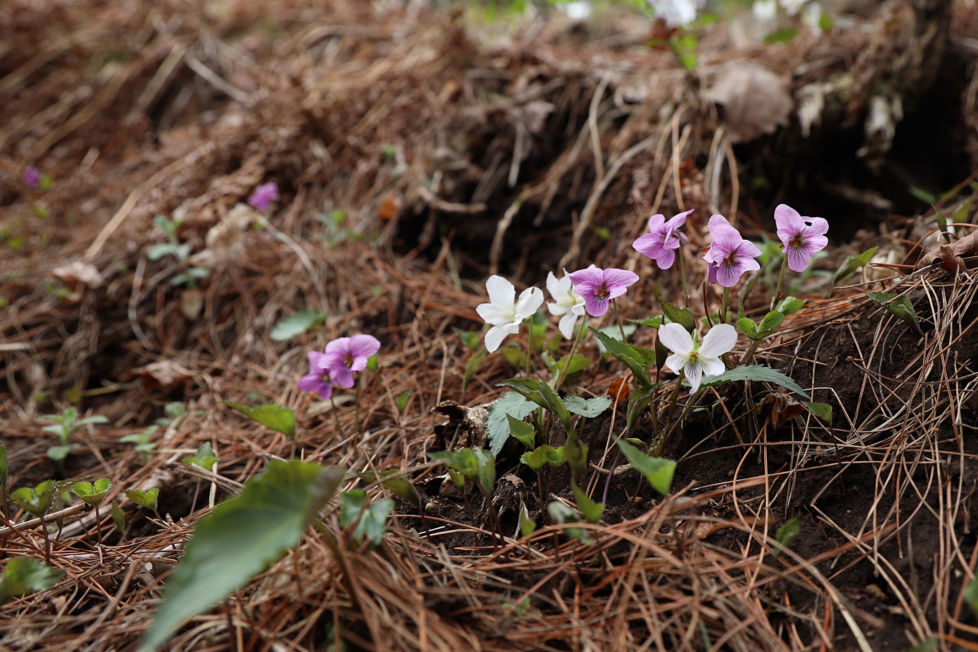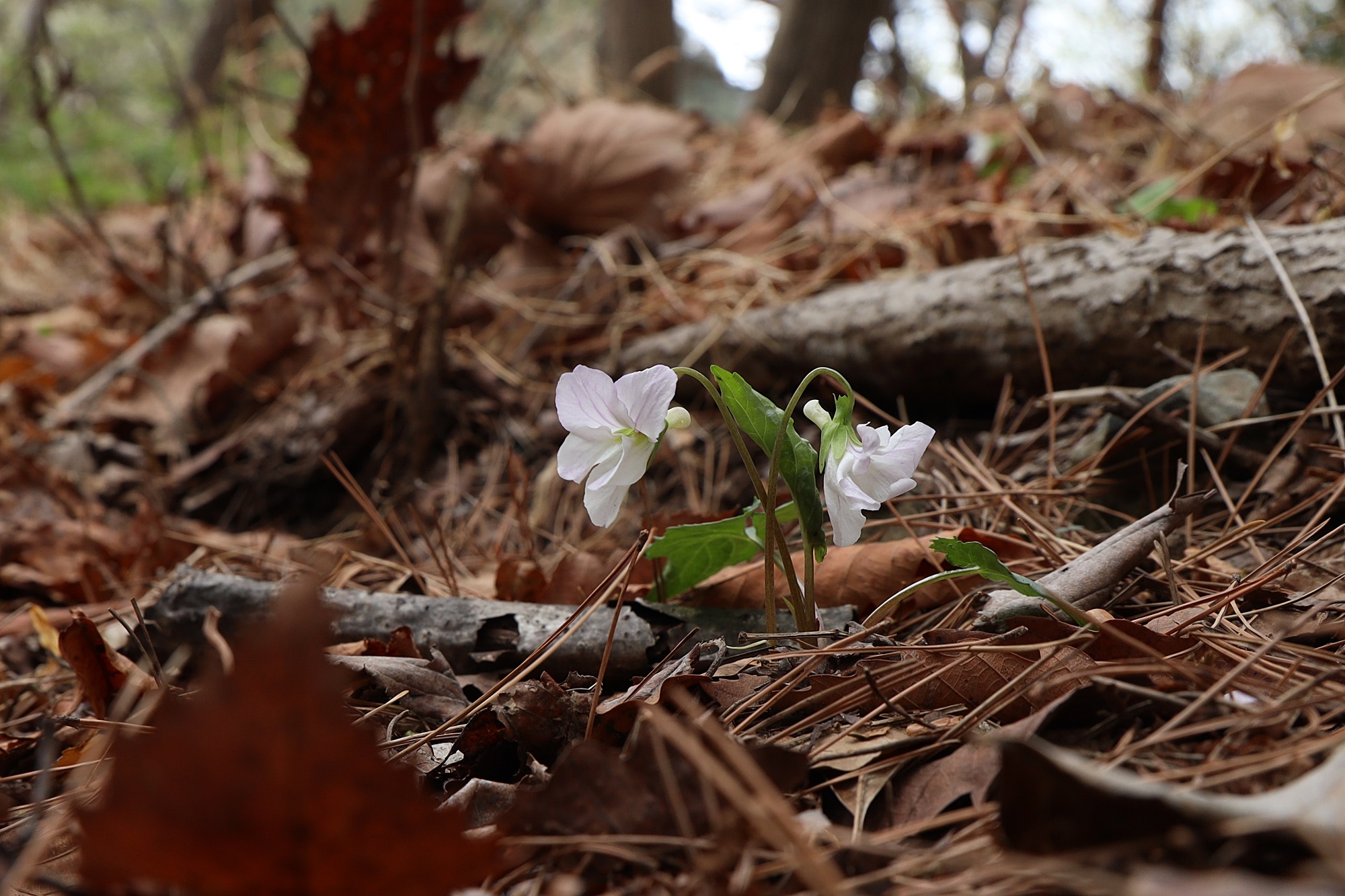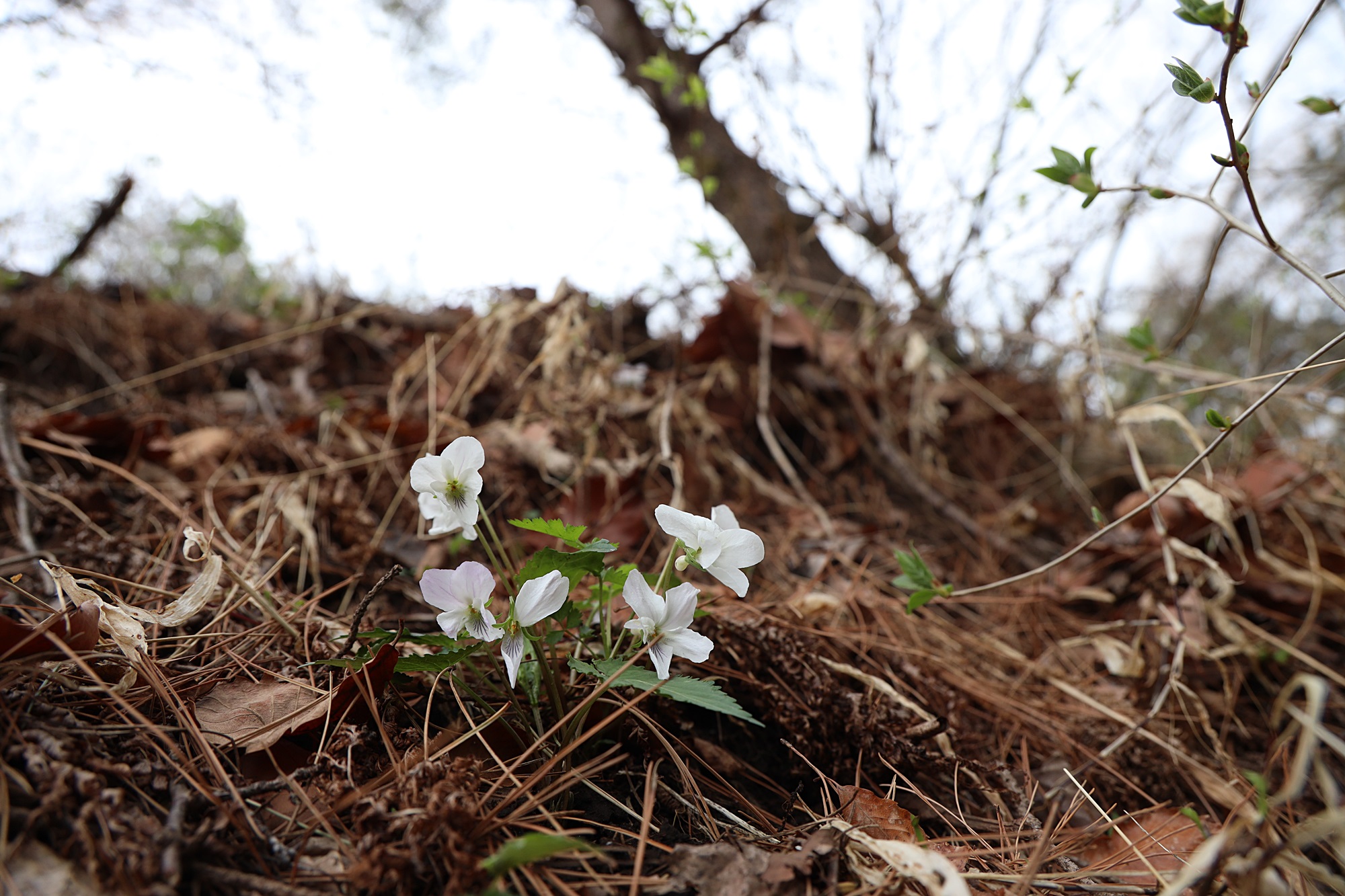 2025년 4월 19일에 경남 의령군 야산에서 본 태백제비꽃입니다.