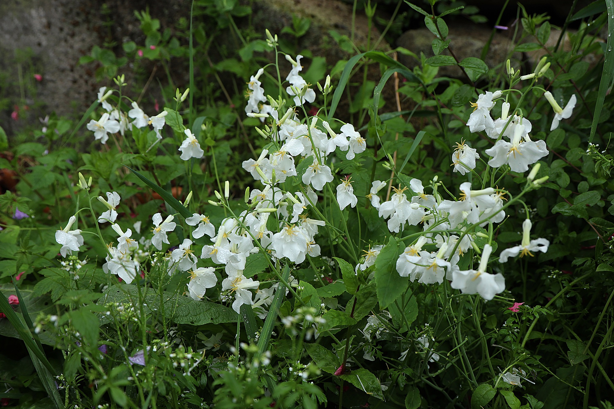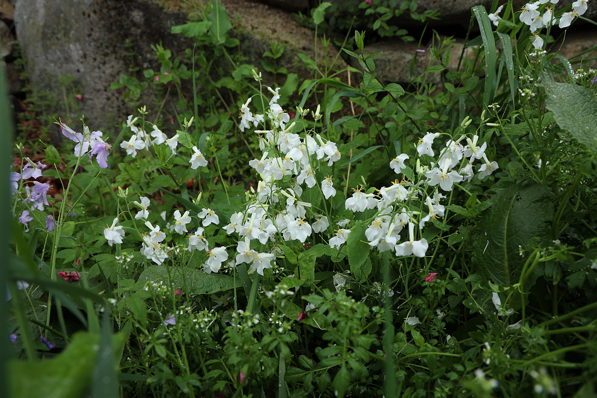 2025년 4월 20일에 경남 밀양시 근교의 야산 자락 마을에서 본 흰꽃을 피운 소래풀입니다.