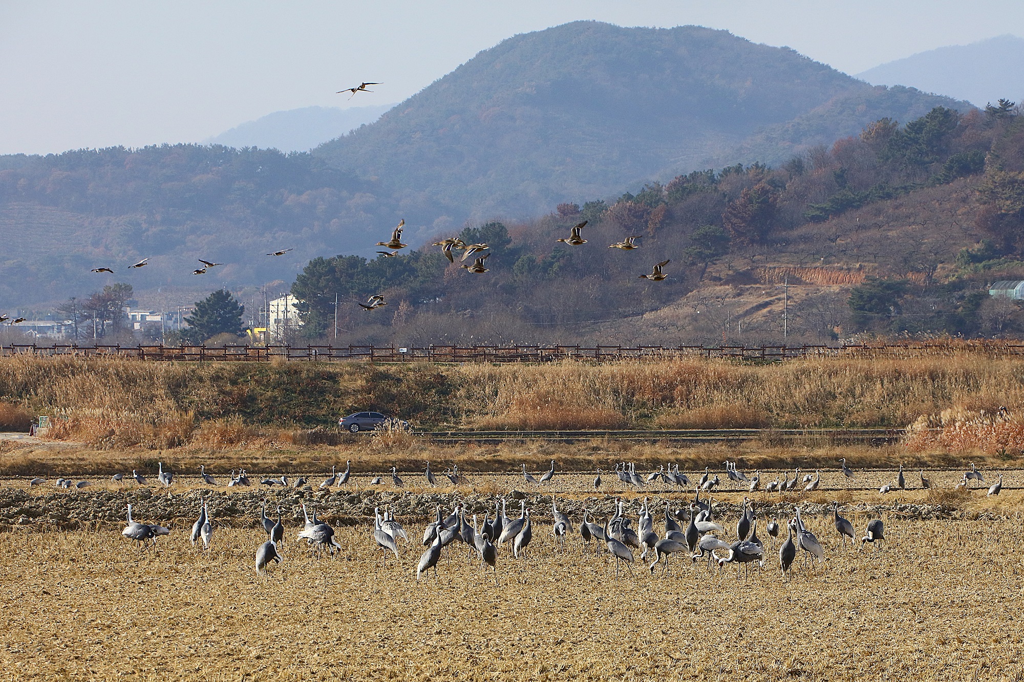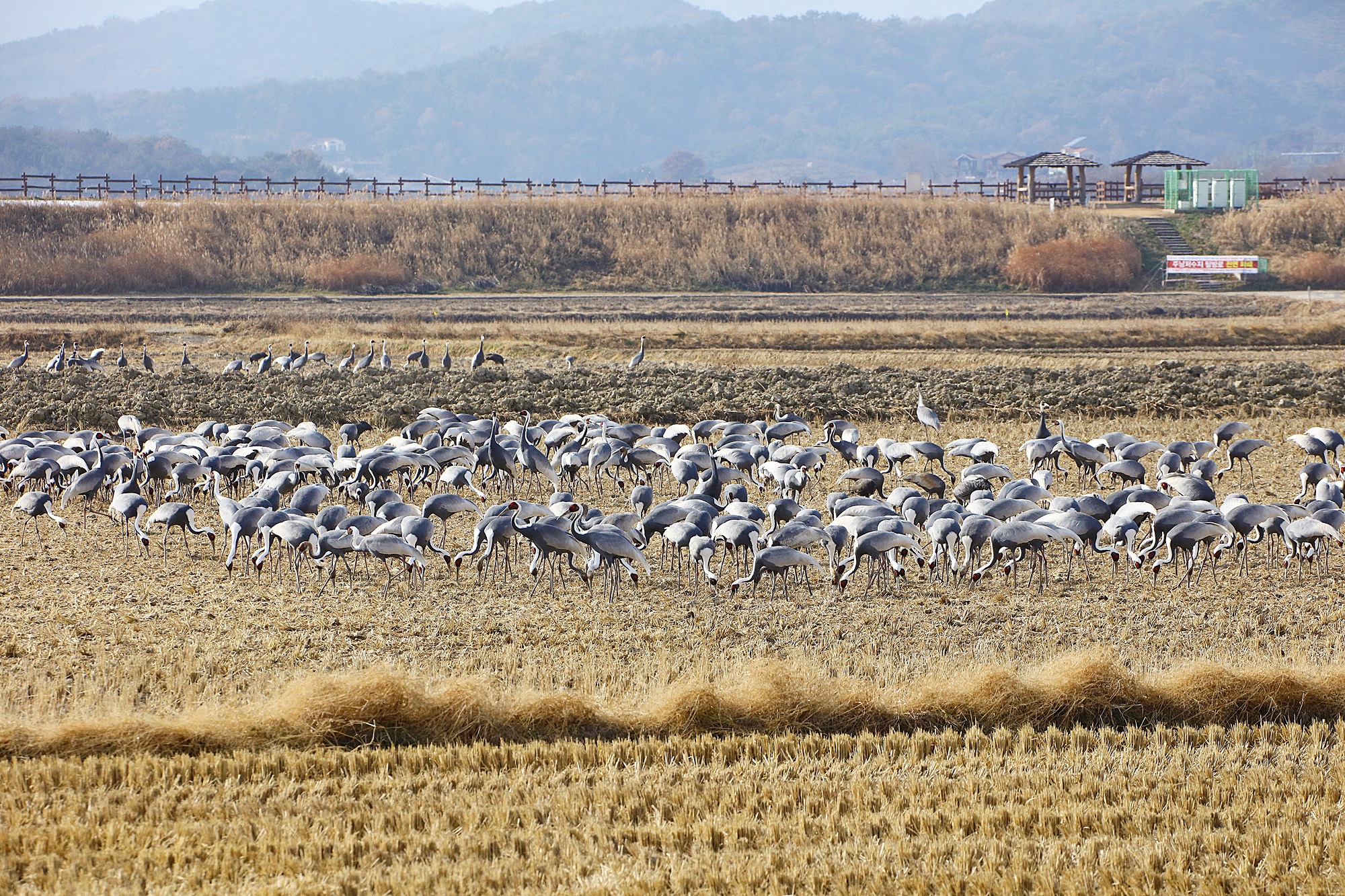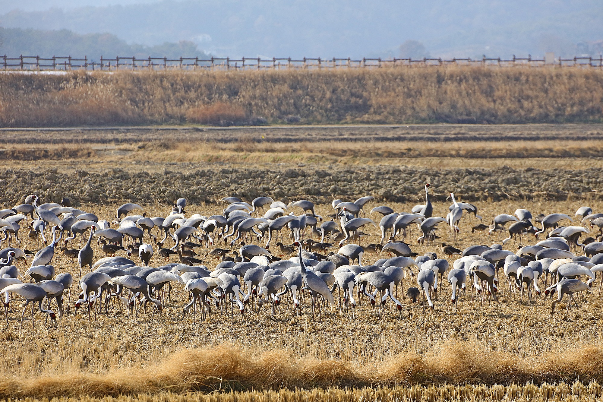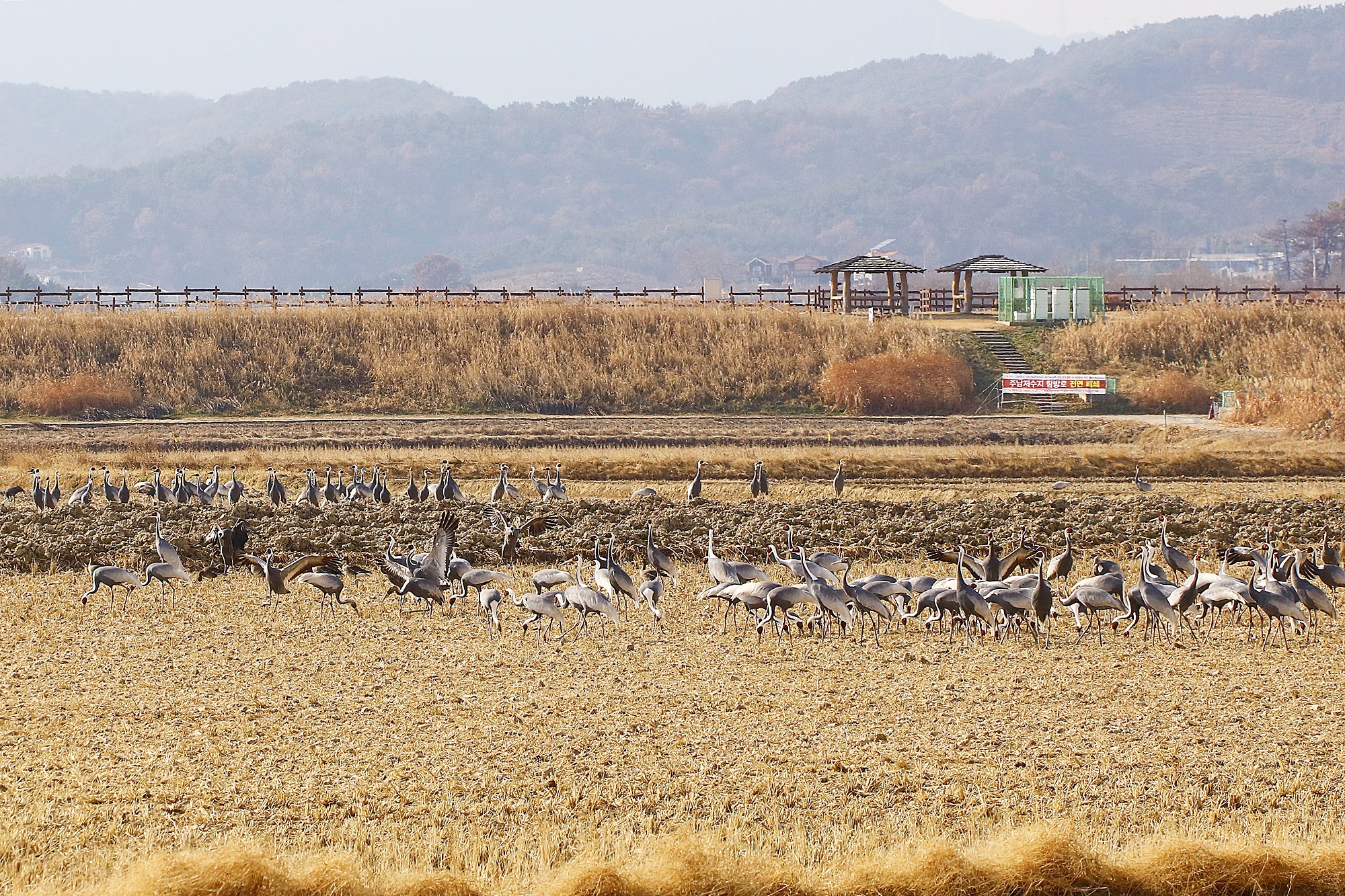 창원 주남지 들에 재두루미가 놀고 있습니다.
