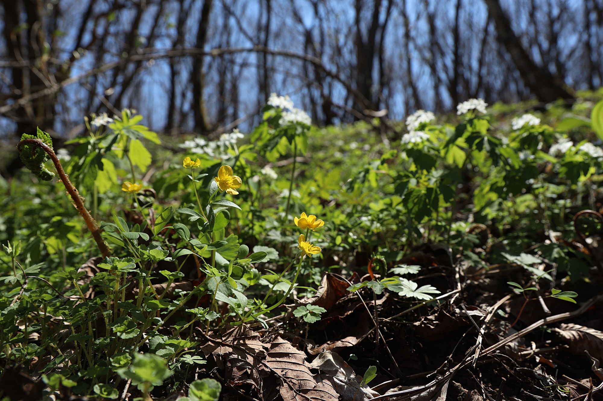 2025년 4월 29일에 경북의 높은 산에서 본 왜미나리아재비입니다.