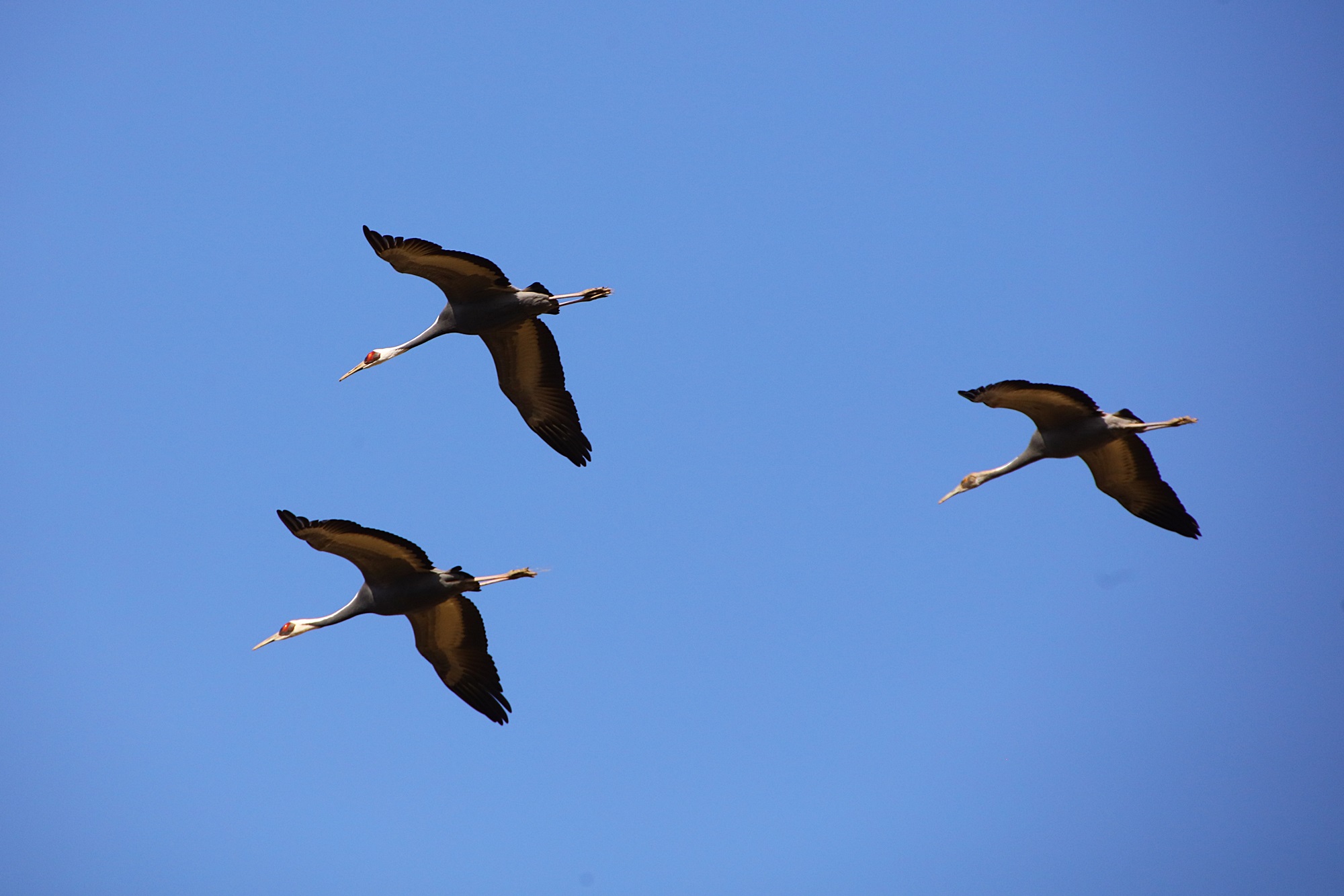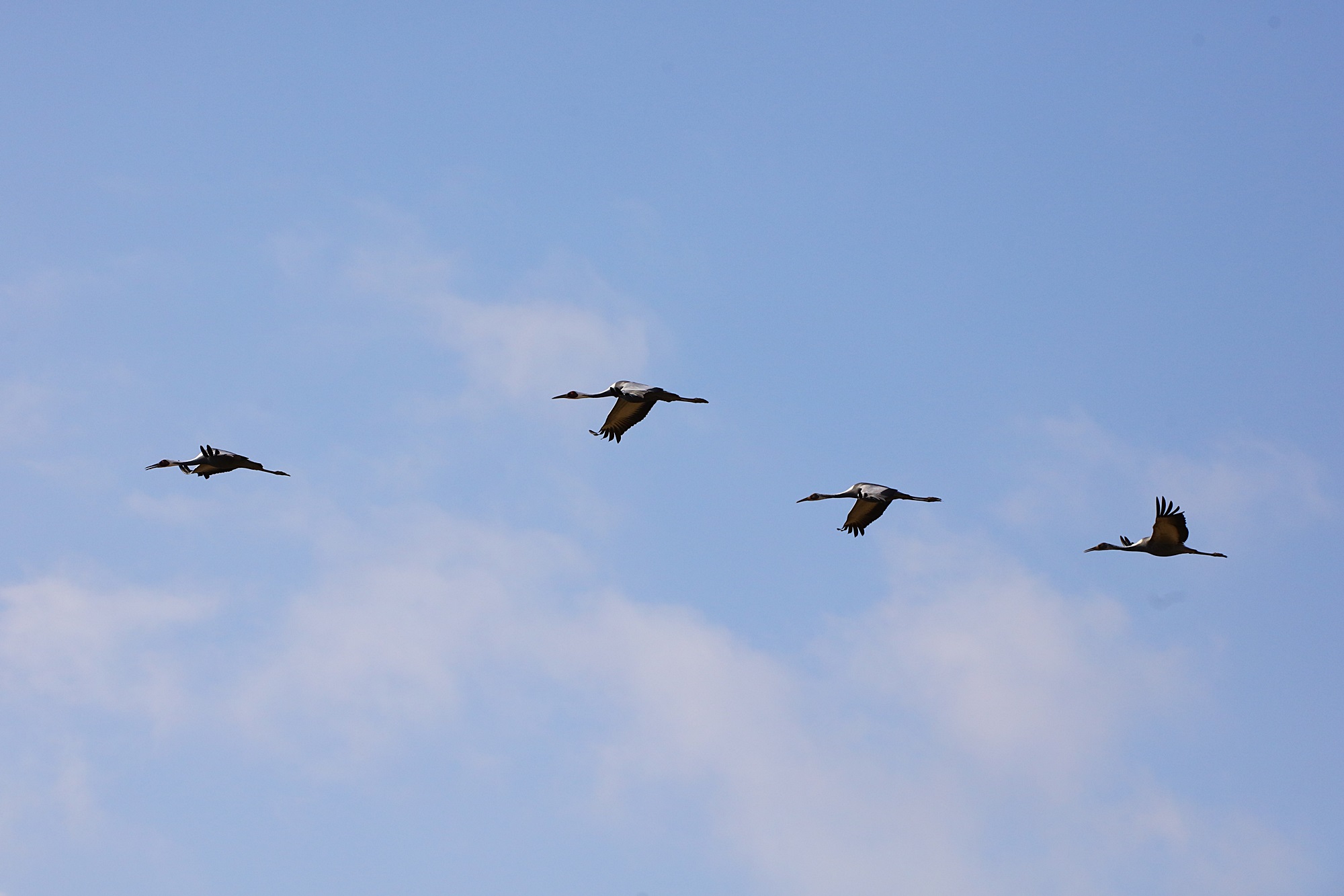 창원 주남지 들의 하늘에 재두루미가 날고 있습니다.