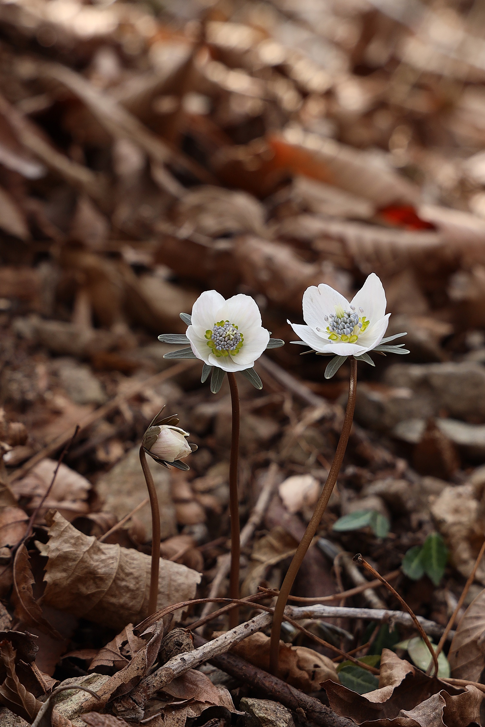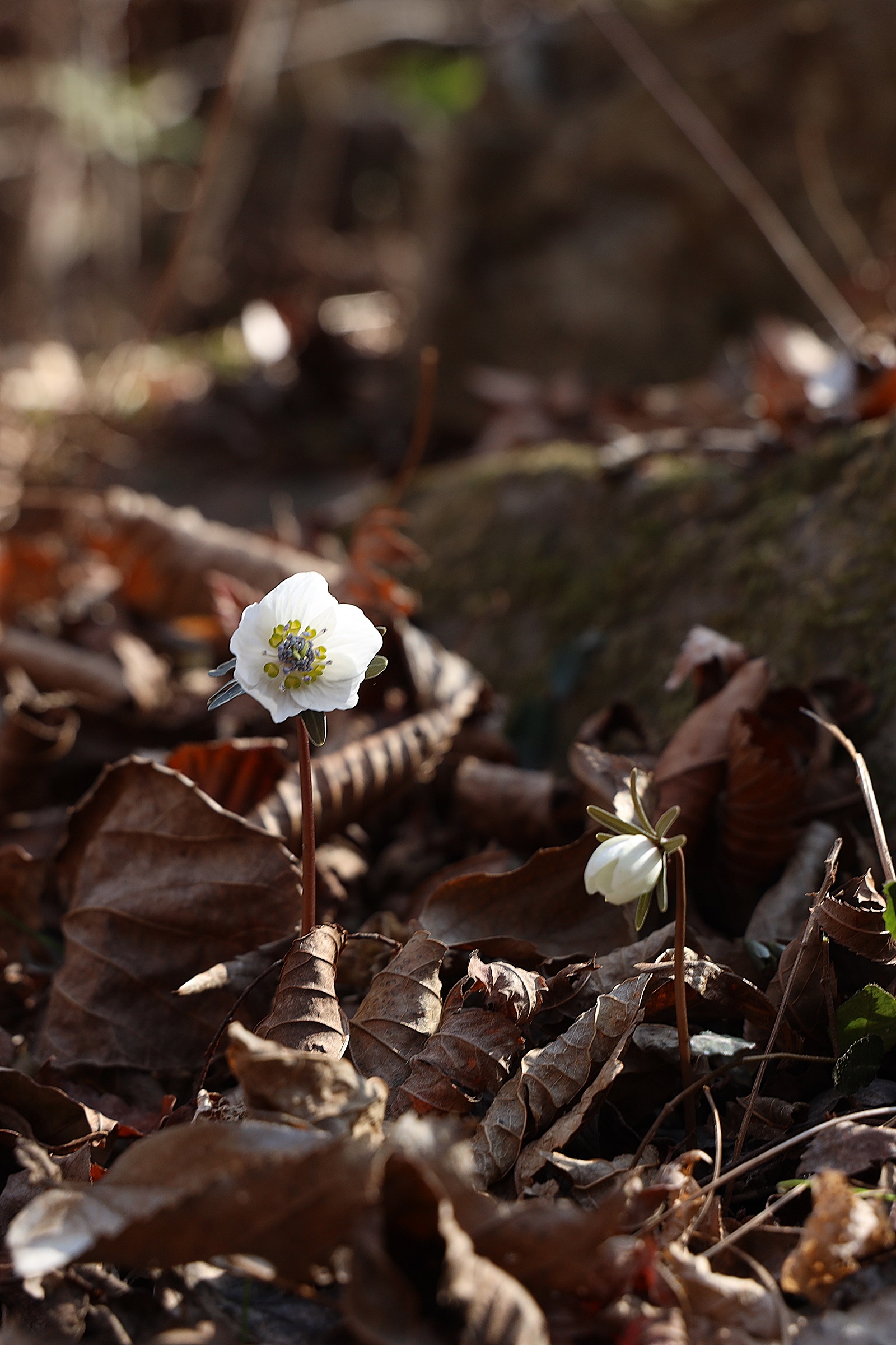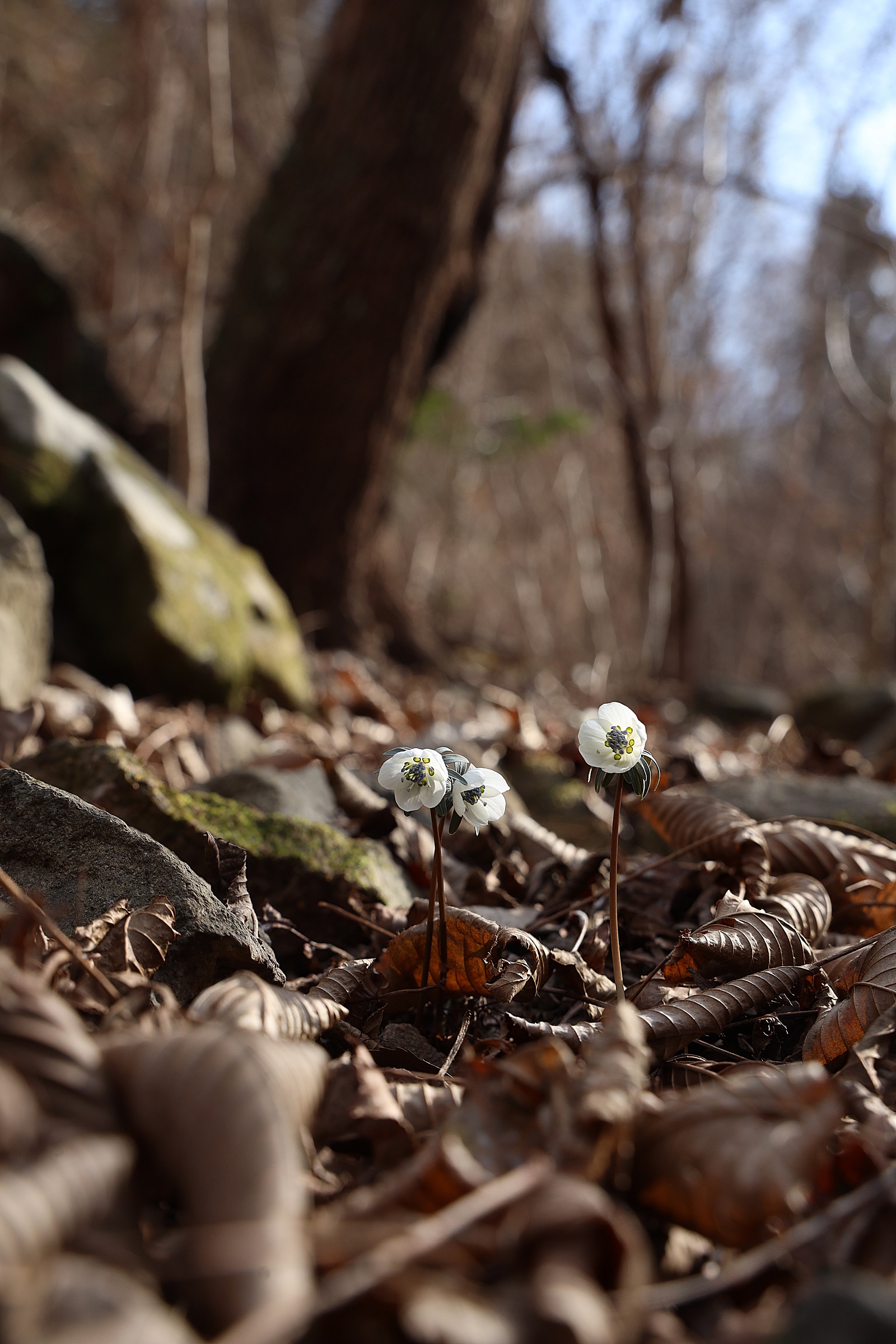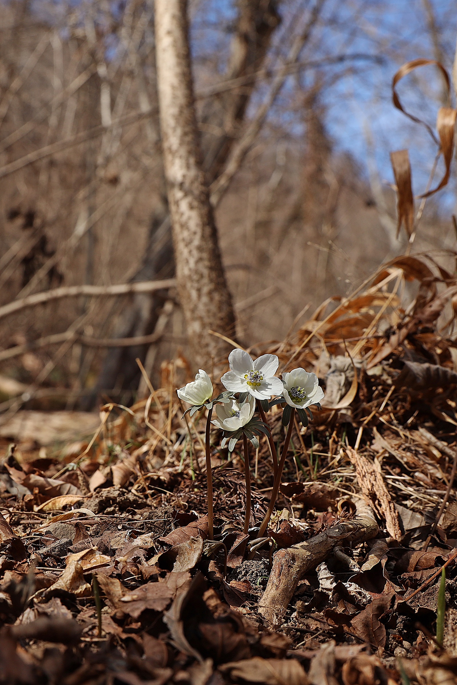 꽃은 2~4월에 꽃자루 끝에 1개씩 흰색으로 피며, 직경 3cm 정도이다.