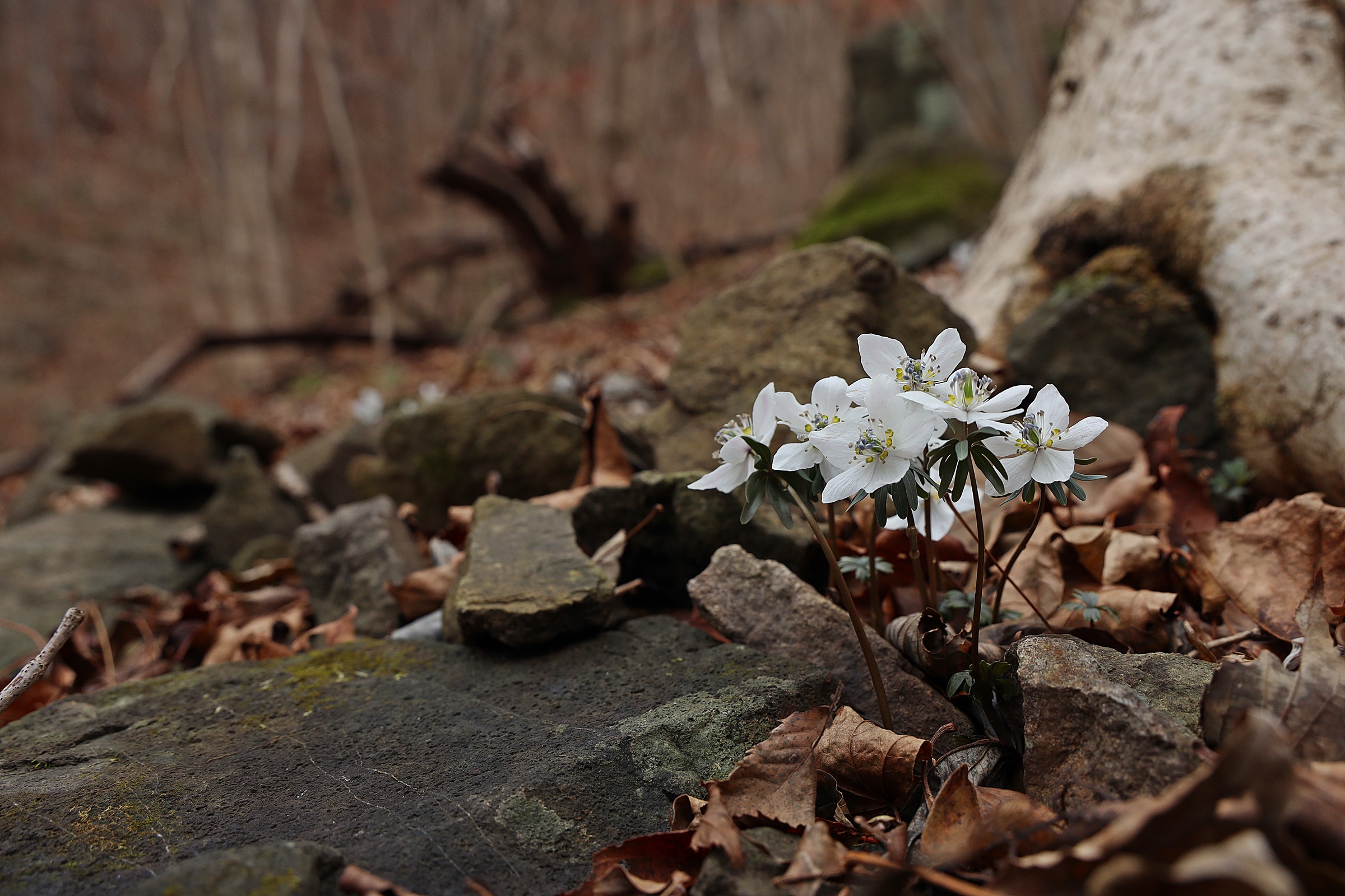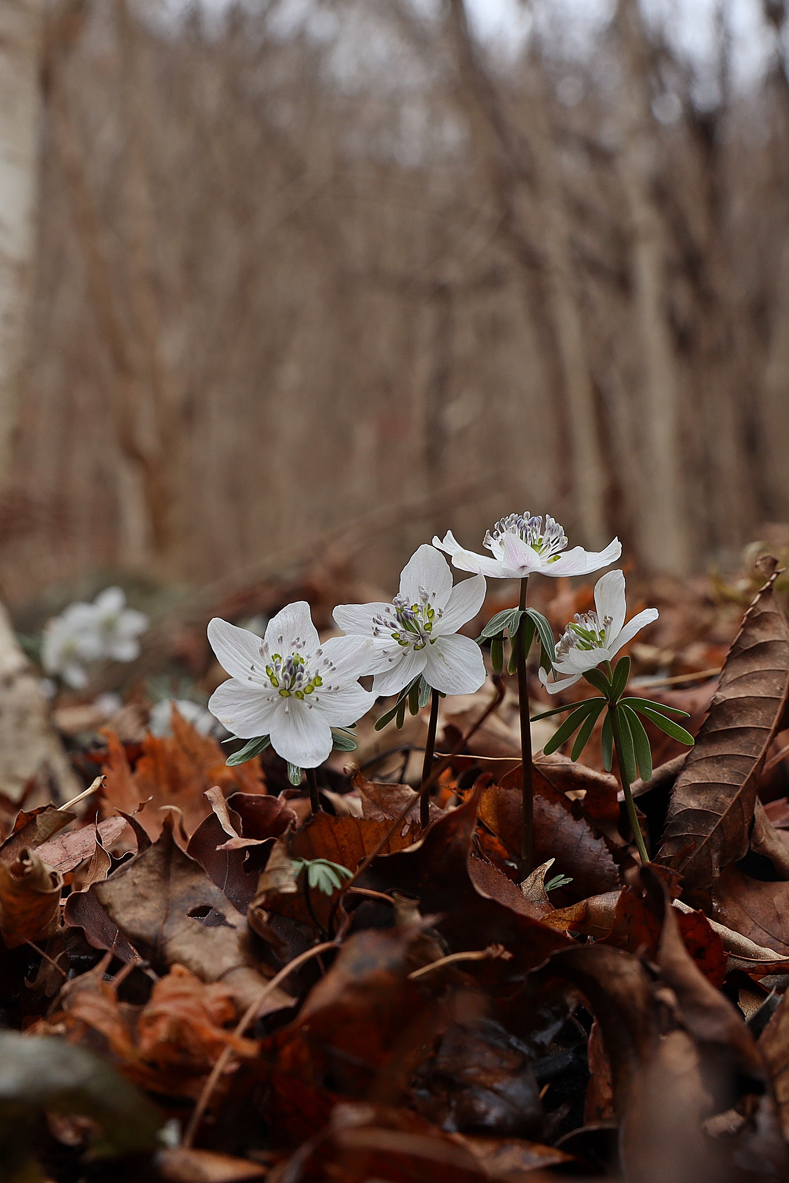 꽃은 2~4월에 꽃자루 끝에 1개씩 흰색으로 피며, 직경 3cm 정도이다.