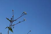 꽃 : 9~10월에 개화하며 황백색이고 윗부분의 잎겨드랑이에 1개씩 달리며 꽃자루는 길이 7~15mm이고 꽃받침 밑에 작은포가 잇다.