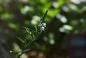꽃 : 꽃차례는 복산방꽃차례로서 털이 있거나 없고 꽃은 지름 1cm이며 꽃받침에 잔털이 있고 꽃받침조각은 삼각형이며