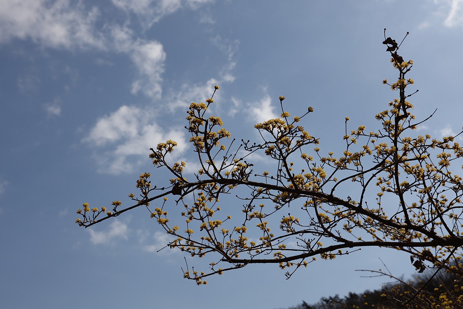 울산시 근교의 야산 자락에서 본 산수유입니다.