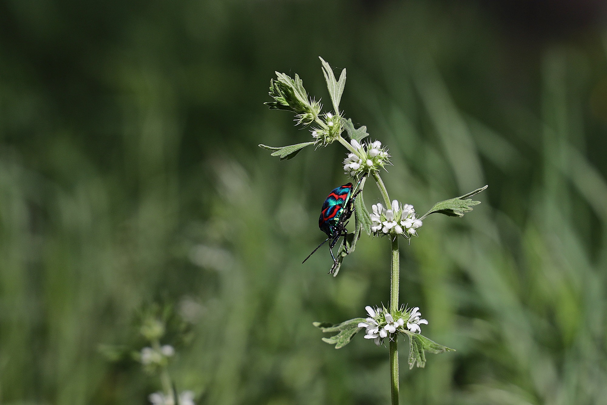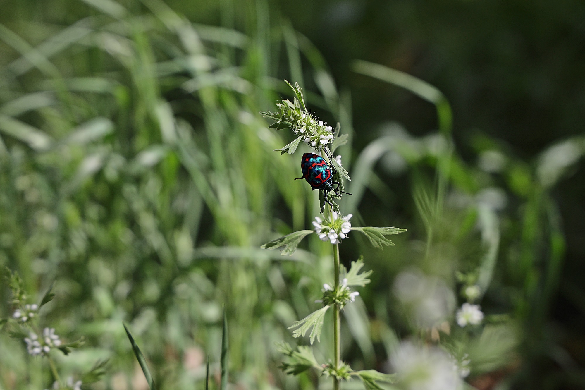 흰꽃광대나물에 큰광대노린재가 놀고 있습니다.